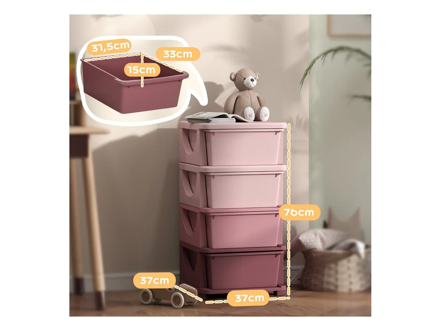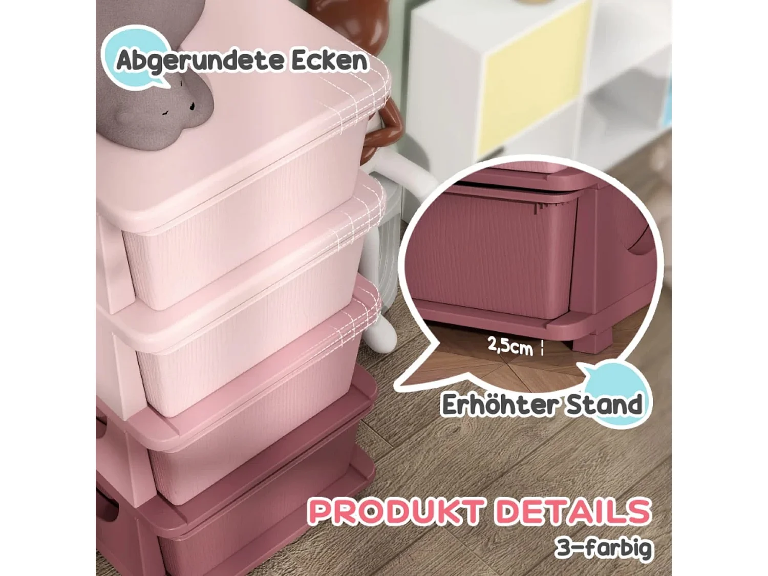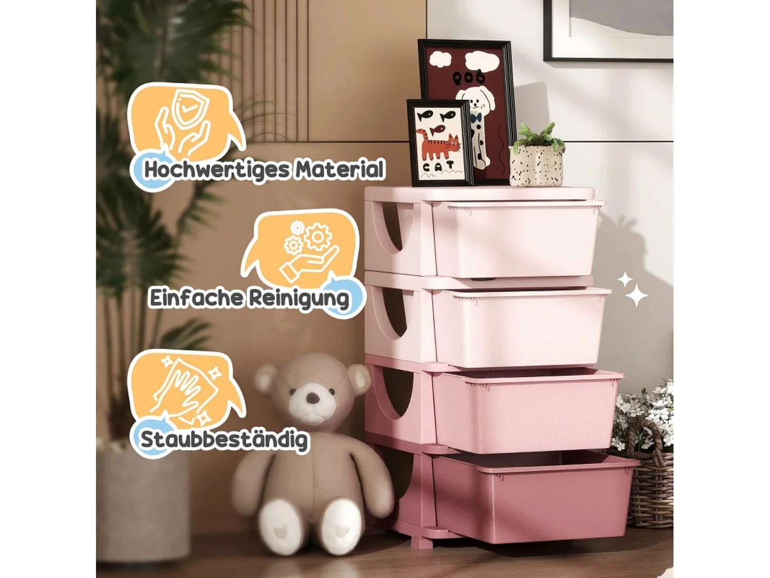 Aufbewahrungsboxen für Kinder, 4 Schubladen, abgerundete Kanten, erhöhtes Design, 37x37x76 cm, Rosa