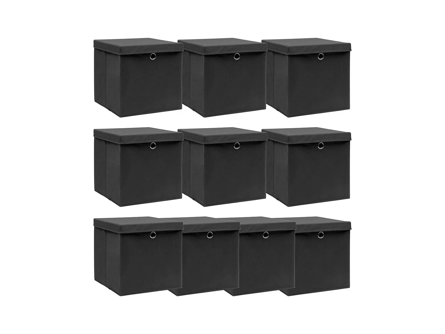 Aufbewahrungsboxen mit Deckeln 10 Stk. Schwarz 32x32x32cm Stoff