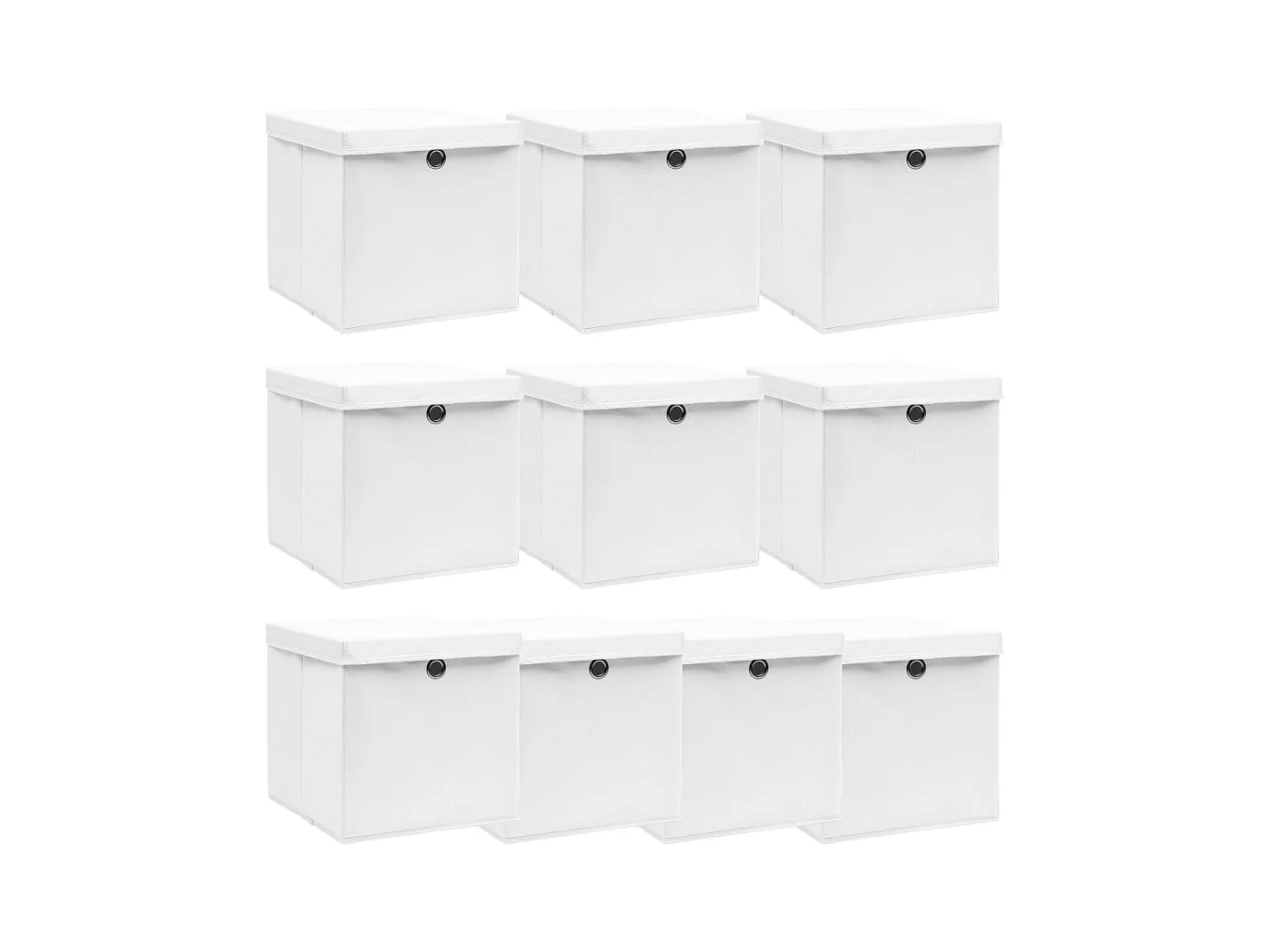 Aufbewahrungsboxen mit Deckeln 10 Stk. Weiß 32x32x32 cm Stoff