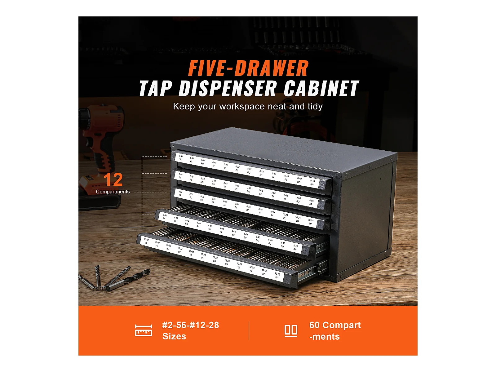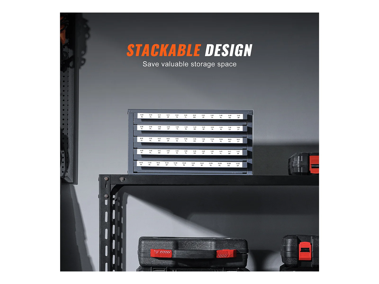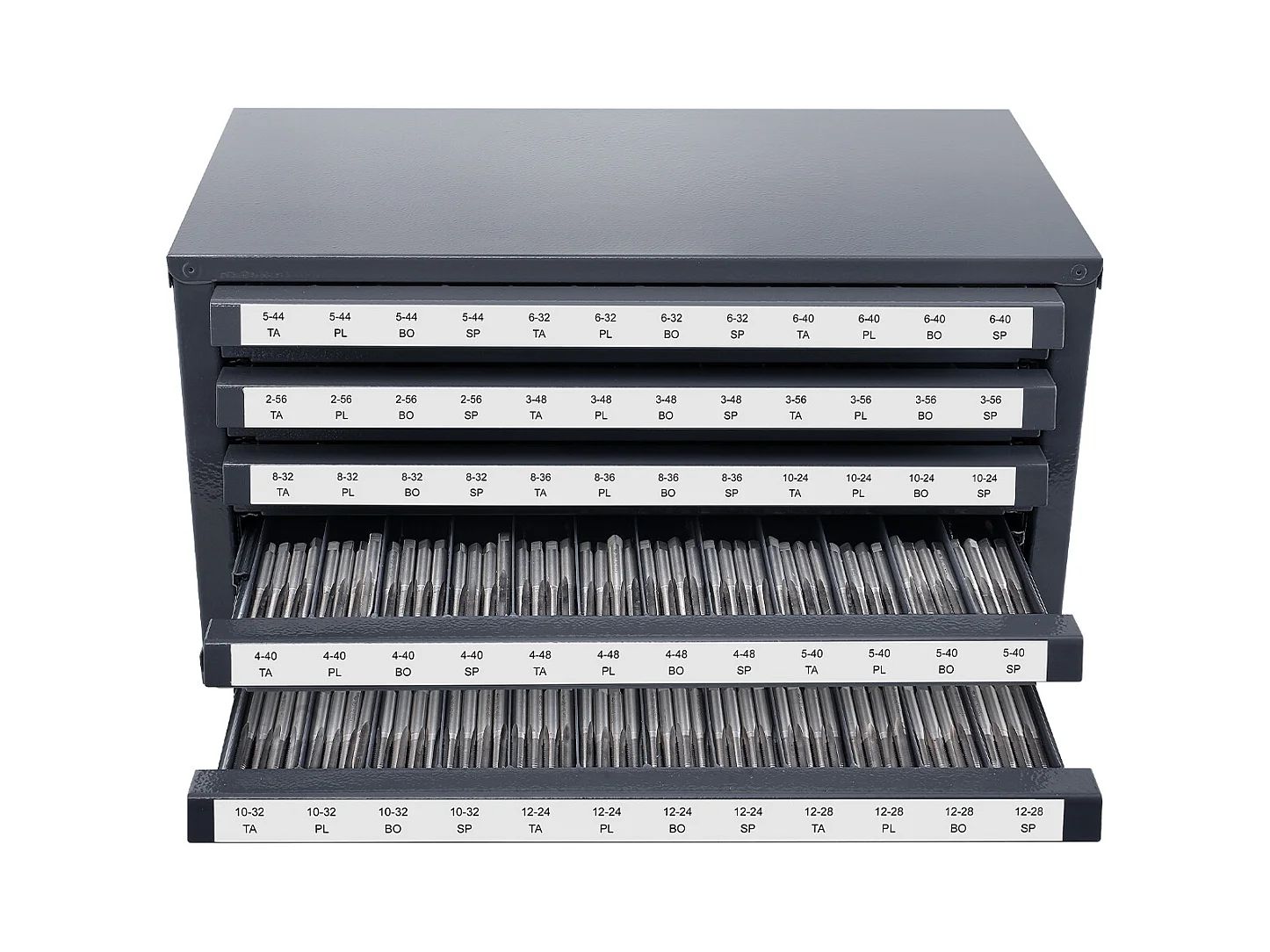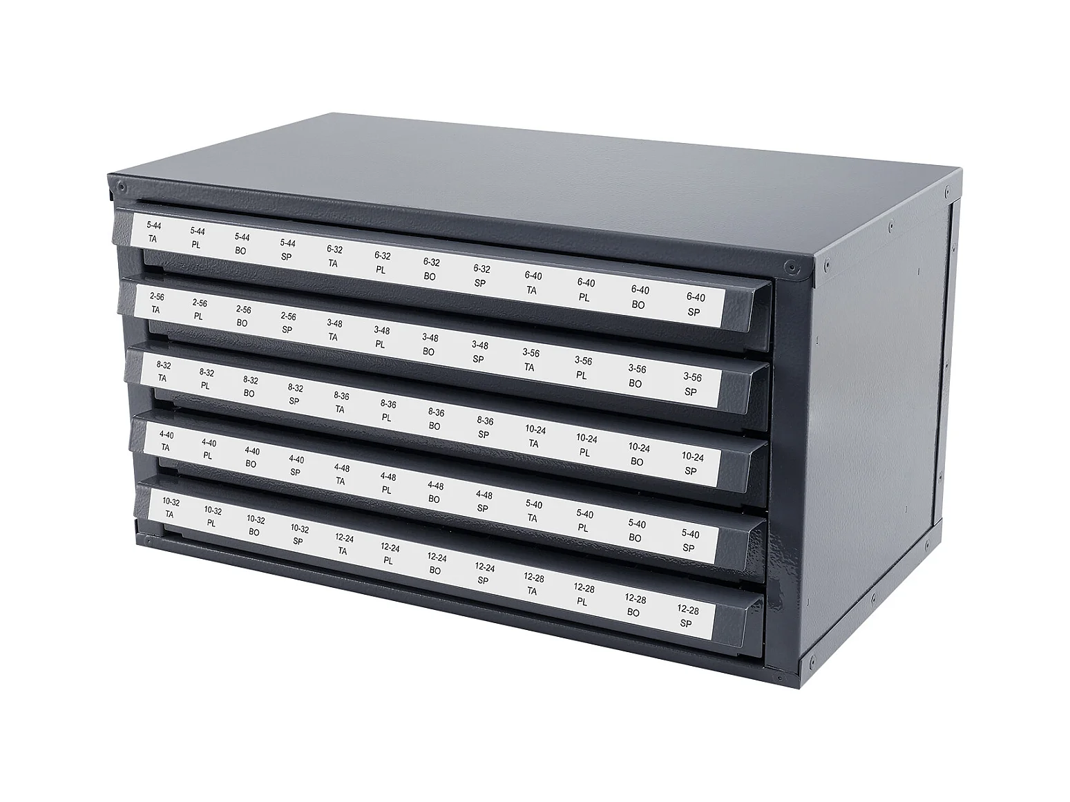 Aufbewahrungsschrank SucceBuy für Hahn-Verteiler, Fünf Schubladen, #2-56-#12-28, Stapelbare 60-Fach-Aufbewahrung mit Etiketten