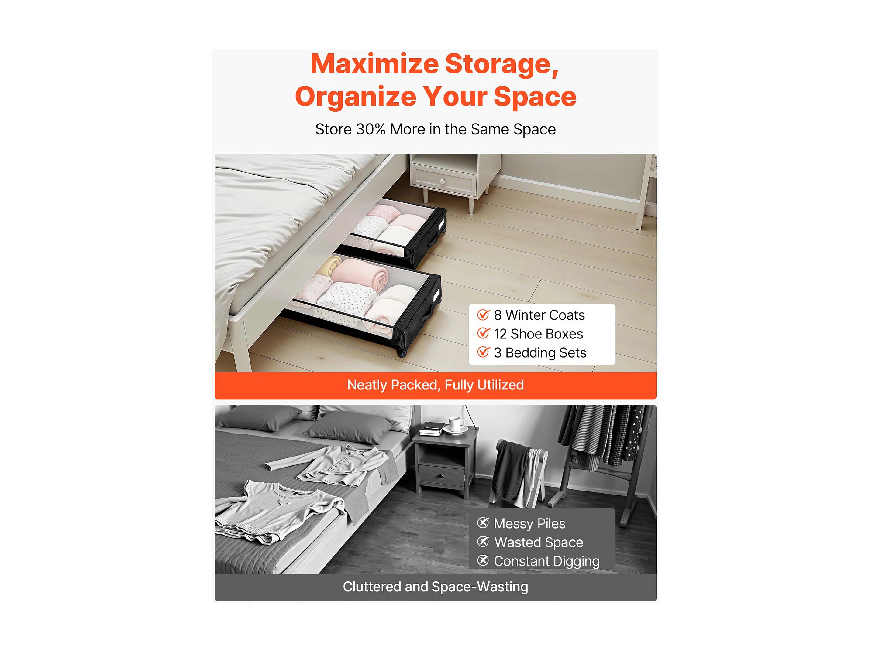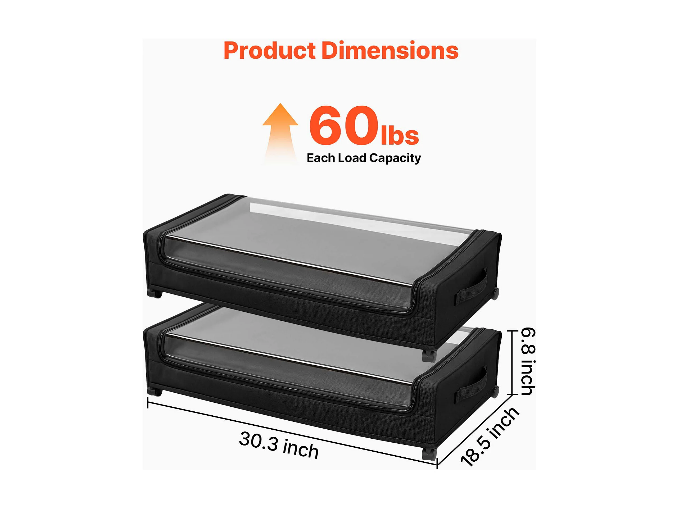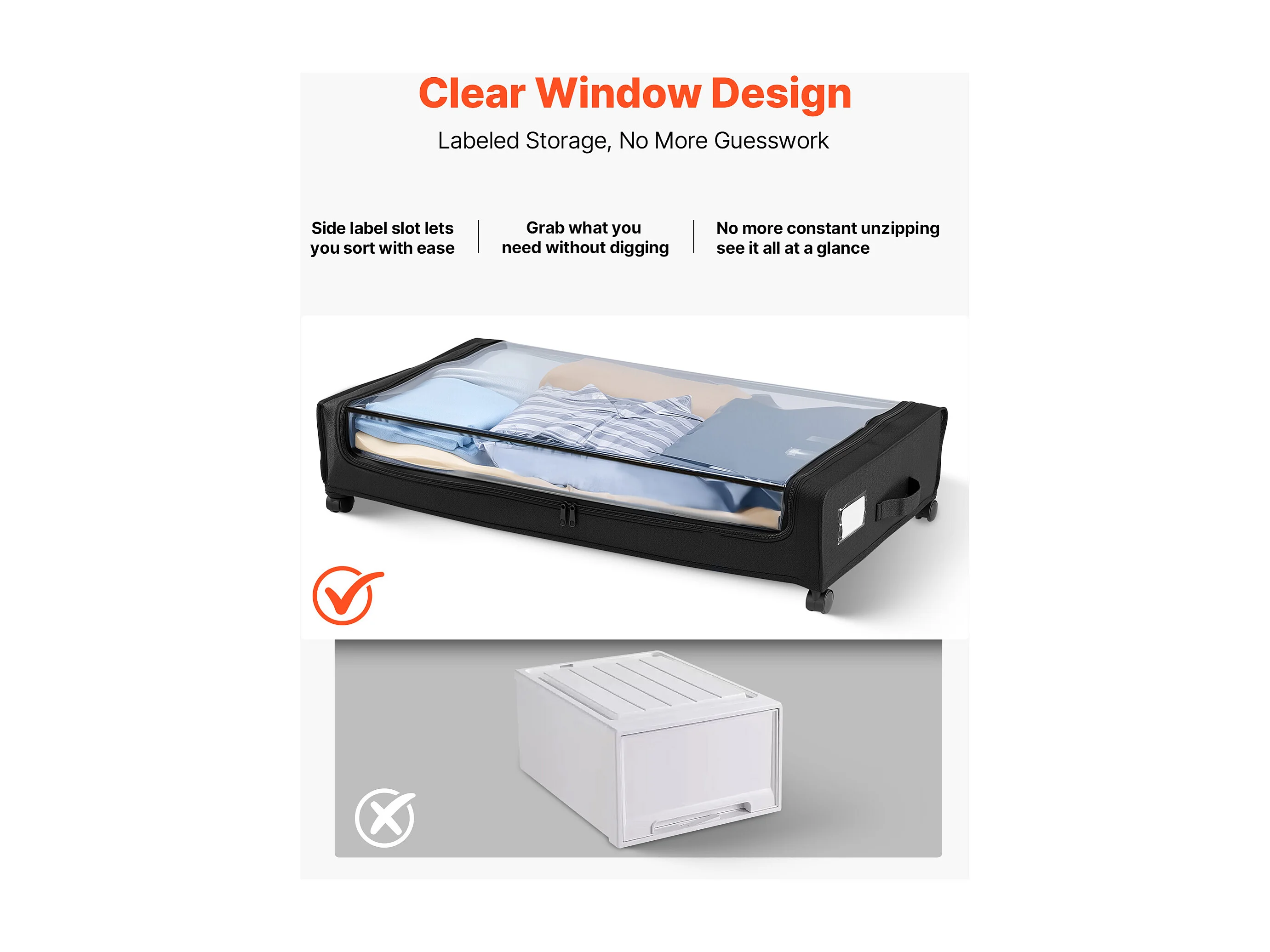 Aufbewahrungstaschen SucceBuy unterm Bett mit Rollen, Schuhorganizer unterm Bett 2 Stück 77 x 47 x 17,3 cm, mit Transparentem Deckel