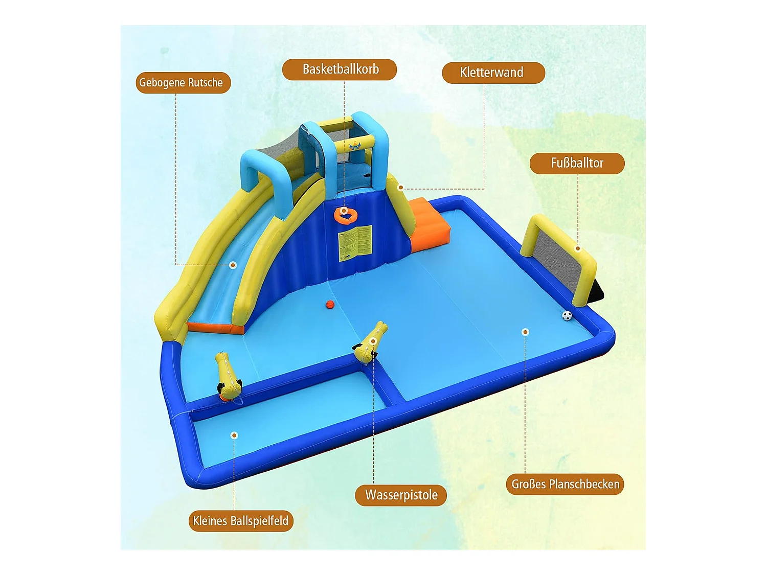Wasserpark 6-in-1 Hüpfburg mit Gebläse & Wasserdüsen & Rutsche 525 x 373 x 203