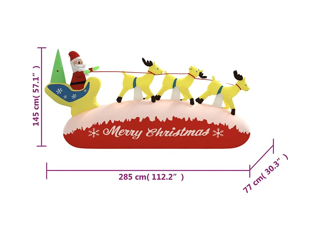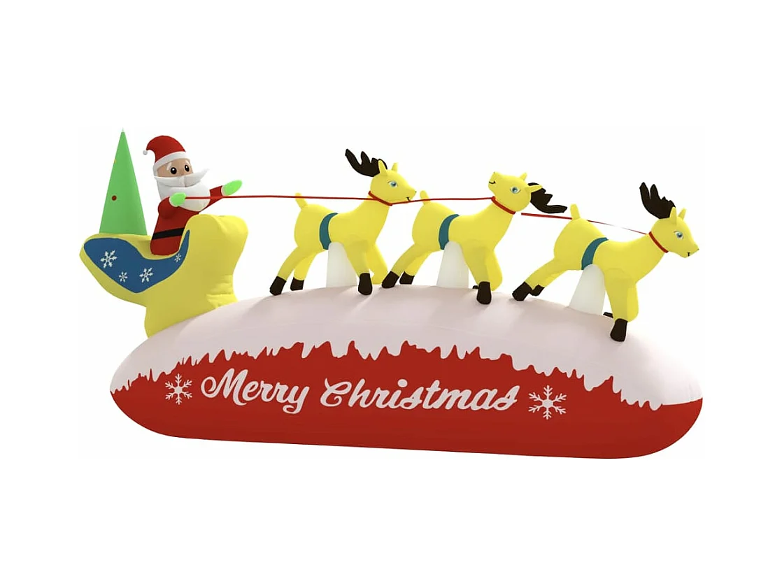 Aufblasbarer Weihnachtsmann mit Rentieren LED 145 cm