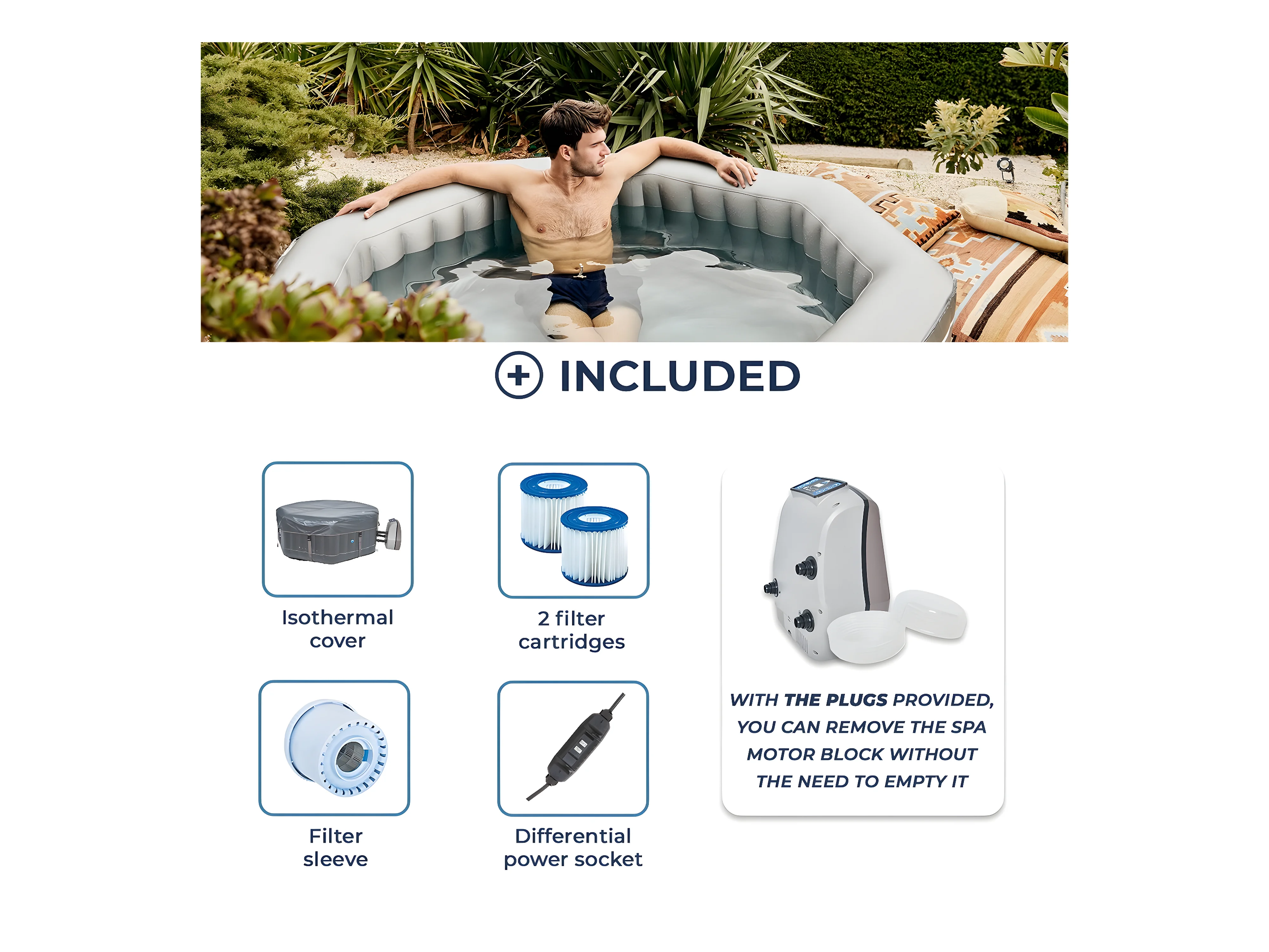 Aufblasbarer Whirlpool Octogonal Netspa Silver - 5/6 Personen 195X70Cm - 850L Liner Outdoor Pvc Laminat/Perlweiß