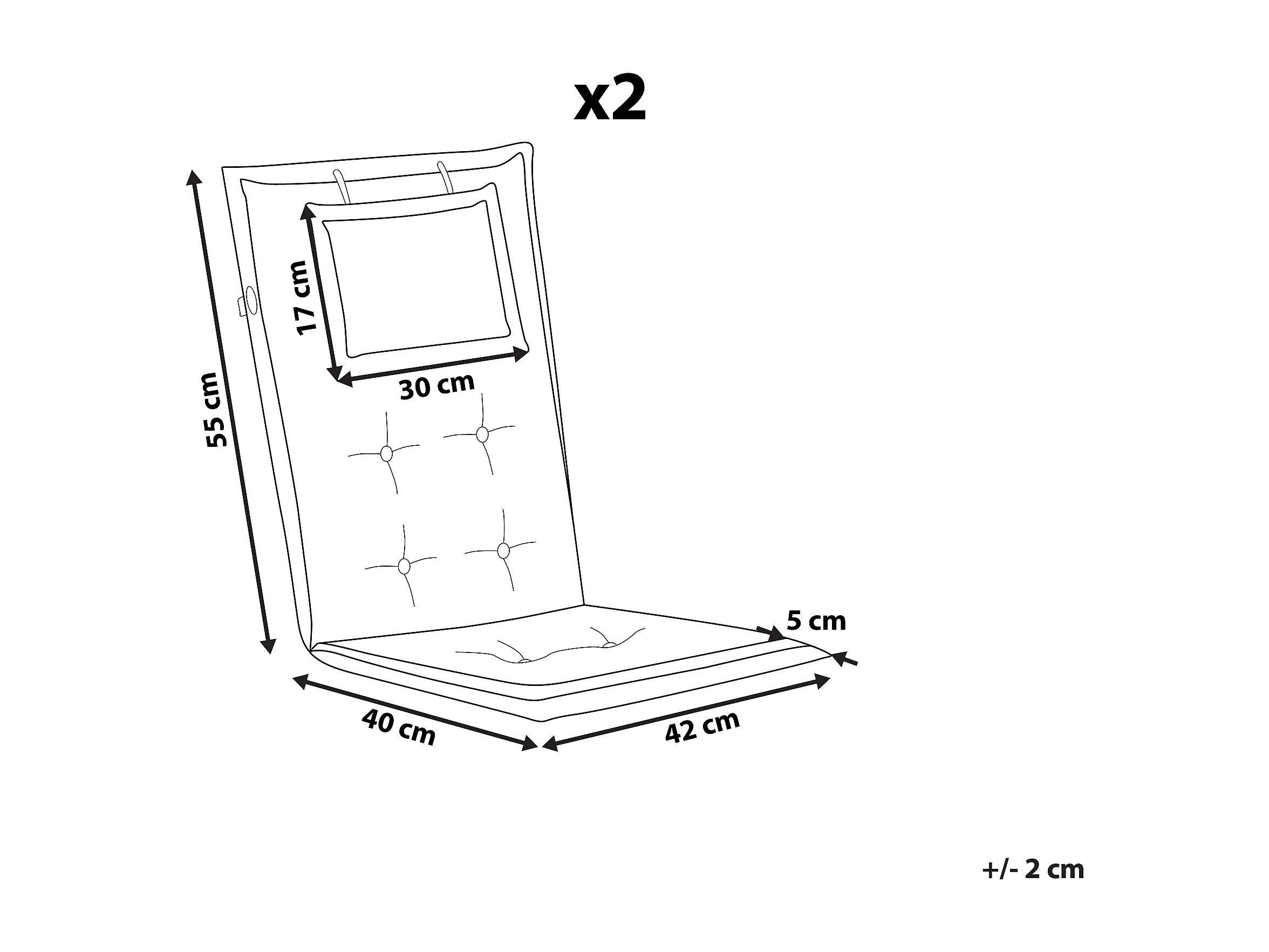 Polsterauflagen 2er Set 55x42 cm Polyester abnehmbares Kopfkissen blau Maui