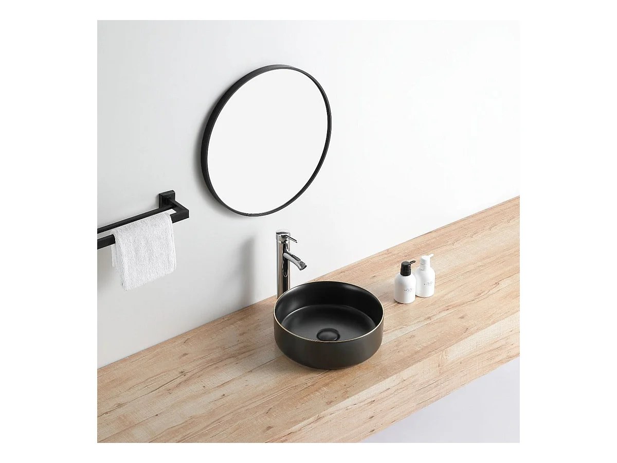 Aufsatzwaschbecken aus glasierter Keramik MENDOZA Ø36 cm schwarz/gold