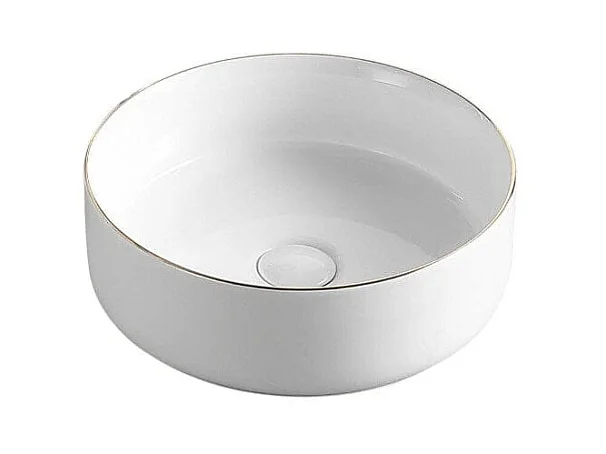 Aufsatzwaschbecken aus glasierter Keramik MENDOZA Ø36 cm weiß/gold