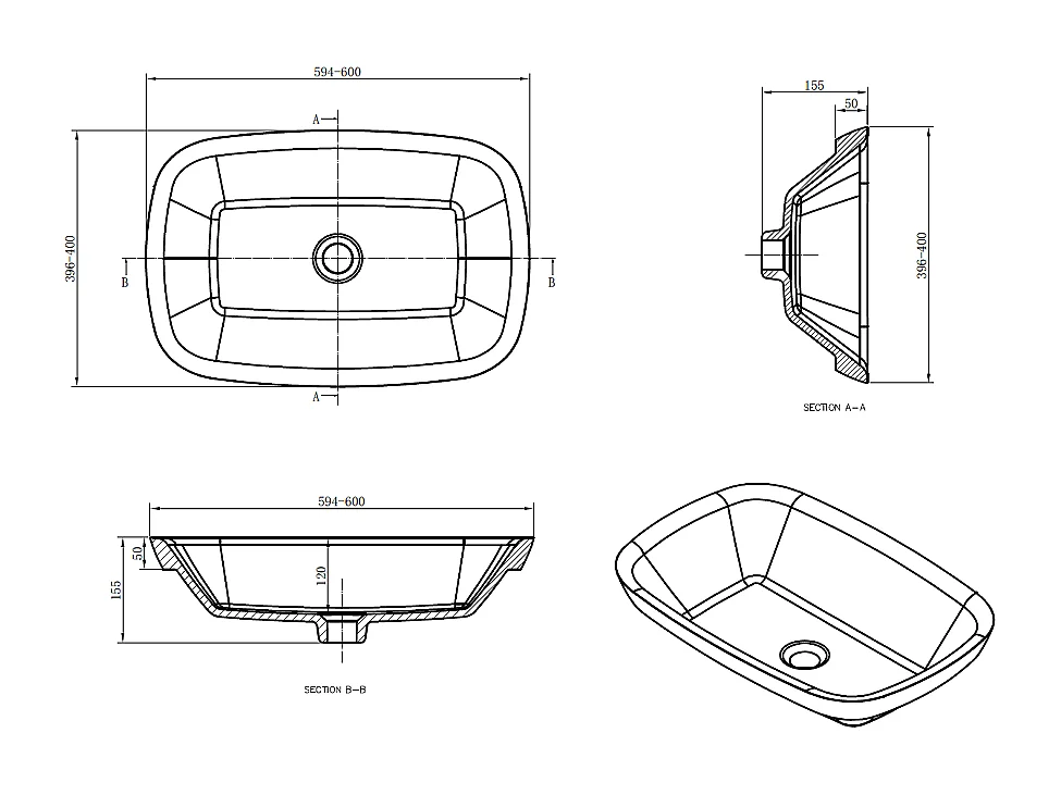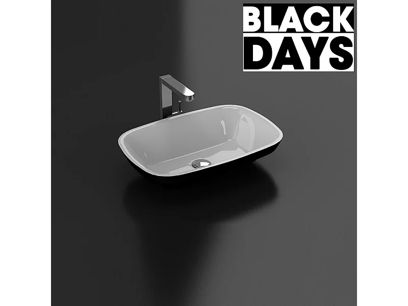 Aufsatzwaschbecken aus Gussmarmor rechteckig SIENA schwarz/weiß