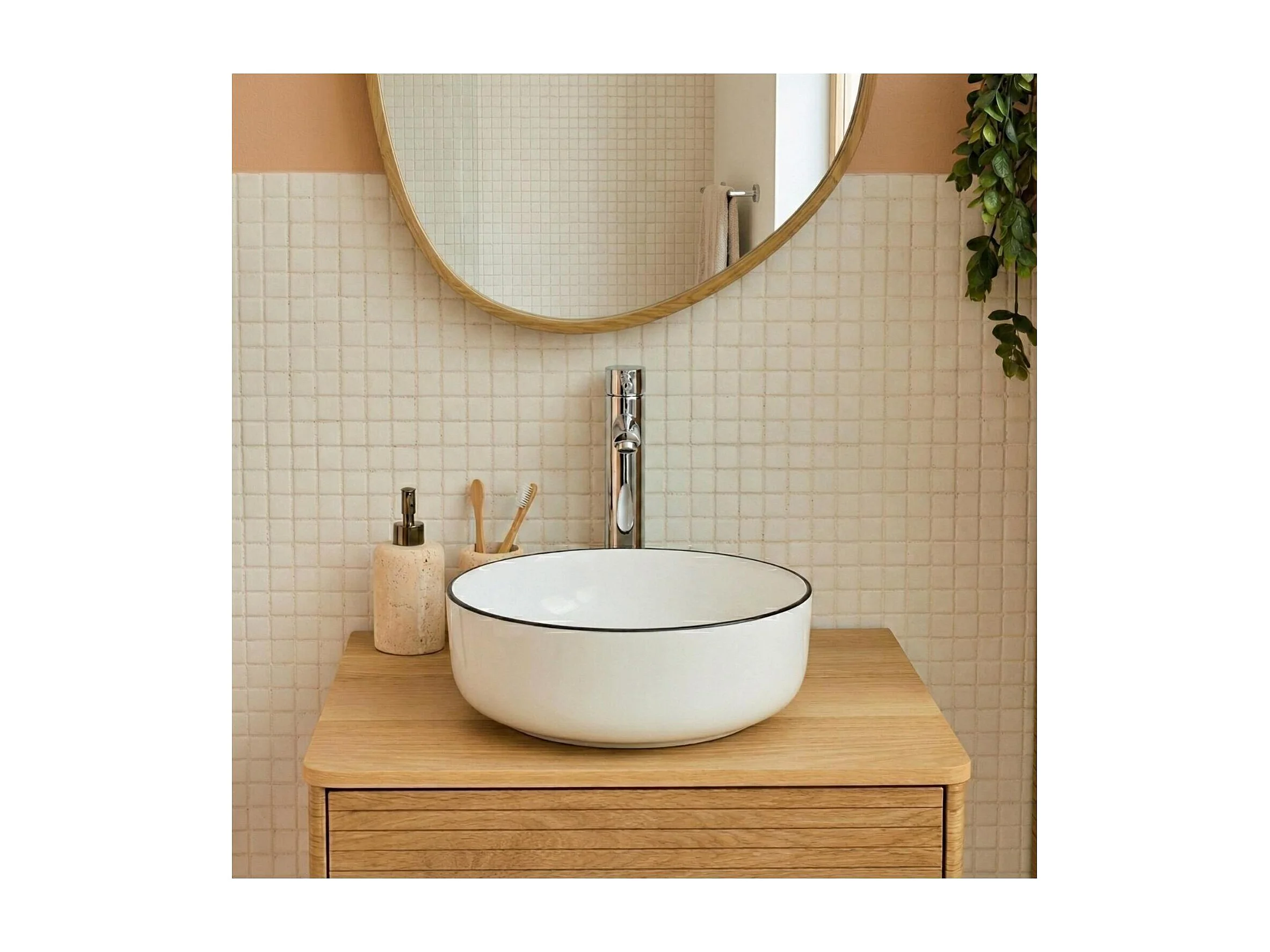 Rundes Keramik-Aufsatzwaschbecken mit Rand, 37 cm, DIEGO