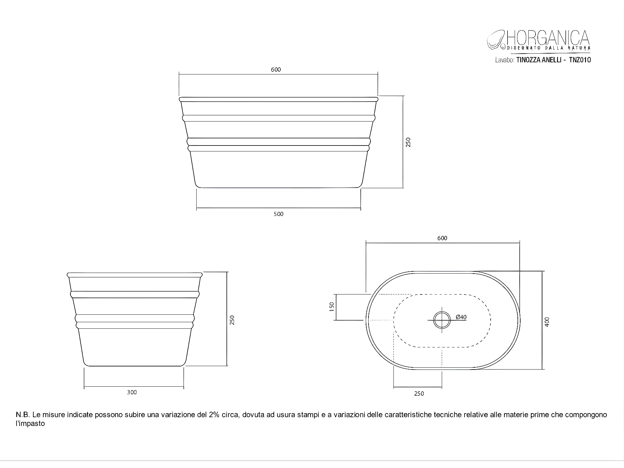 Aufsatzwaschtisch cm 60x40xH25 Tinozza glänzend weiß