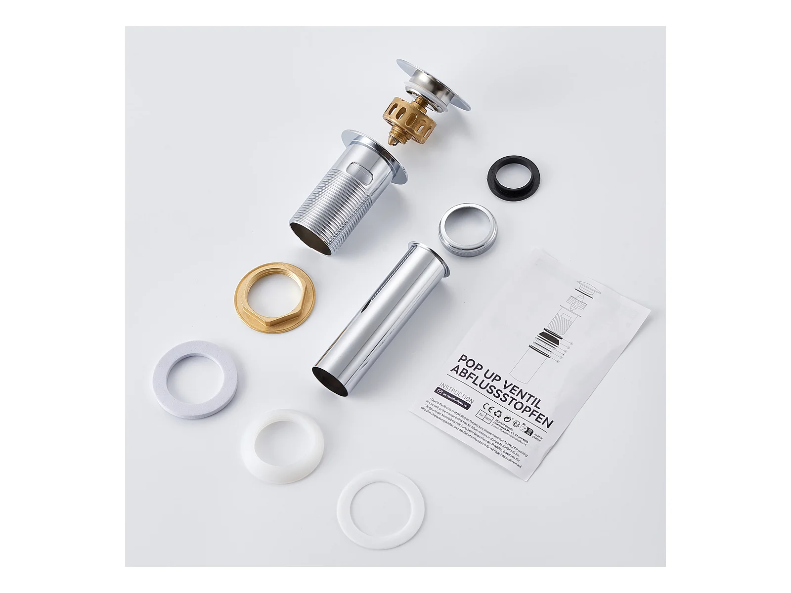 Auralum max 2 Stück Spülbeckenablauf mit Überlauf, Spülbeckenablauf Pop-Up-Ventil, Spülbeckenablauf mit Siebkorb für Badezimmer, Chrom