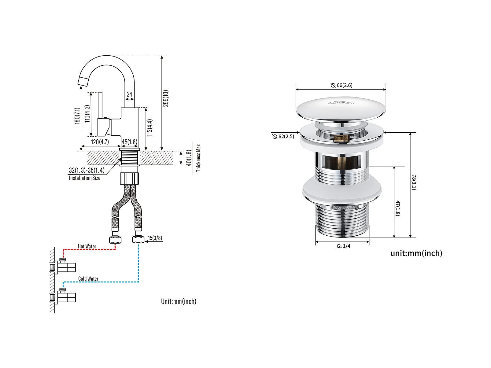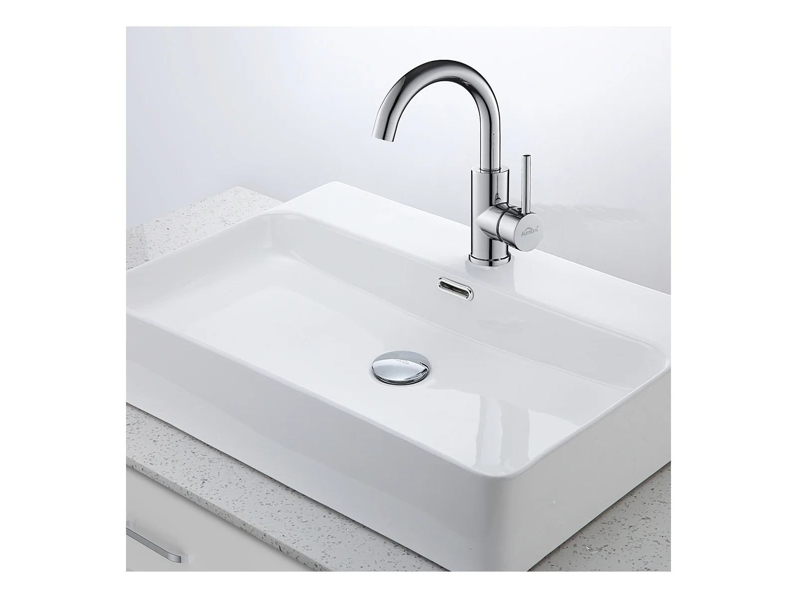 AURALUM MAX Bad-Waschtischarmatur, hoher Auslauf, Chrom glänzend, 360° drehbar + Waschbeckenablauf, Pop-Up-Ablauf mit automatischem Überlauf, universell