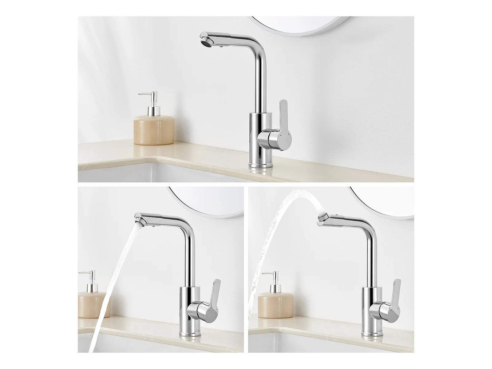 Auralum MAX Badezimmer-Waschtischarmatur mit 360° schwenkbarem Auslauf, Chrom + Kleben/Bohren, Handtuchstange fürs Bad, Handtuchhalter zur Wandmontage, gebürstet