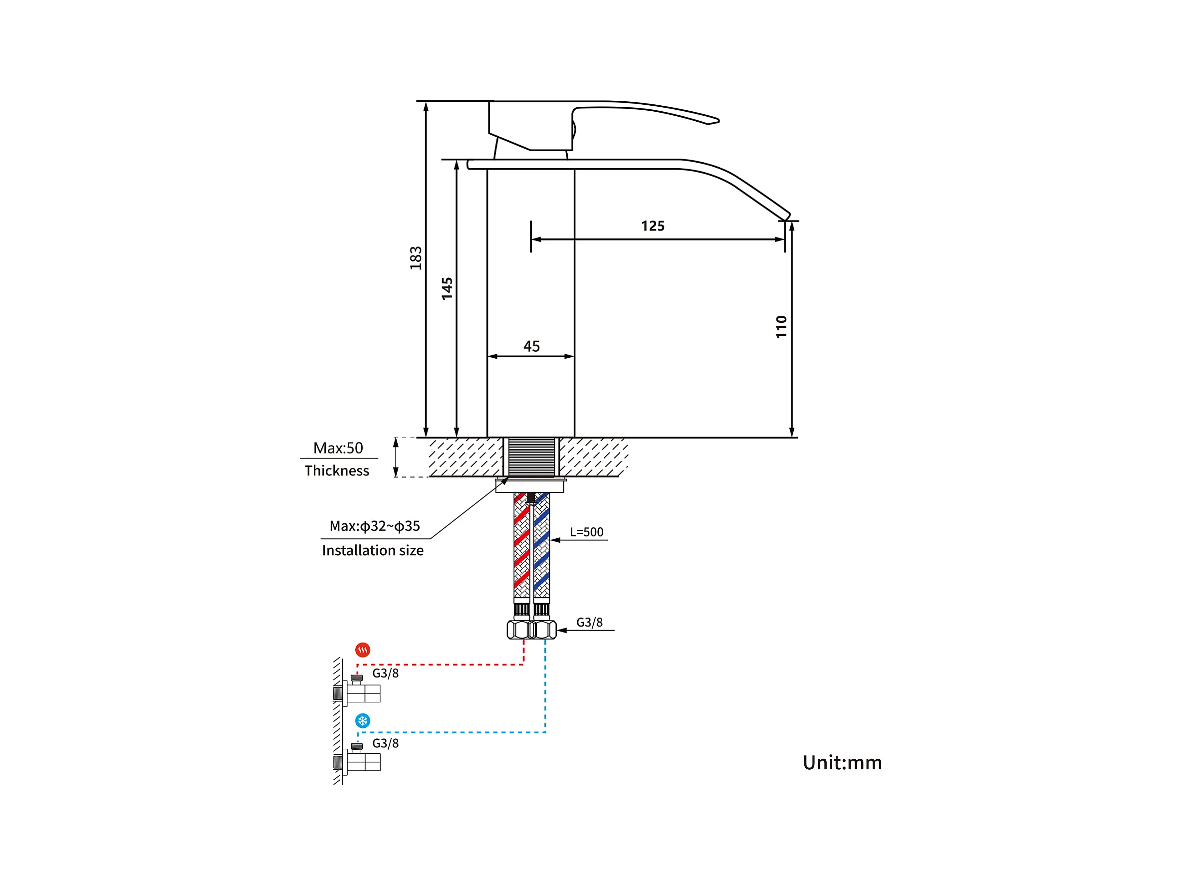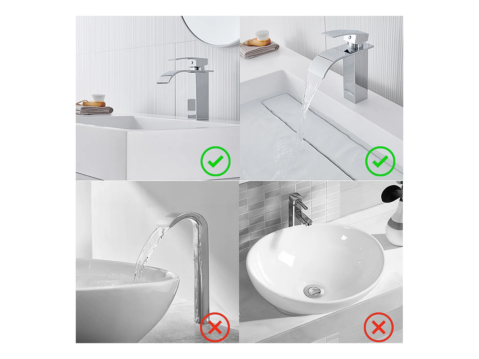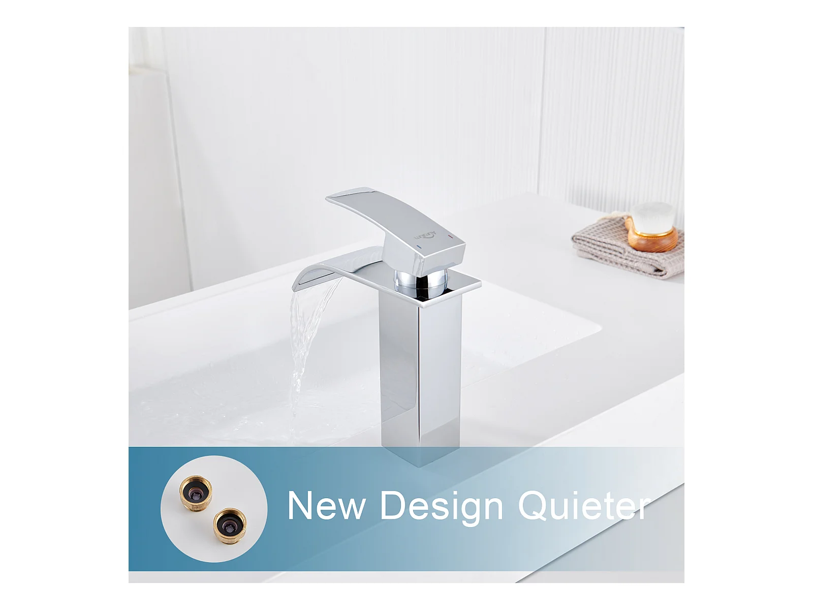 Auralum Max Chrom-Waschtischarmatur mit Wasserfall, Badezimmerarmatur mit Kalt-/Warmwasser, hochwertige Mischbatterie aus 304 Edelstahl, 2 Stück