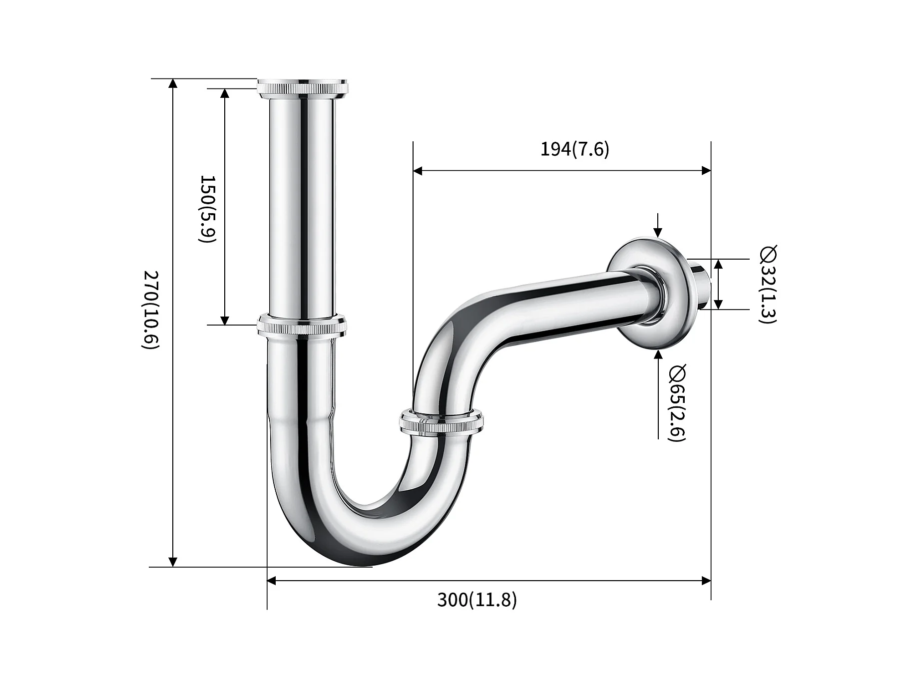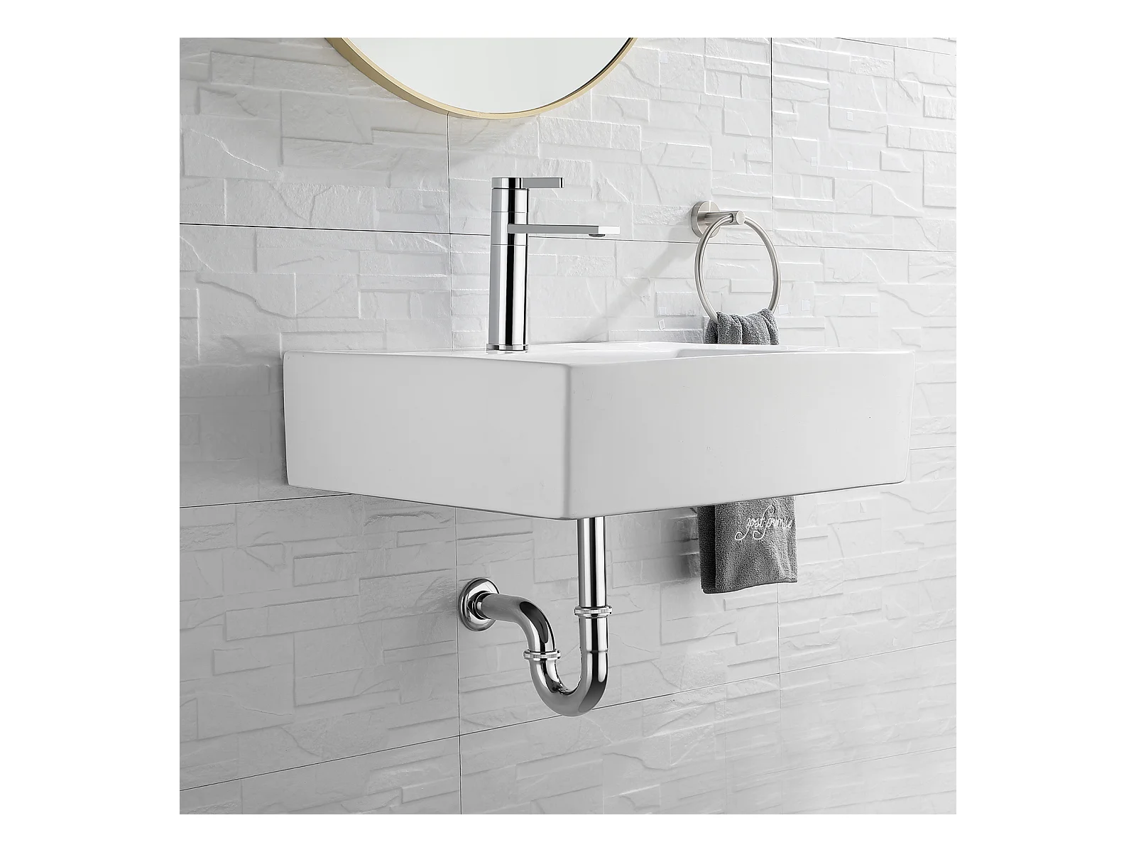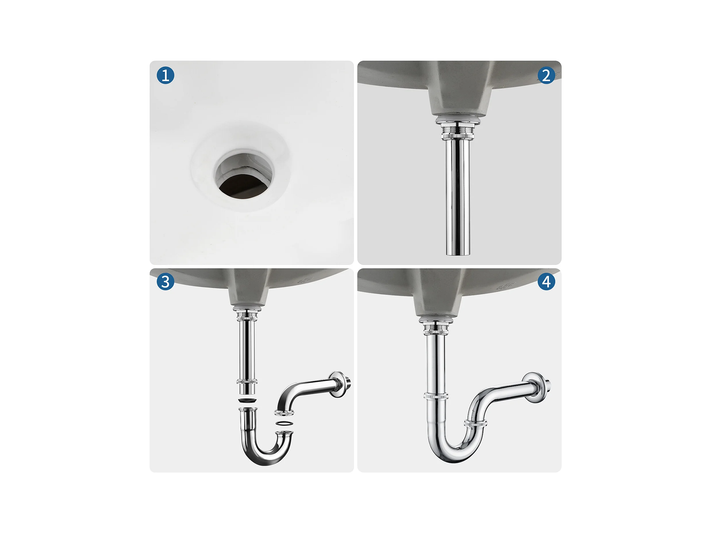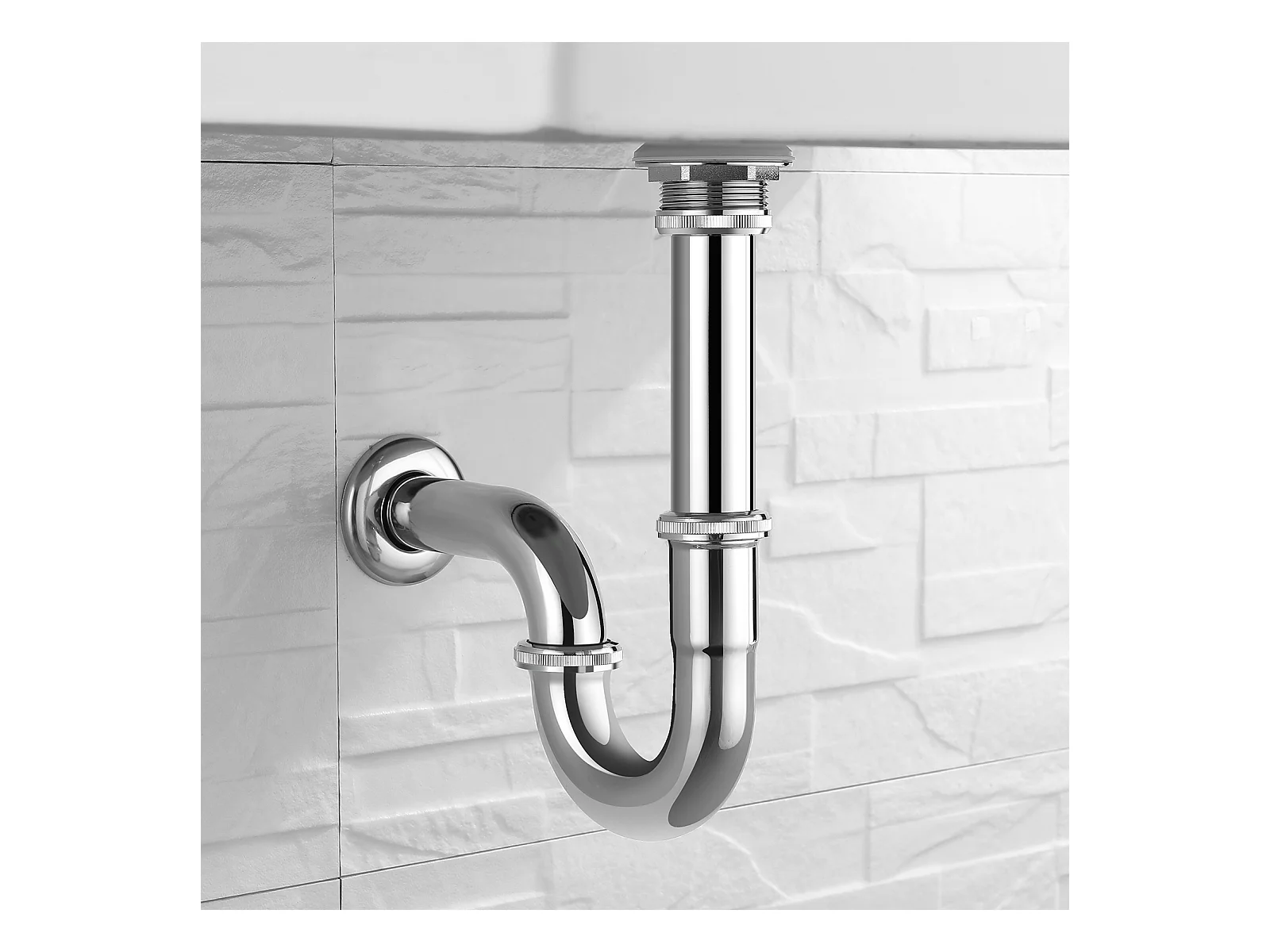 Auralum Max Chrom-Wasserfall-Waschtischarmatur, Kalt-/Warmwasser, Edelstahl 304 + U-förmiger Siphon aus Edelstahl, Geruchsneutralisierer, Ø 32 mm, Chrom