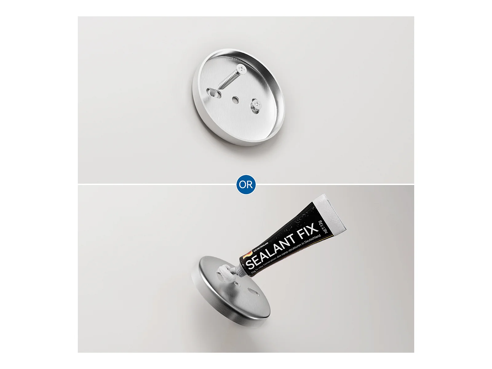 Auralum max Chrom-Wasserfall-Waschtischarmatur, mit Kalt-/Warmwasser, 304 Edelstahl + 6-teiliges Badezimmer-Zubehör-Set, selbstklebend/bohrbar, Edelstahl, gebürstet
