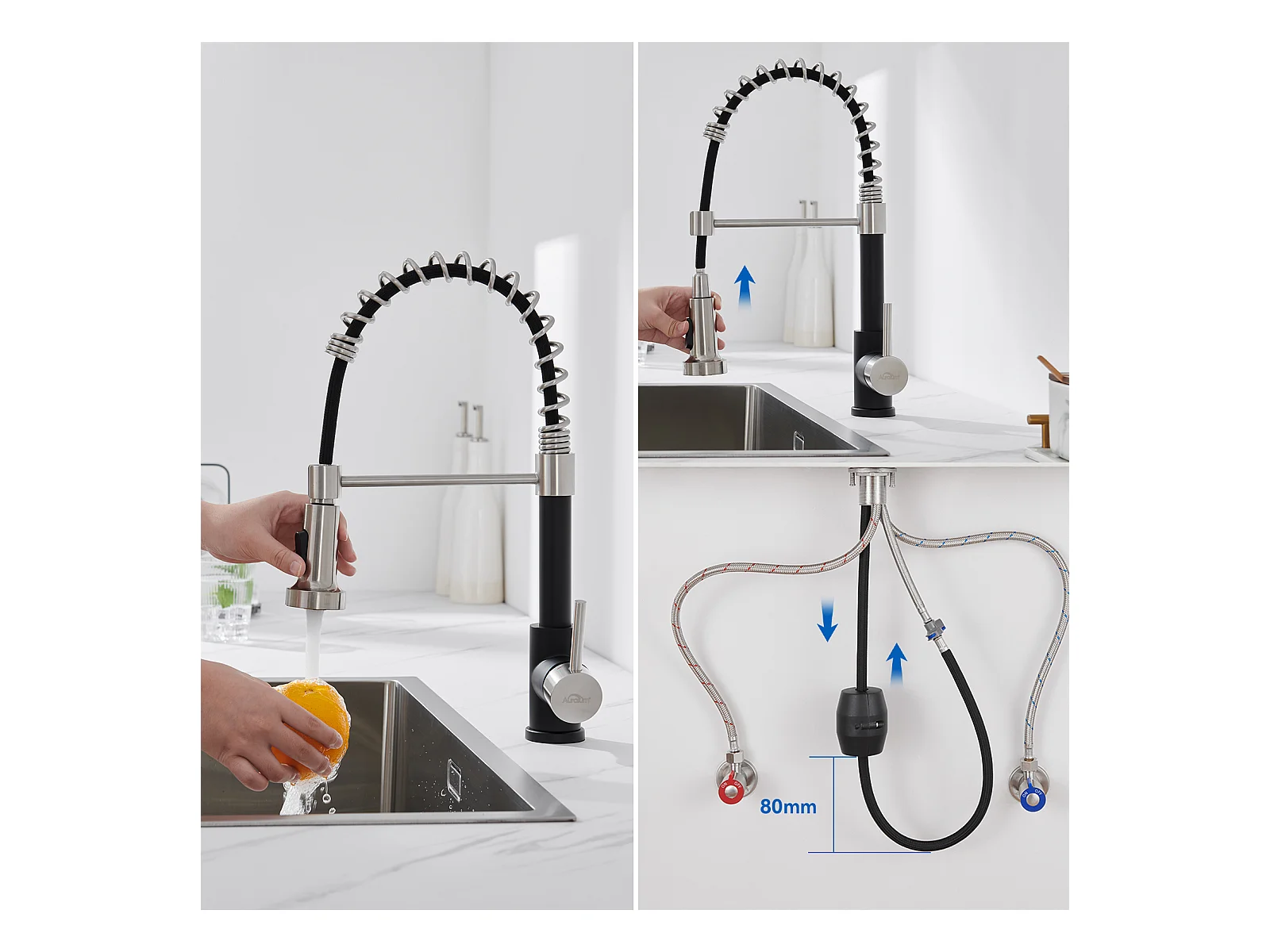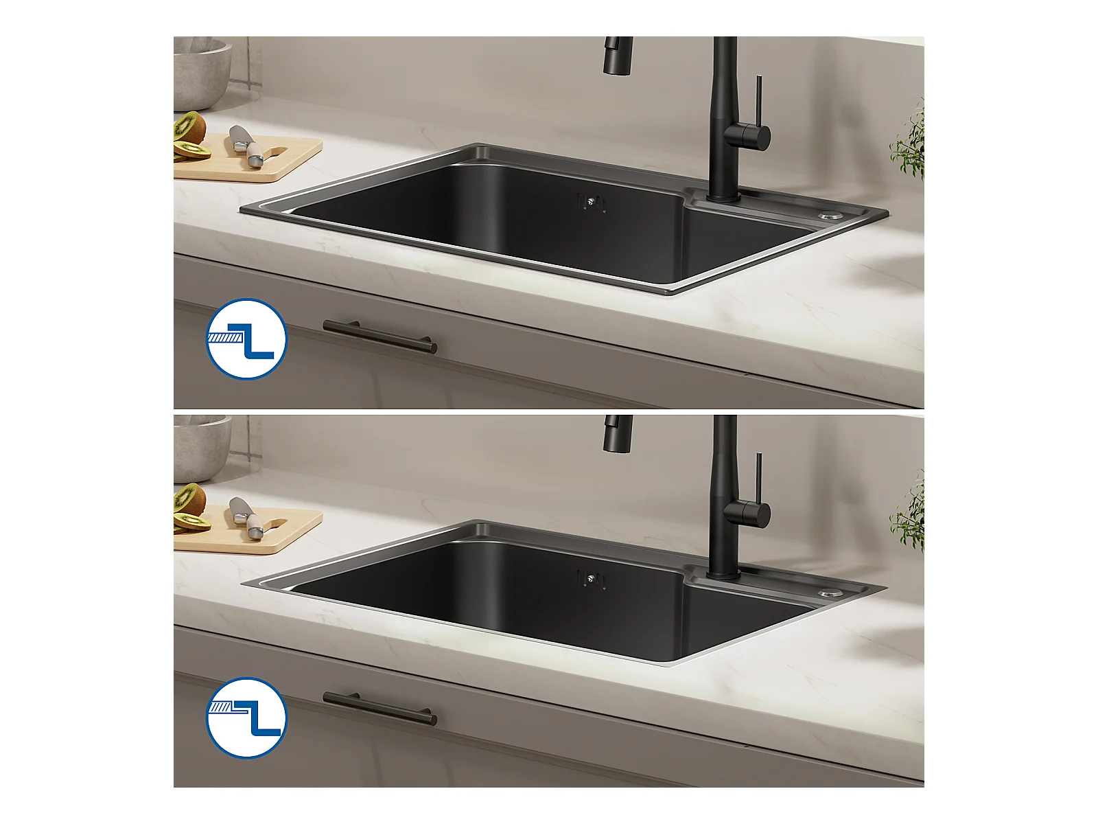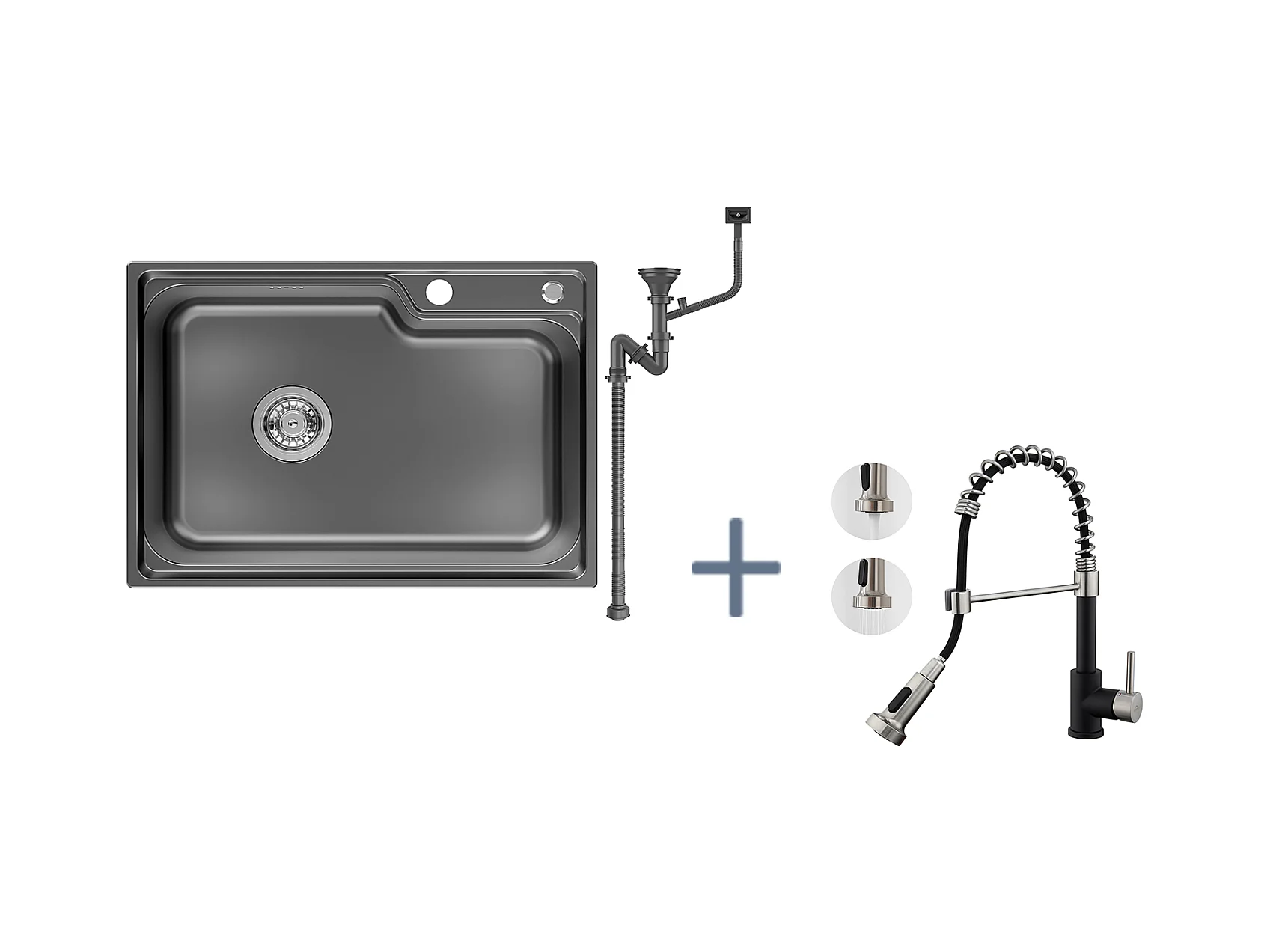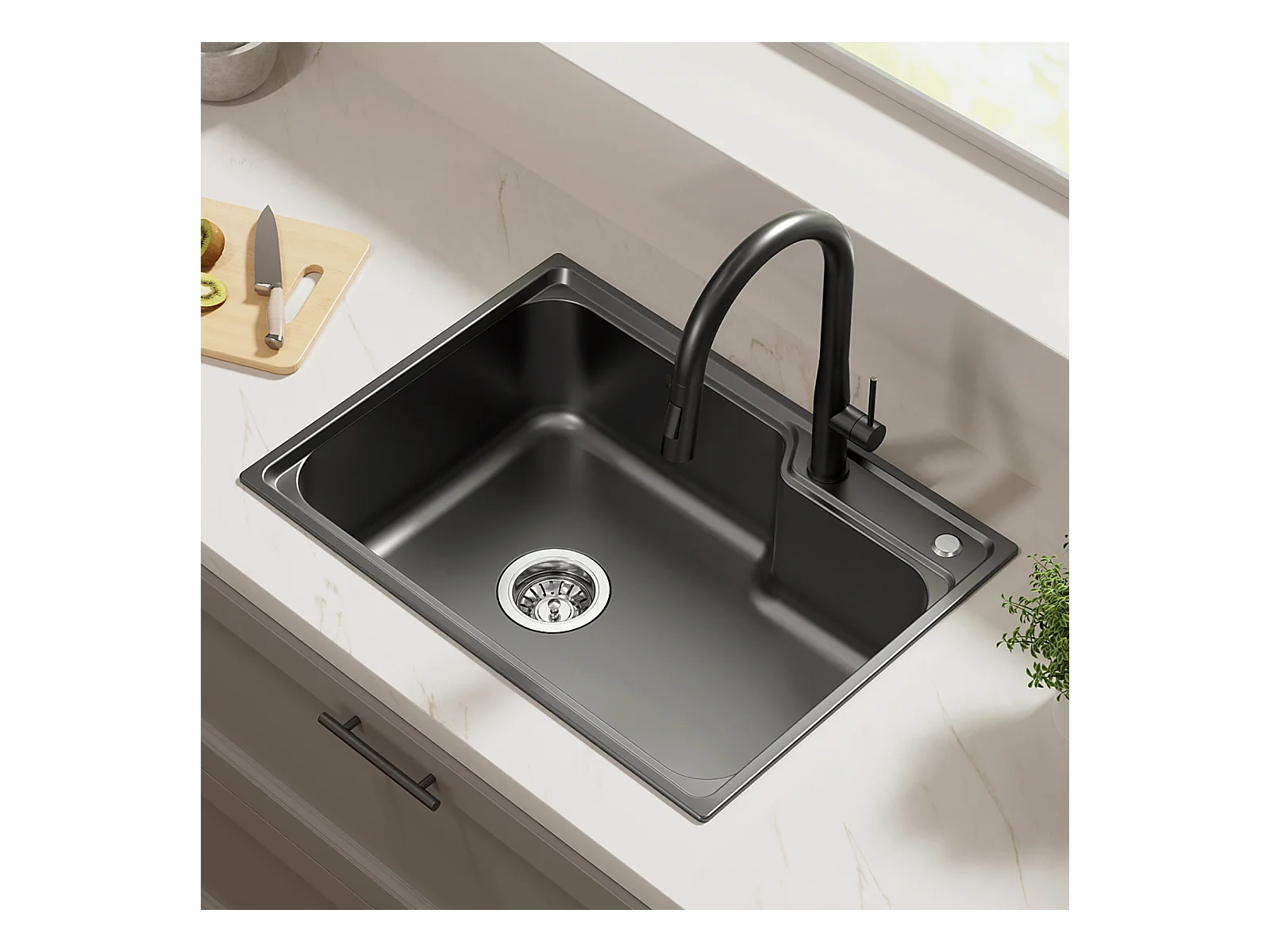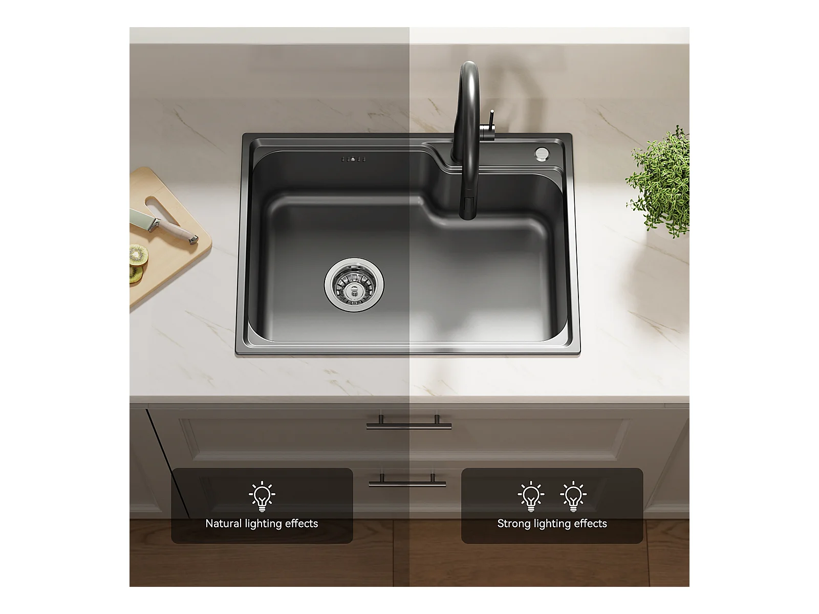 Auralum Max Einzelbecken-Küchenspüle 62 x 45 x 21 cm, Edelstahl PVD Nano-Aufsatzbecken, Schwarz + Feder-Küchenarmatur mit ausziehbarer Brause, 2 Modi, Schwarz
