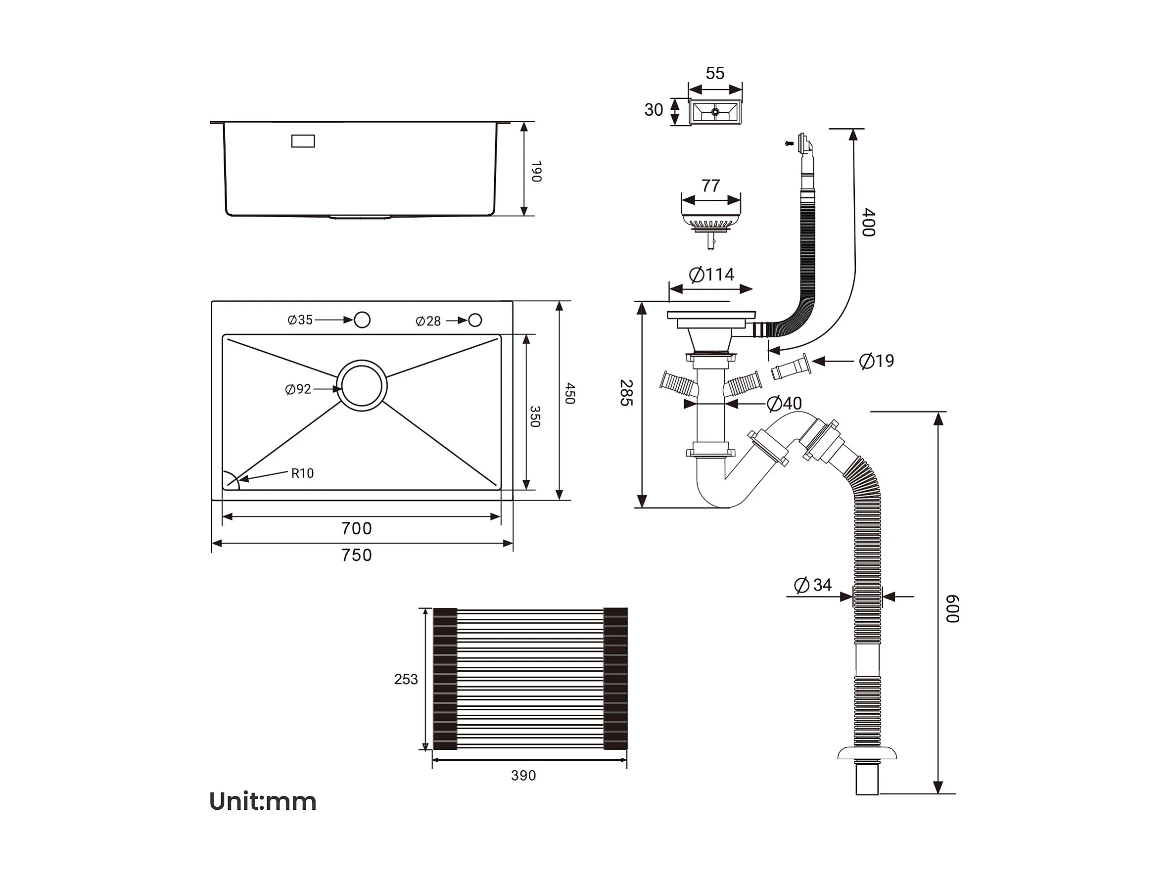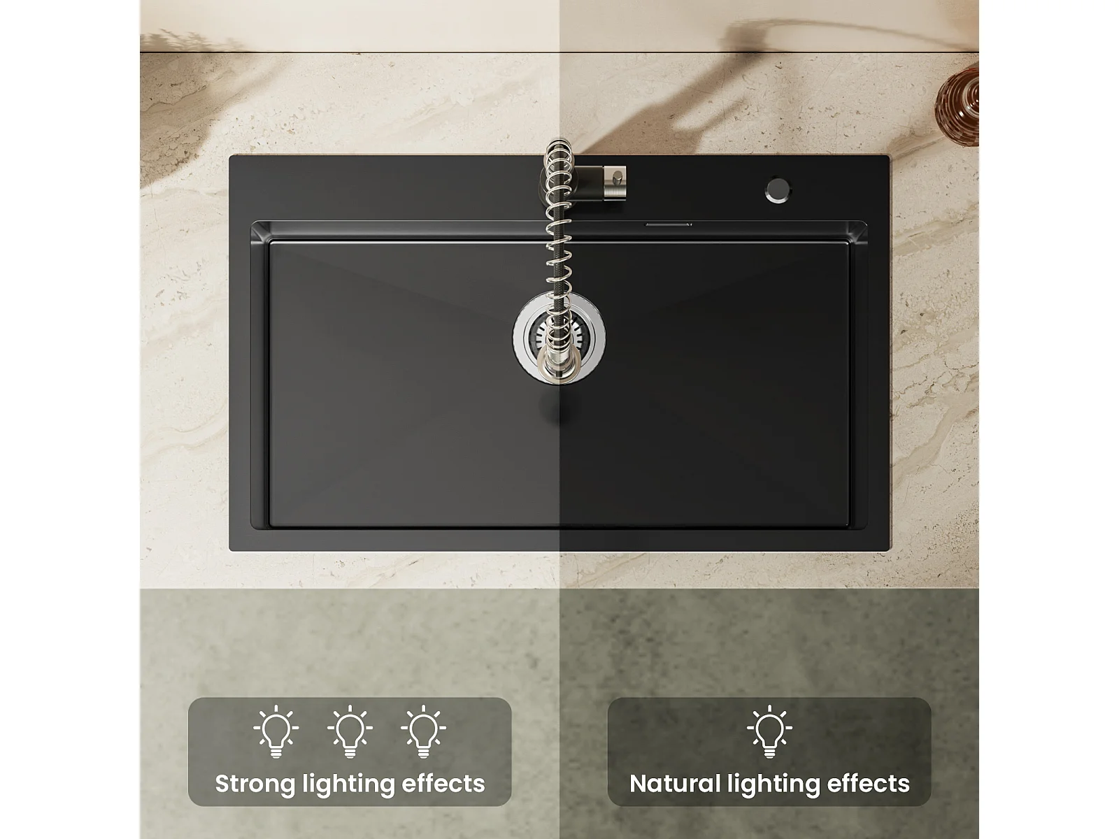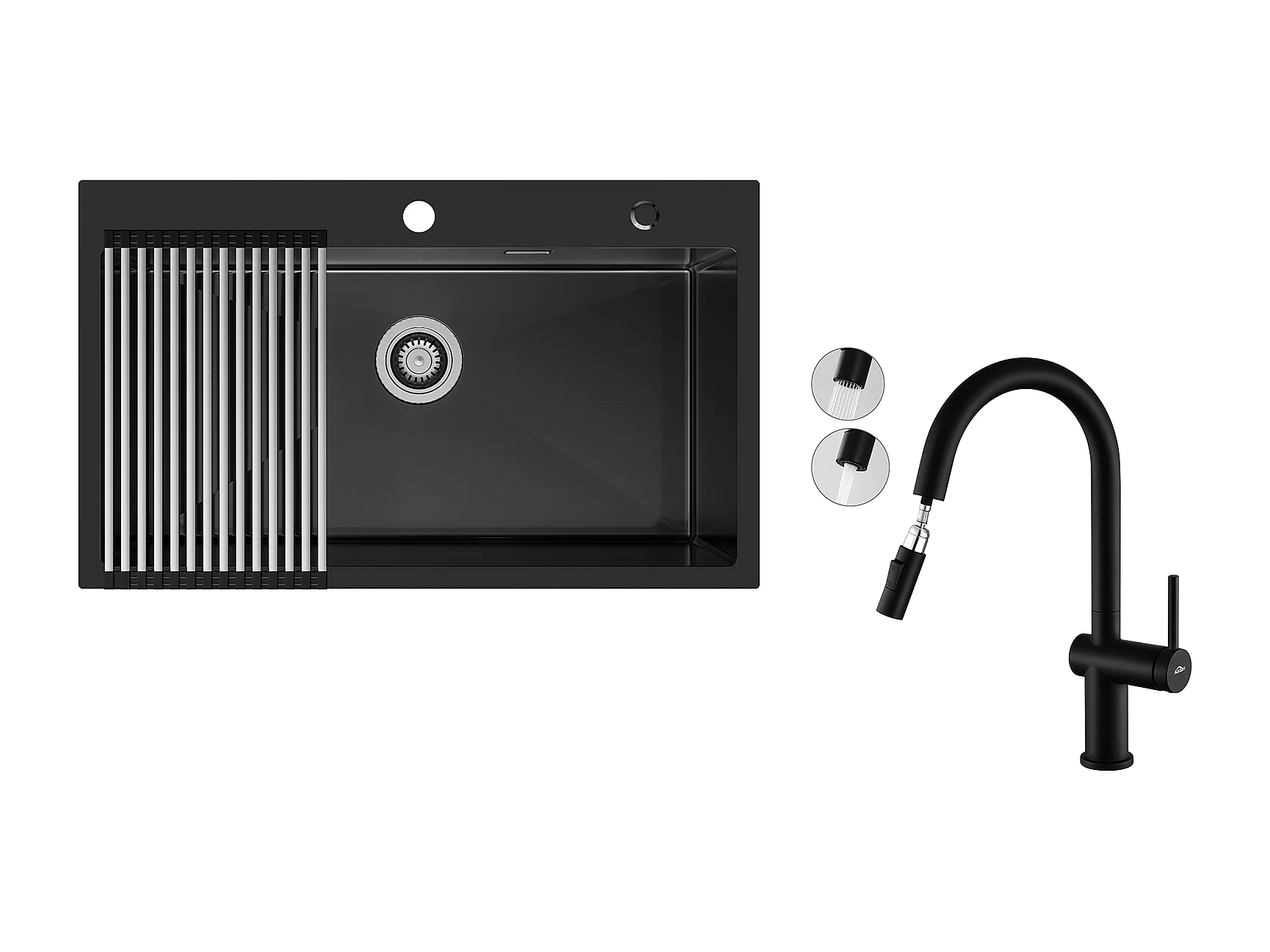 Auralum MAX Einzelbecken-Küchenspüle 75 x 45 cm, schwarze Edelstahlspüle mit faltbarer Abtropffläche + ausziehbarem Zweifunktions-Küchenhahn, schwarz