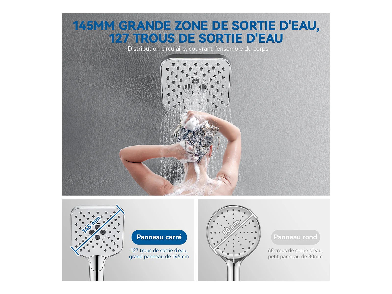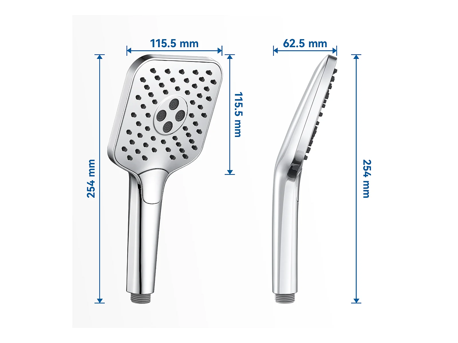 AURALUM MAX Hochdruck-Duschkopf, mit 3 Sprühmodi, Anti-Kalk-Duschbrause, Chrom (ohne Schlauch)