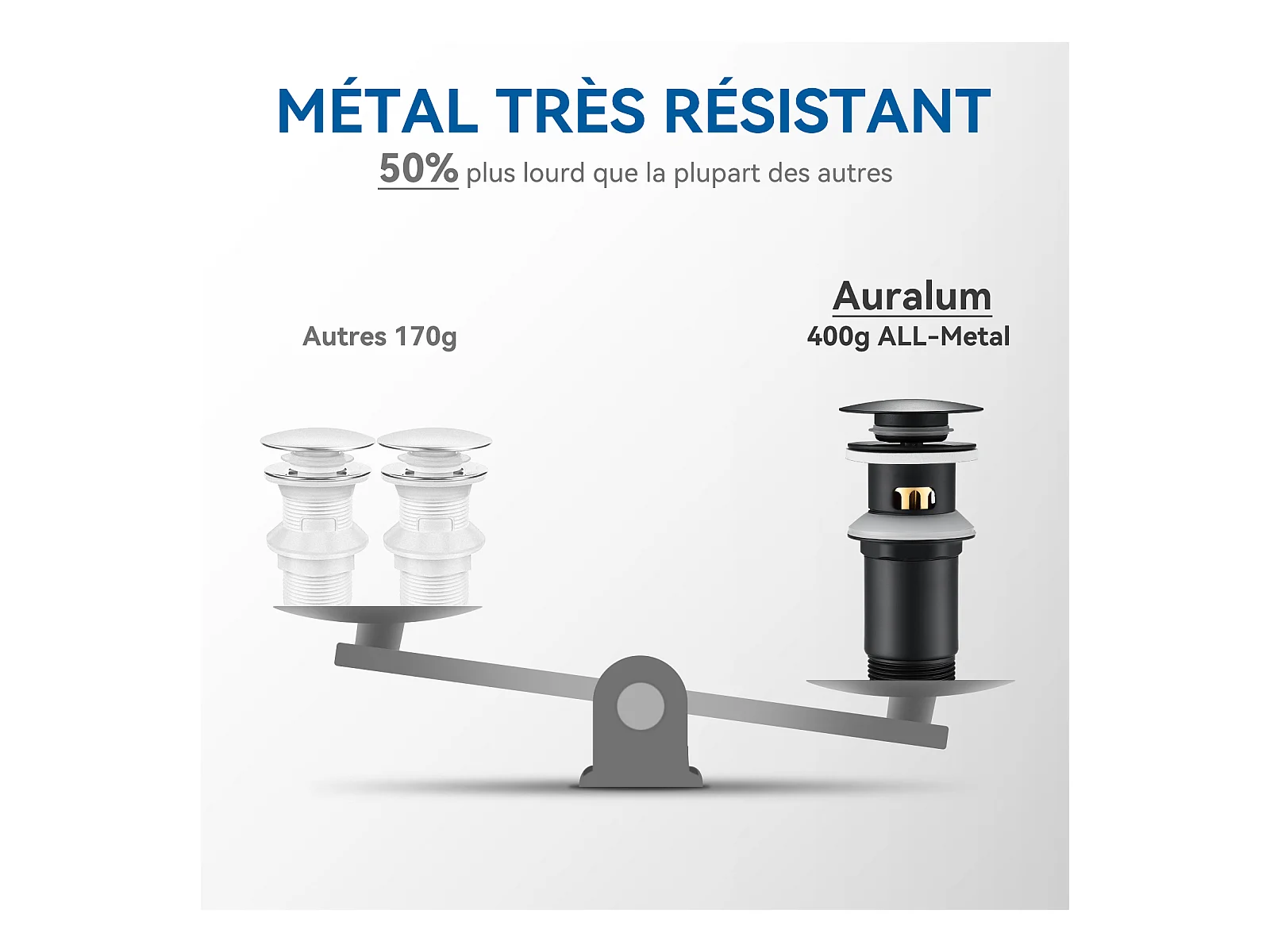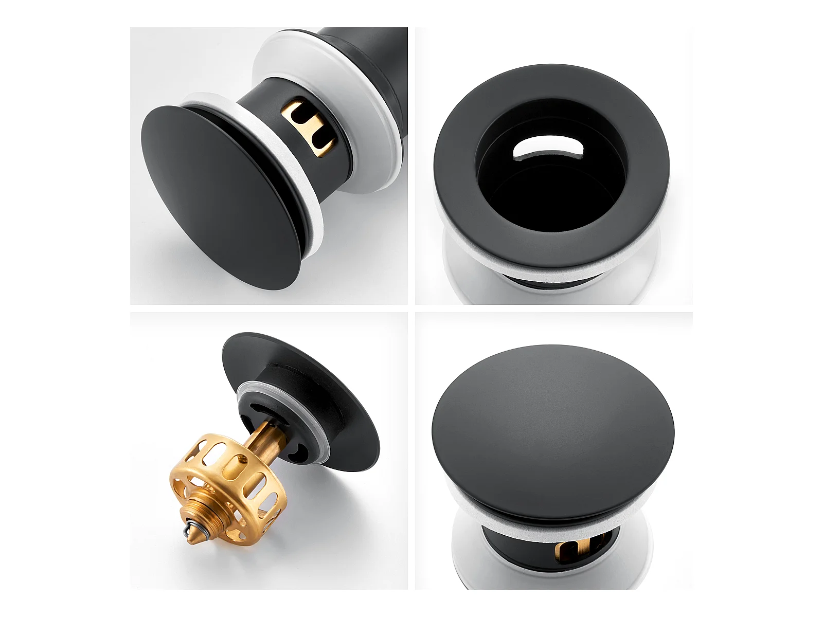 Auralum max Pop-Up-Abfluss mit Überlauf, Ablaufstopfen mit Siebkorb, Ablaufstopfen aus Messing/Edelstahl für Badezimmerwaschbecken, schwarz, 2 Stück