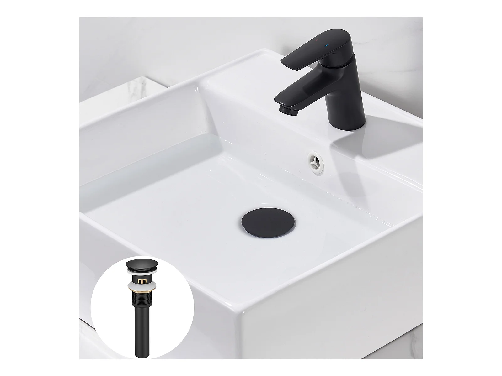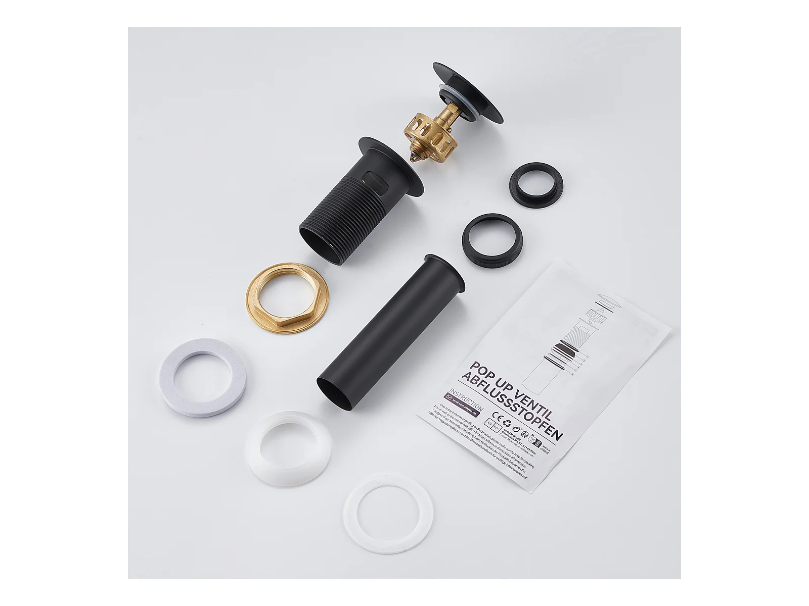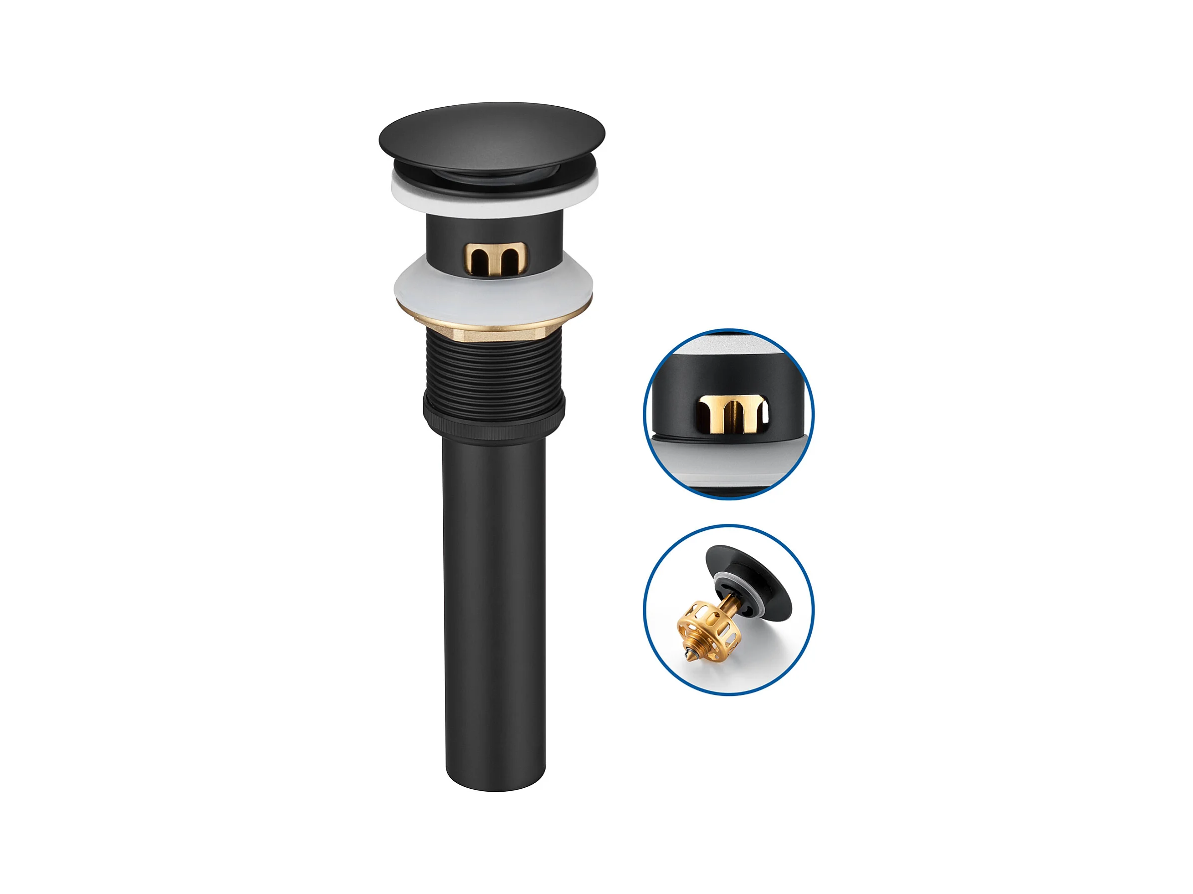 Auralum max Pop-Up-Ablauf mit Überlauf, schwarz, universeller Abflussstopfen für Waschbecken mit Siebkorb, verstopfungssicherer Badezimmerablauf aus Messing
