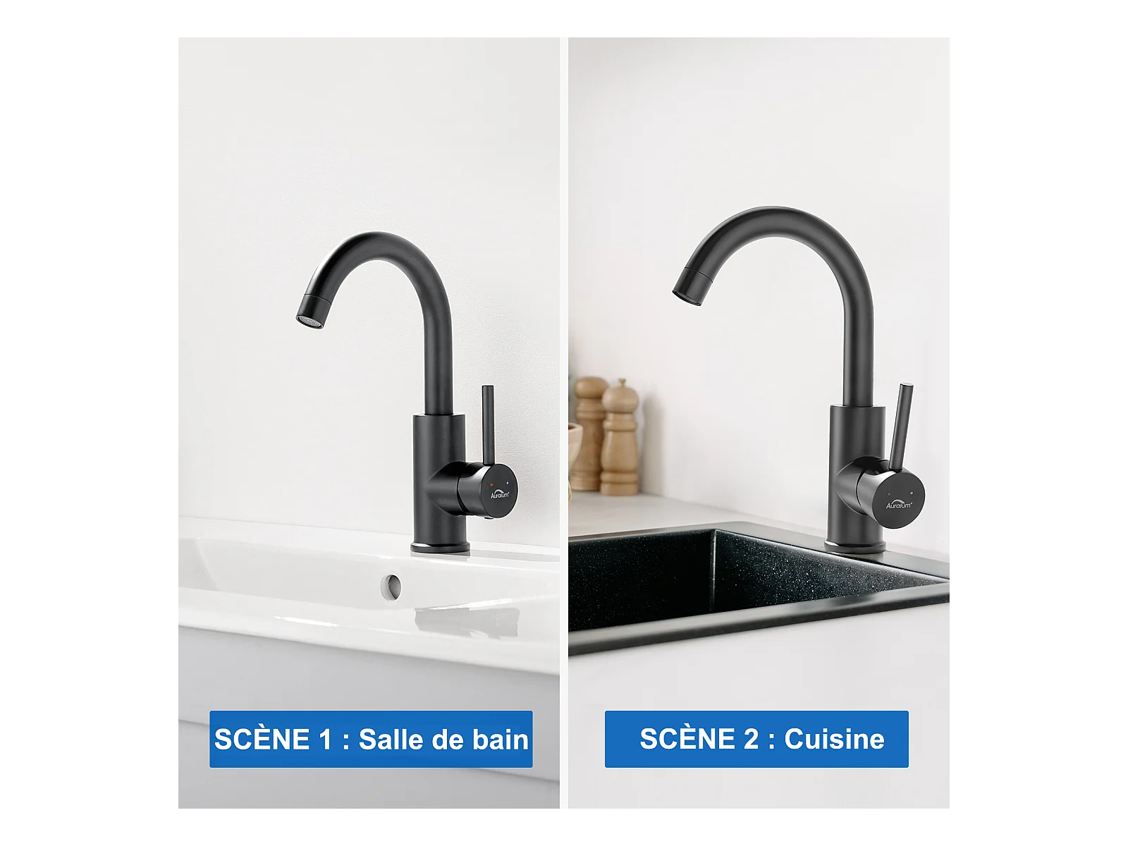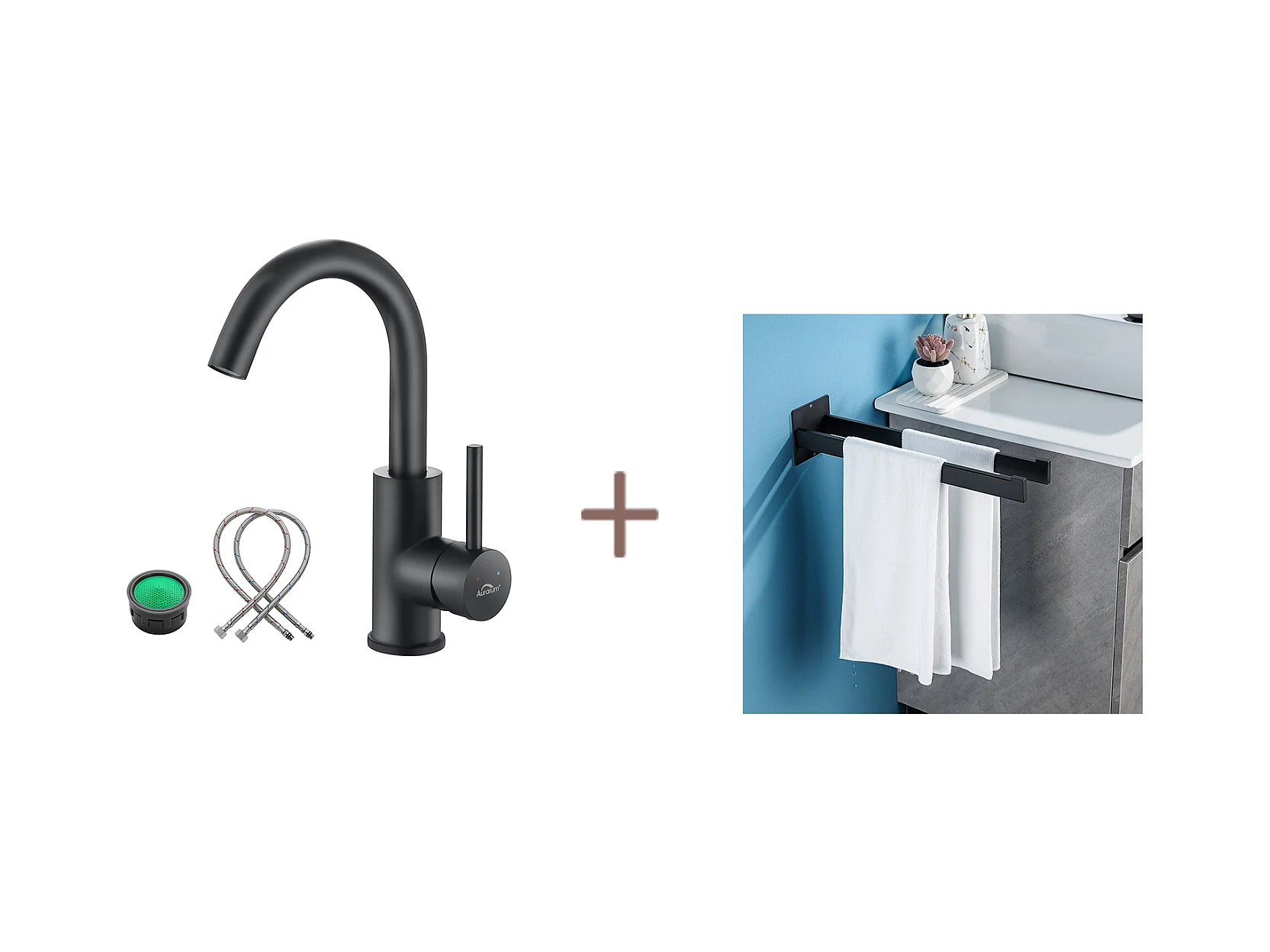 Auralum max Schwarz Waschtischarmatur 360° Drehbar inkl. Kleben/Bohren Bad Handtuchhalter Handtuchstangen Edelstahl 40cm