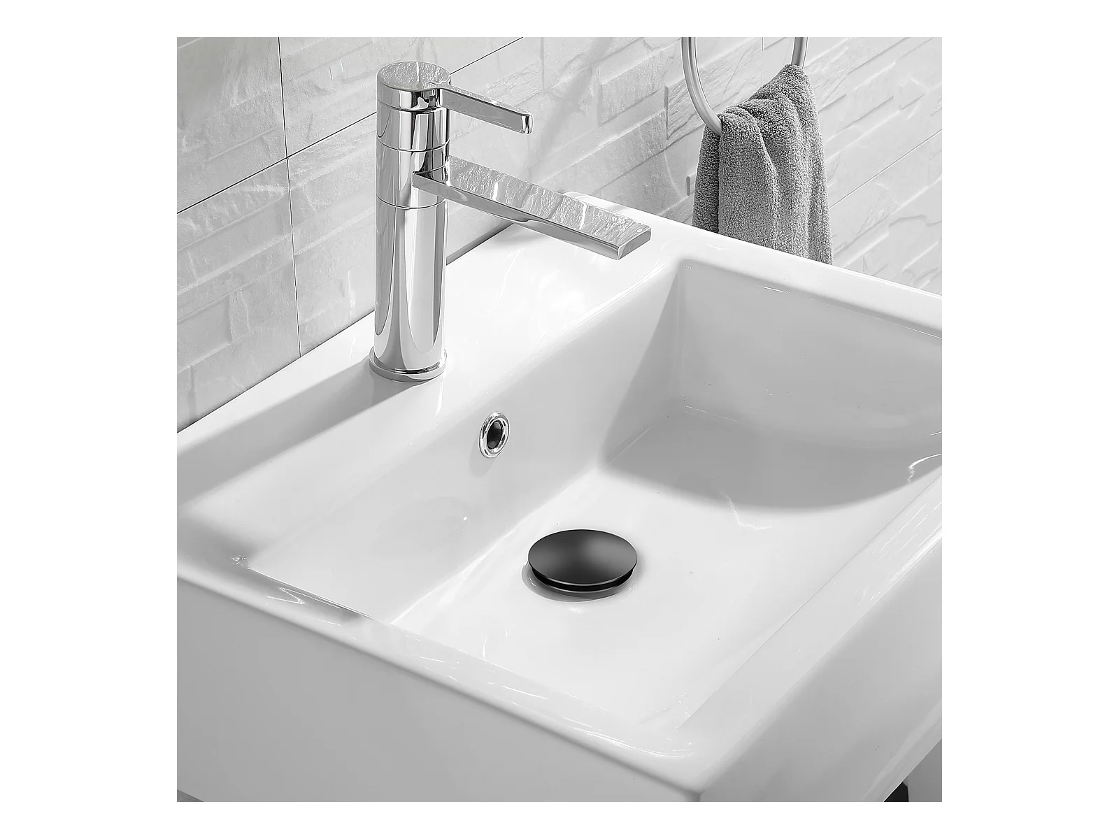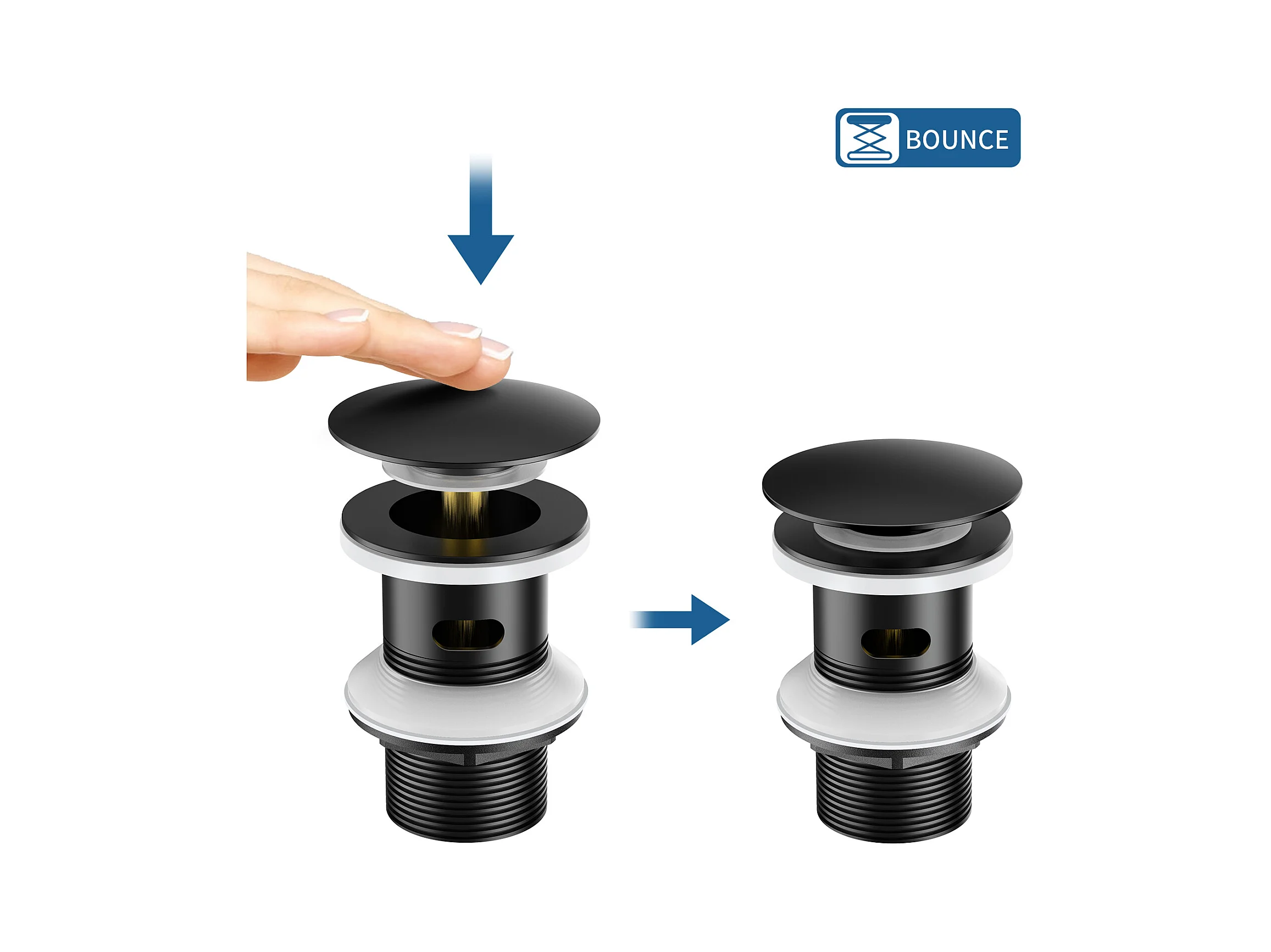 AuraLum Max Spülbeckenablauf mit Überlauf, Spülbeckenablauf, Pop-Up-Spülbeckenablauf, Universal-Spülbeckenablauf, Schwarz, EU-Modell