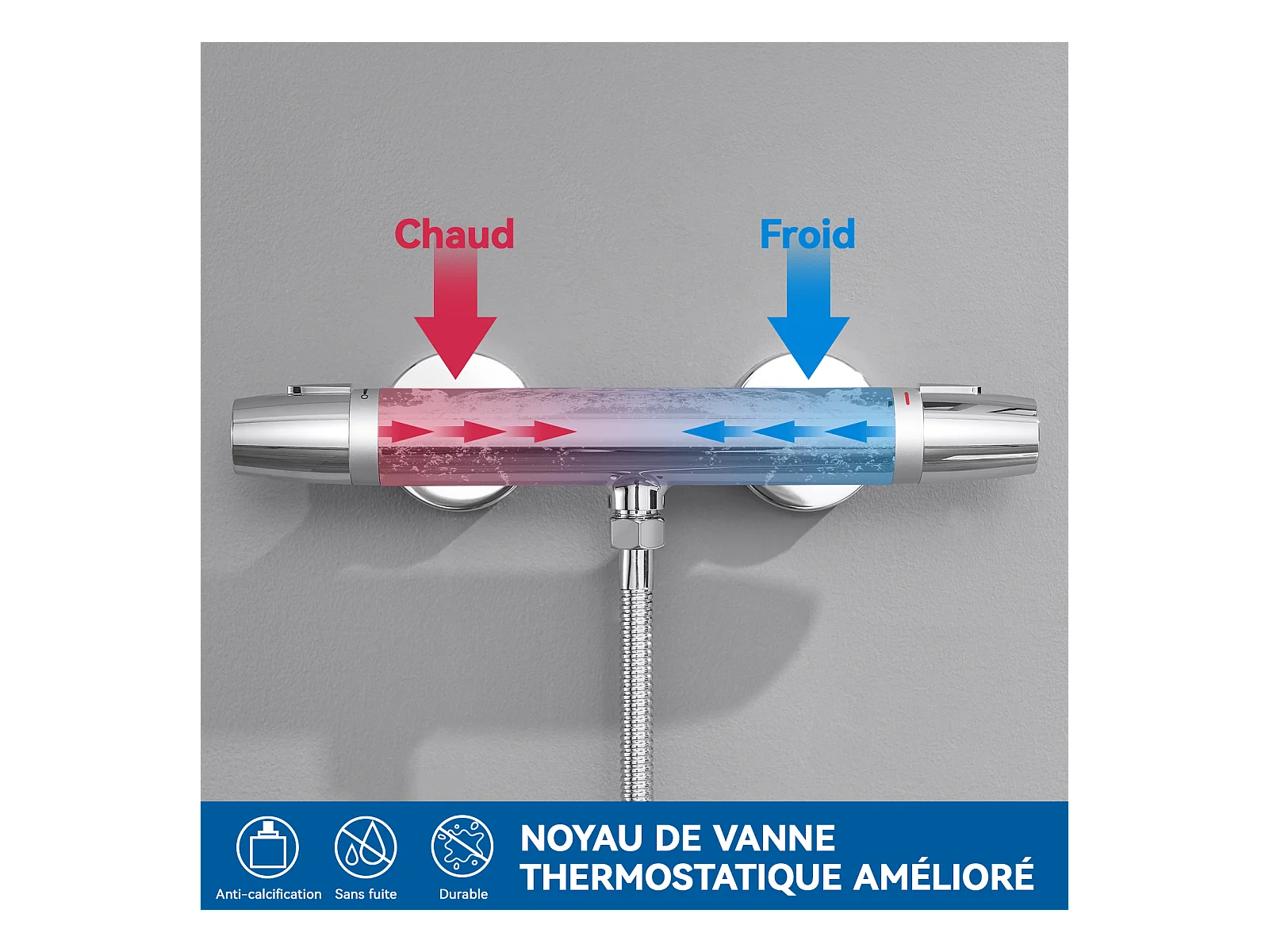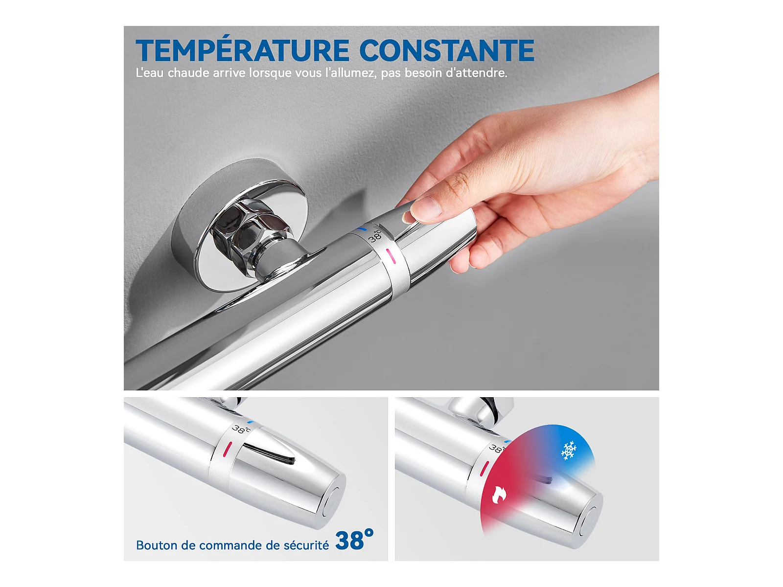 Auralum Max Thermostat-Brausemischer, Wandmontage, Verbrühungsschutz, Warm-/Kaltwasserhahn, konstante Temperatur 38°, Chrom