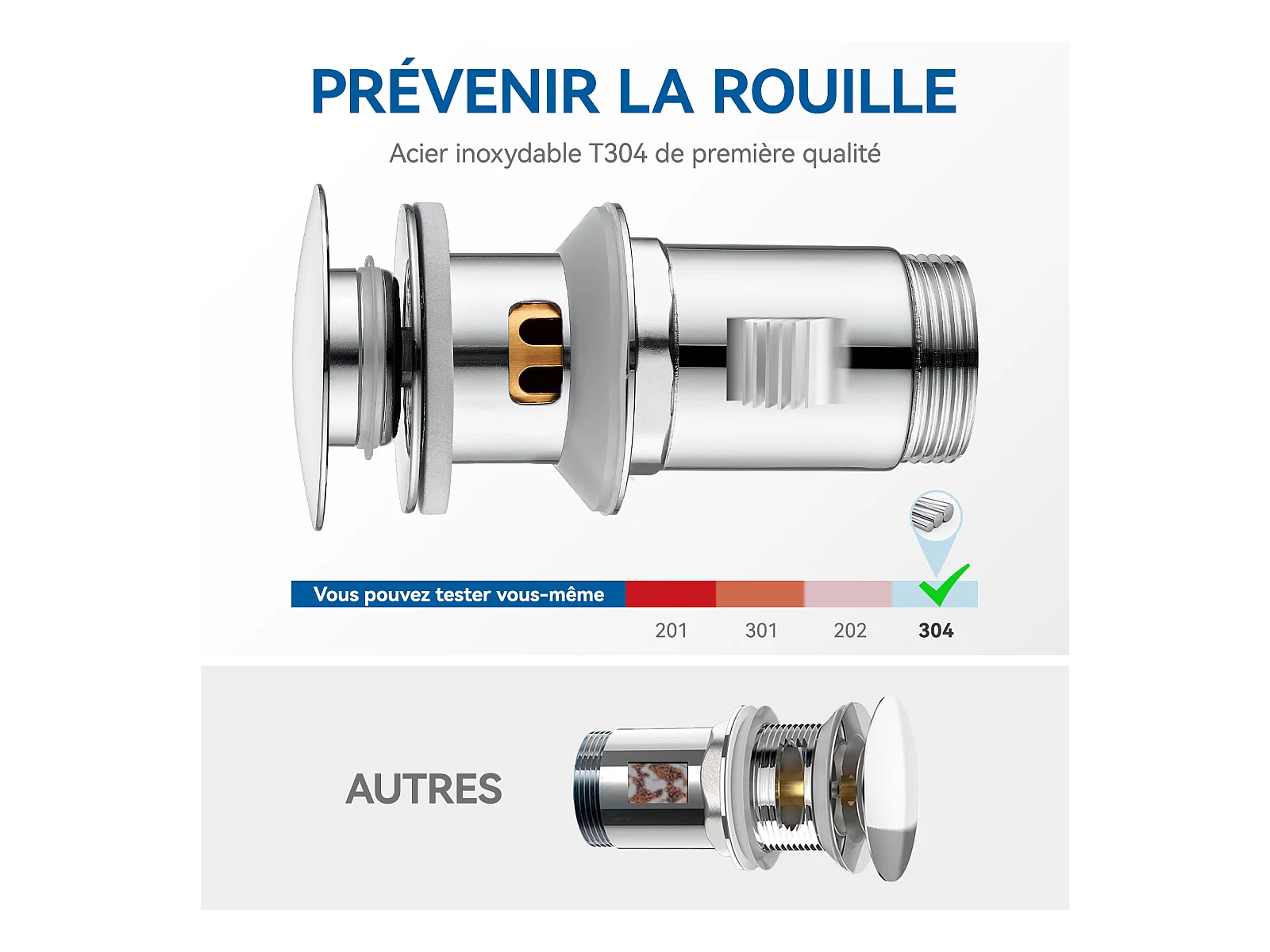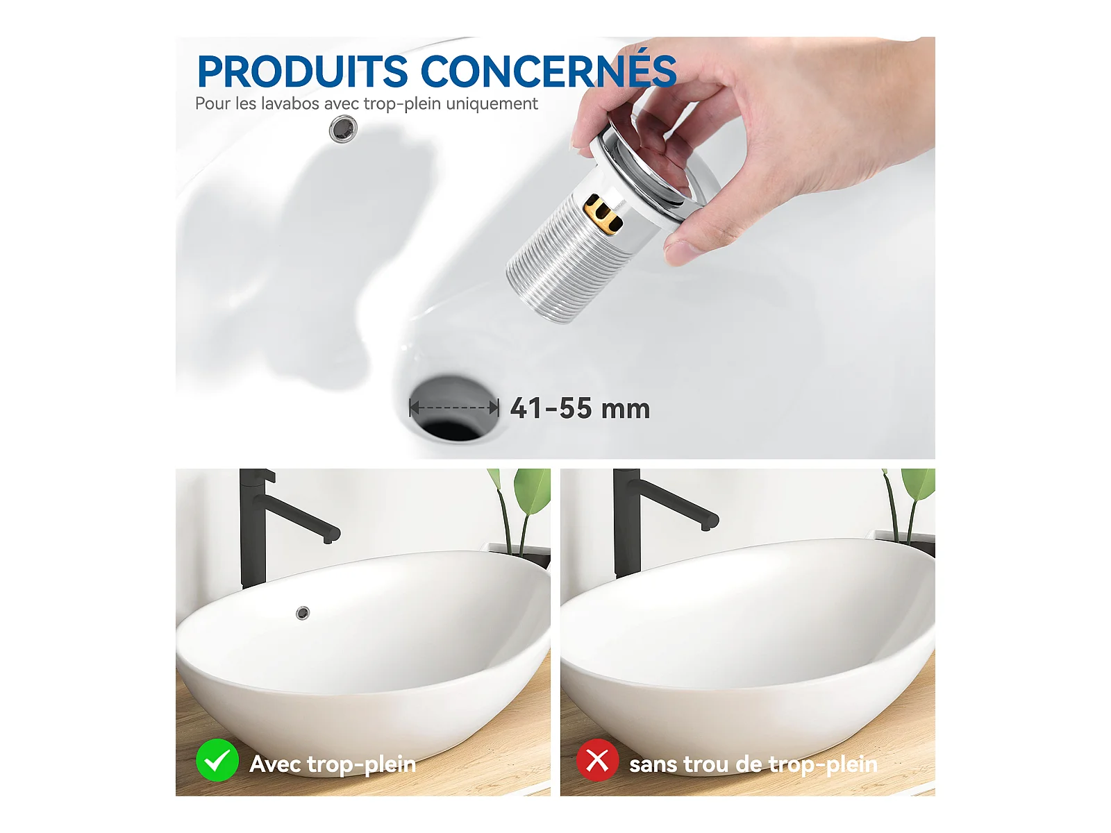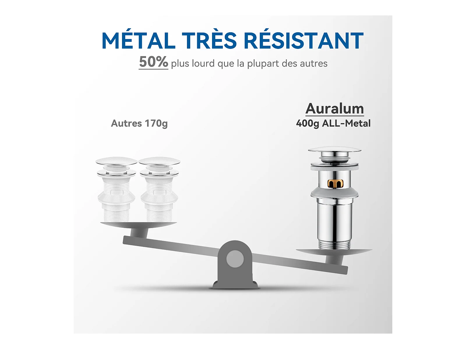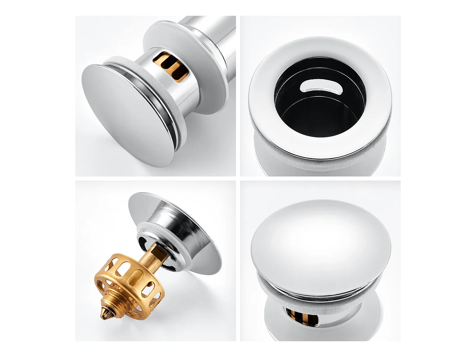 Auralum max Universal-Ablaufgarnitur für Spülbecken mit Überlauf, Pop-Up-Ventil für Spüle – Ablaufgarnitur aus Messing (Chrom, mit Siebkorb)