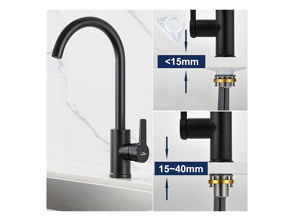Auralum max Unterbauspüle, 1 Becken, 60*49*20CM, 304 Edelstahl, Schwarz + 360° schwenkbarer Küchenmischhahn, Abnehmbarer Sprudeler, Schwarz