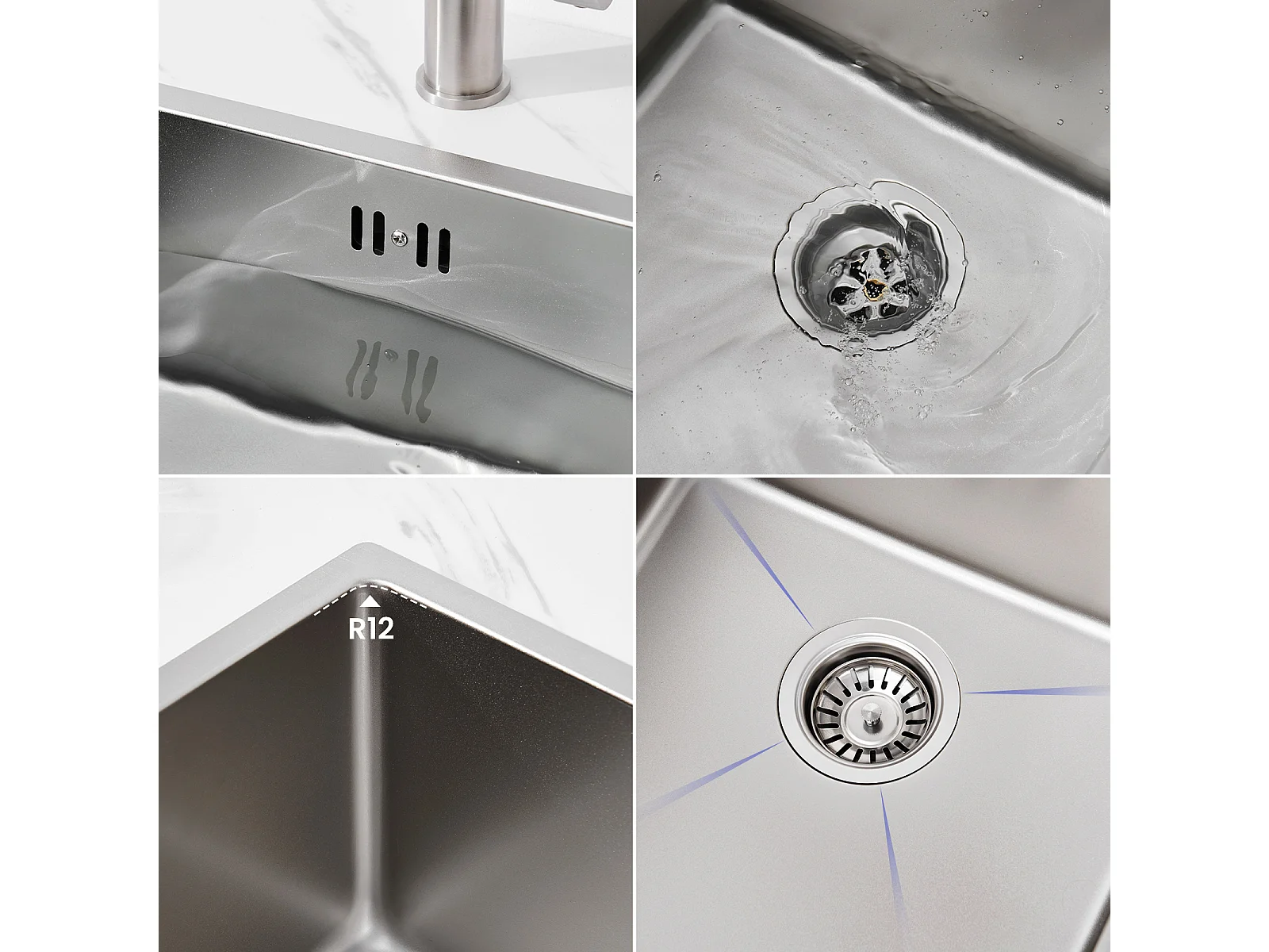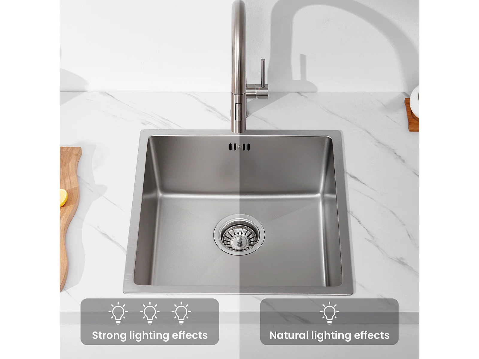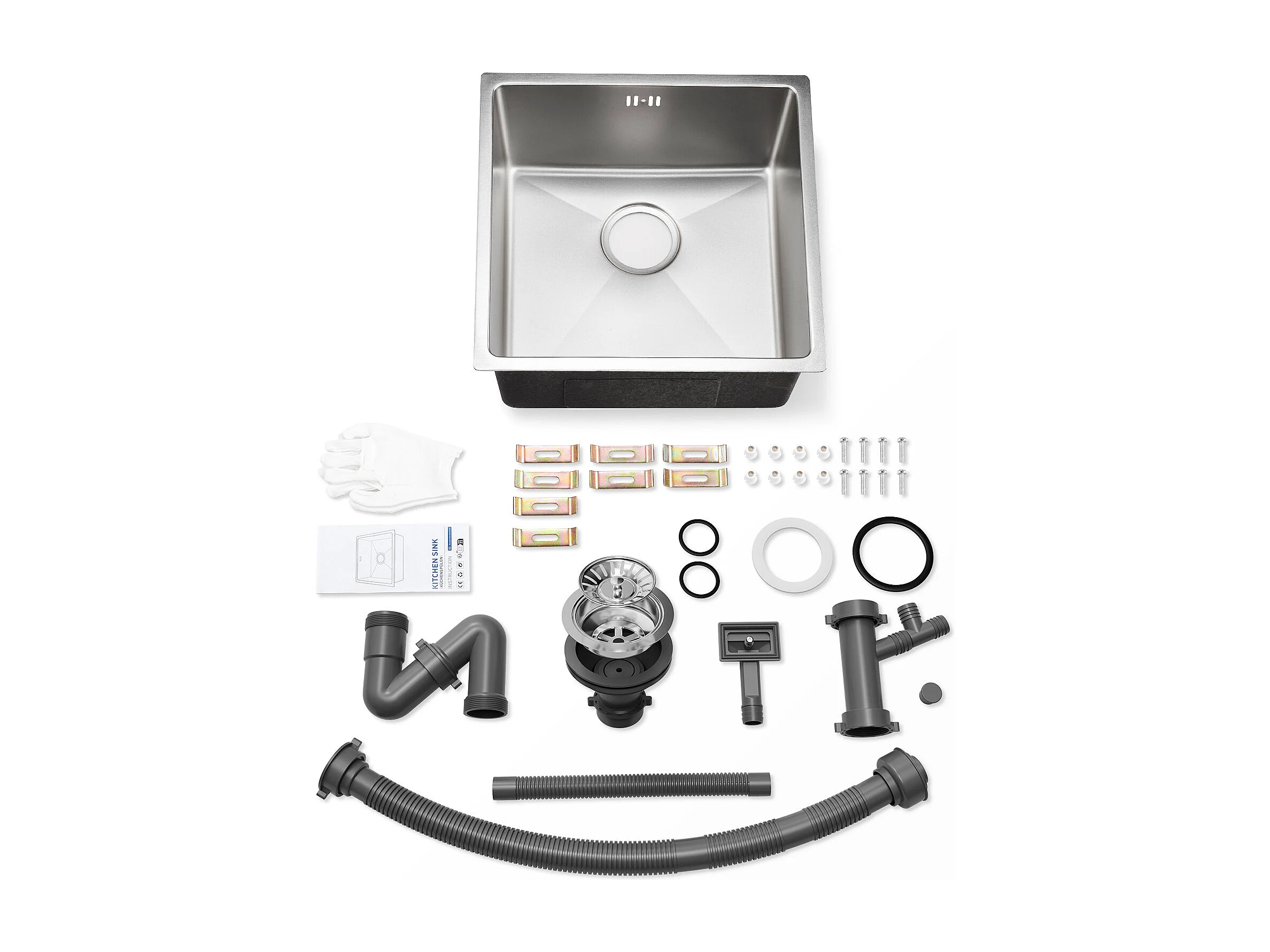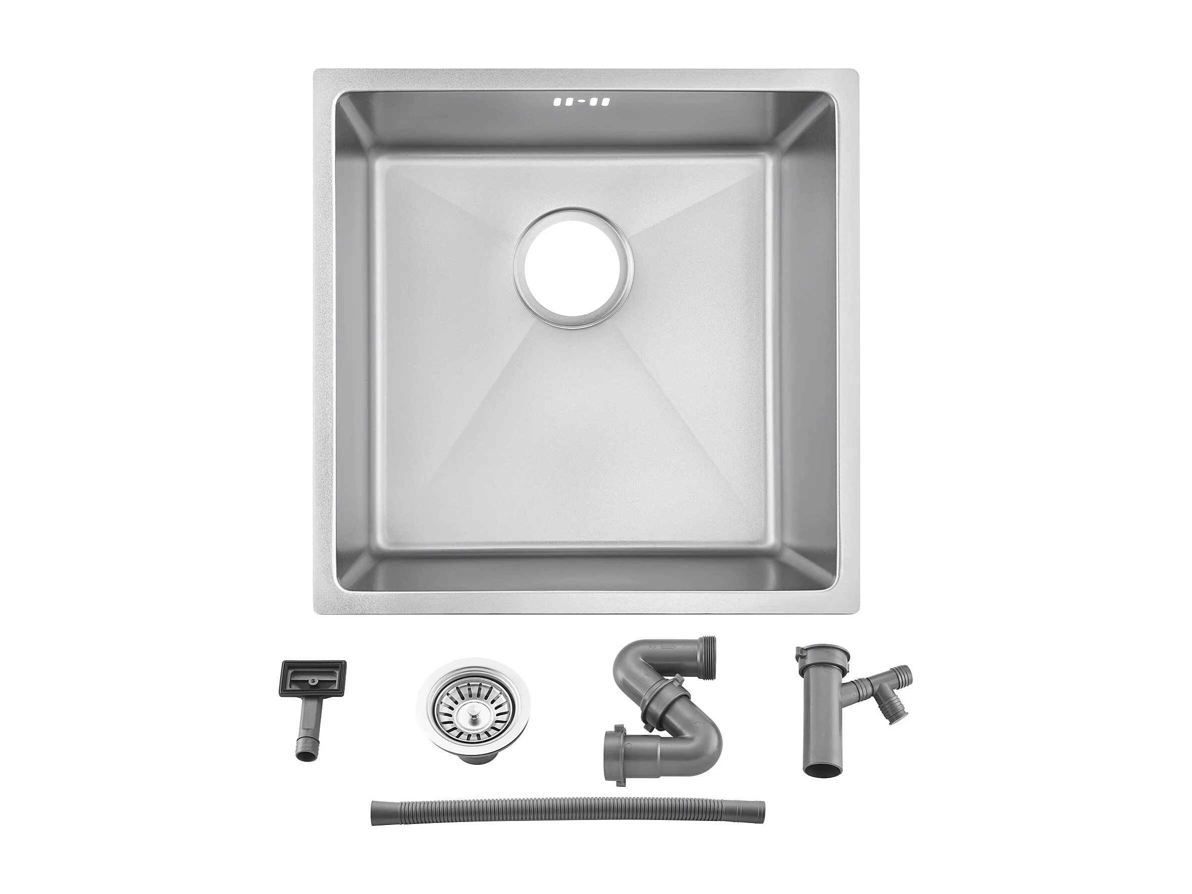 AuraLum Max Unterbauspüle 44x44x20 cm - Küchenspüle aus 304 Edelstahl mit Einzelbecken - Silberne Küchenspüle mit Abfluss, EU-Modell