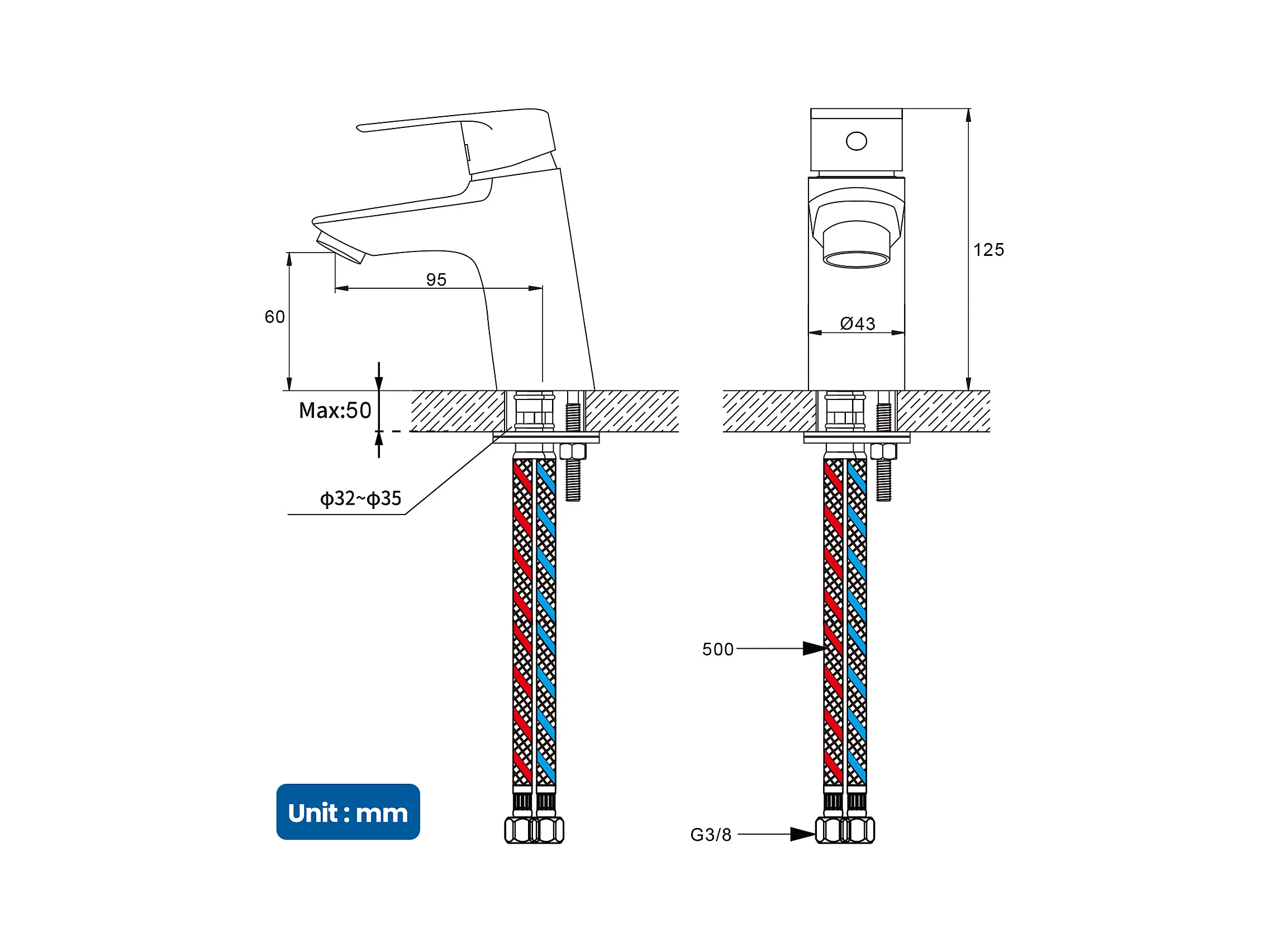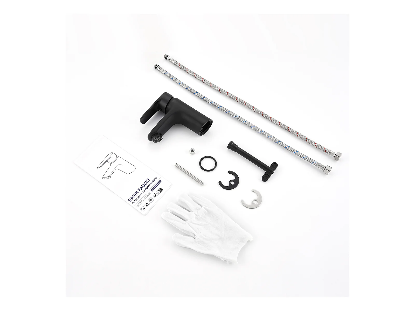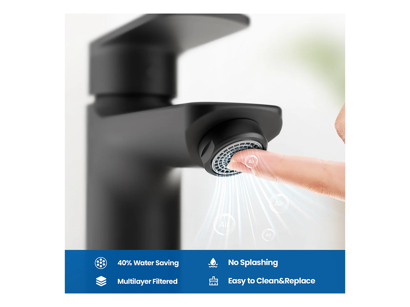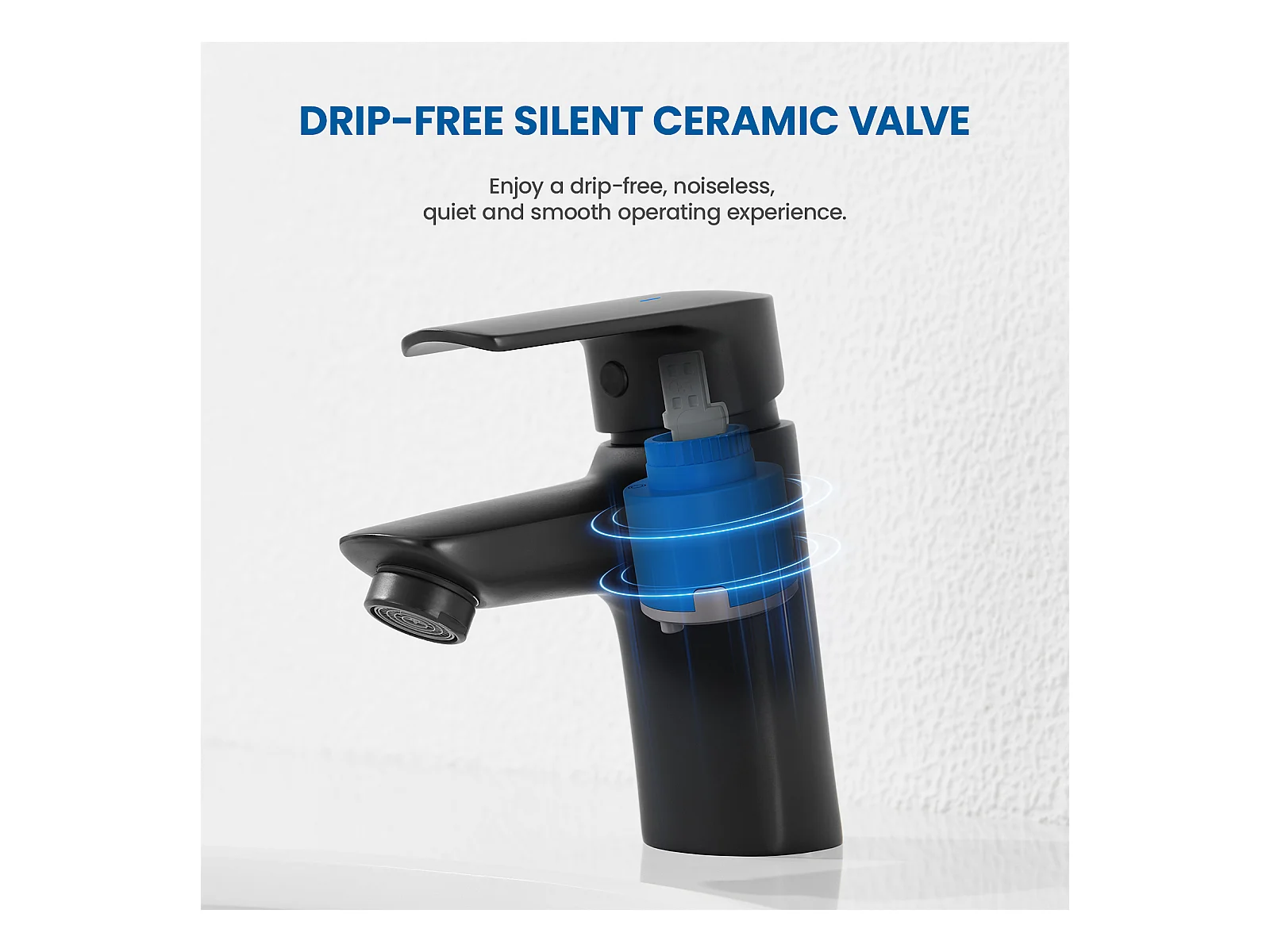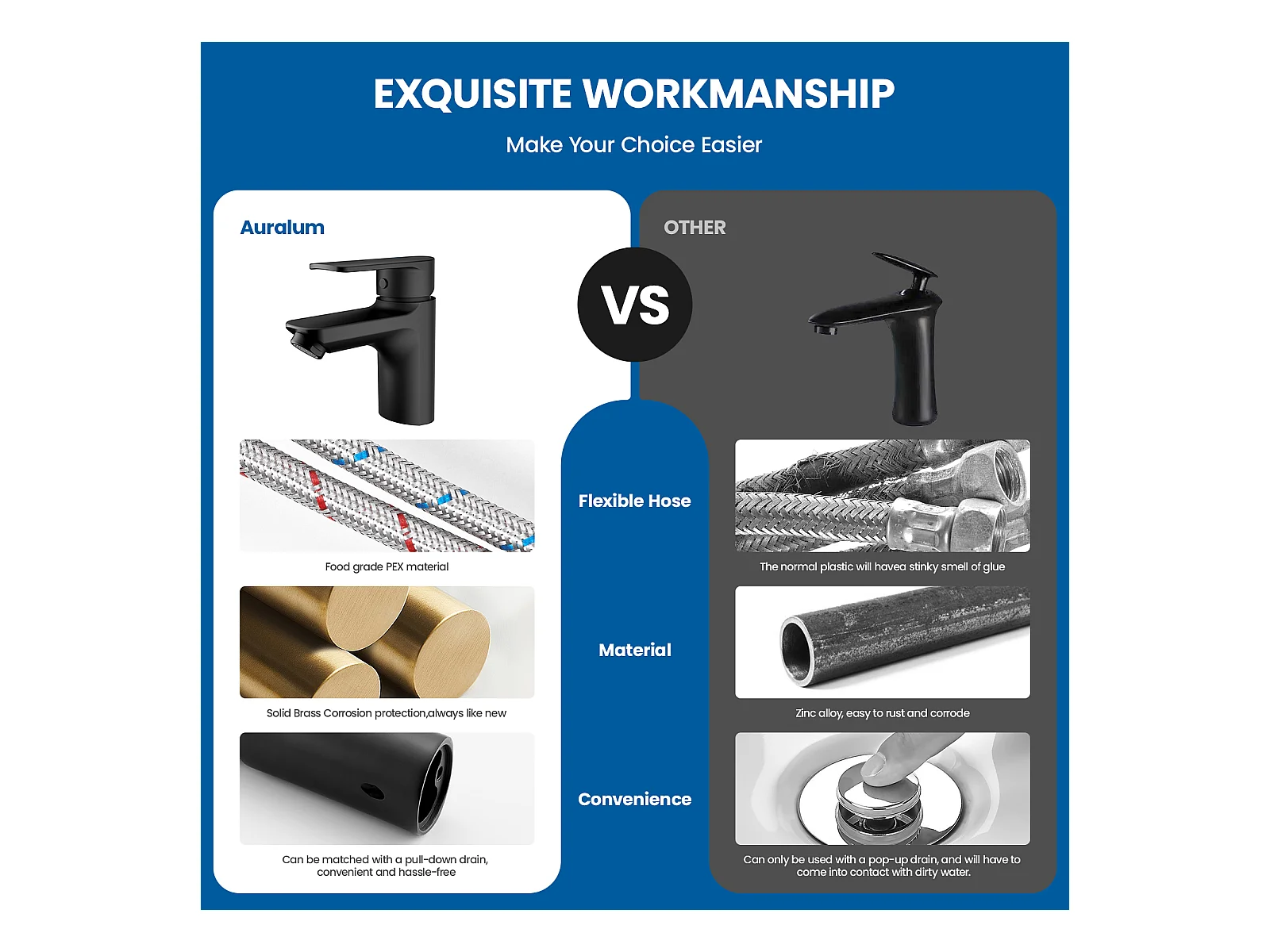 AuraLum Max Waschtisch-Mischbatterie mit Ablaufgarnitur, schwarzer Badezimmerhahn, Kalt-/Warmwasser, Messing, abnehmbarer Luftsprudler, EU-Modell, 2 Stück