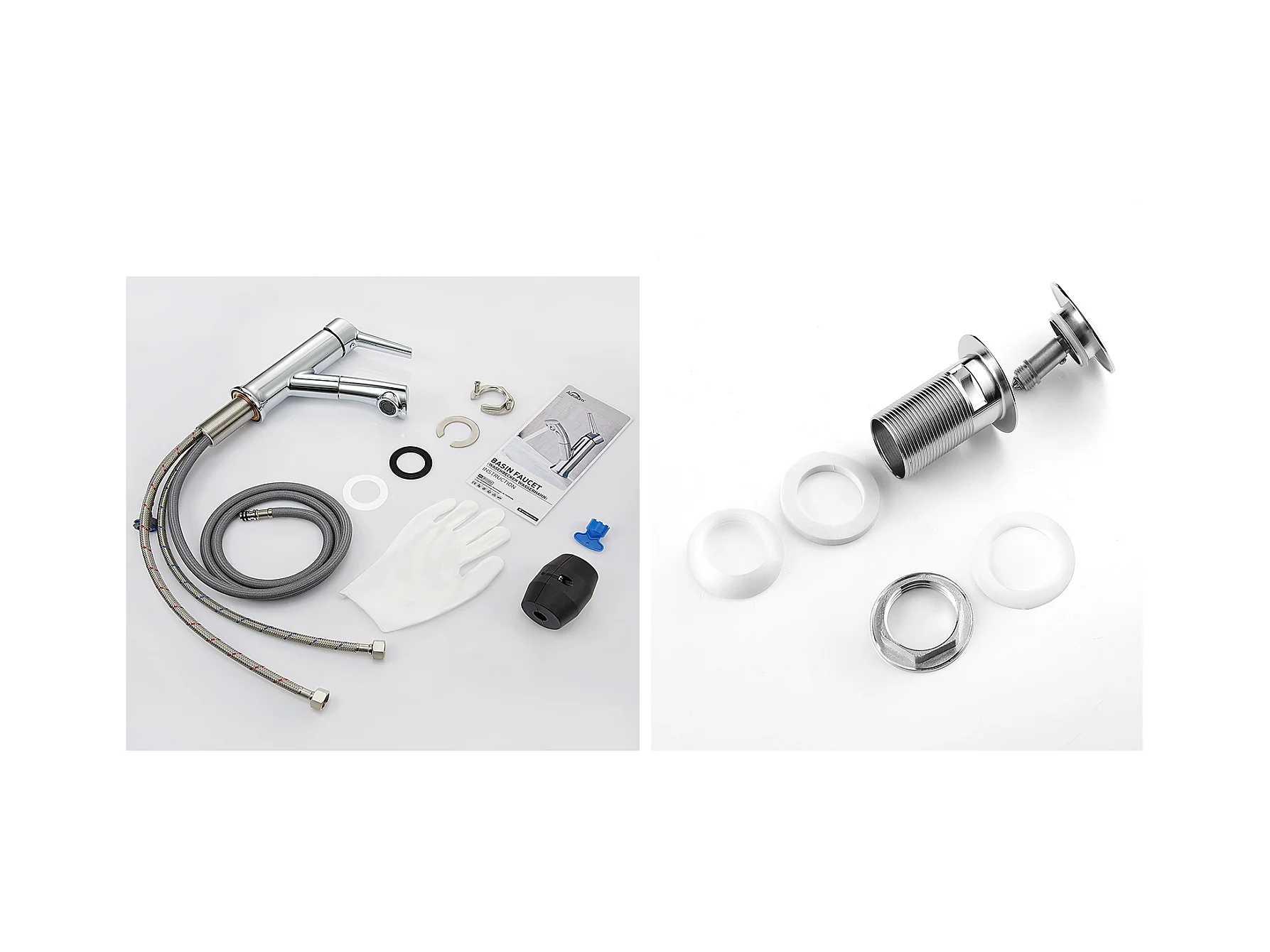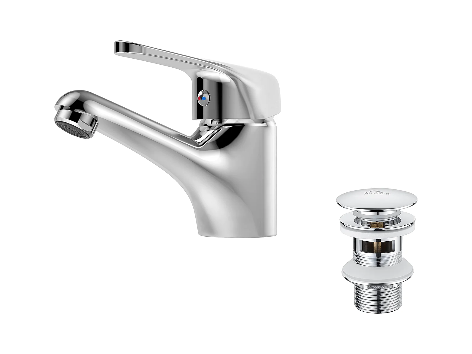 Auralum MAX Waschtischarmatur ohne Zugstangen-Ablaufgarnitur, Chrom Badarmatur + Waschtisch-Ablaufgarnitur mit automatischem Überlauf Universal