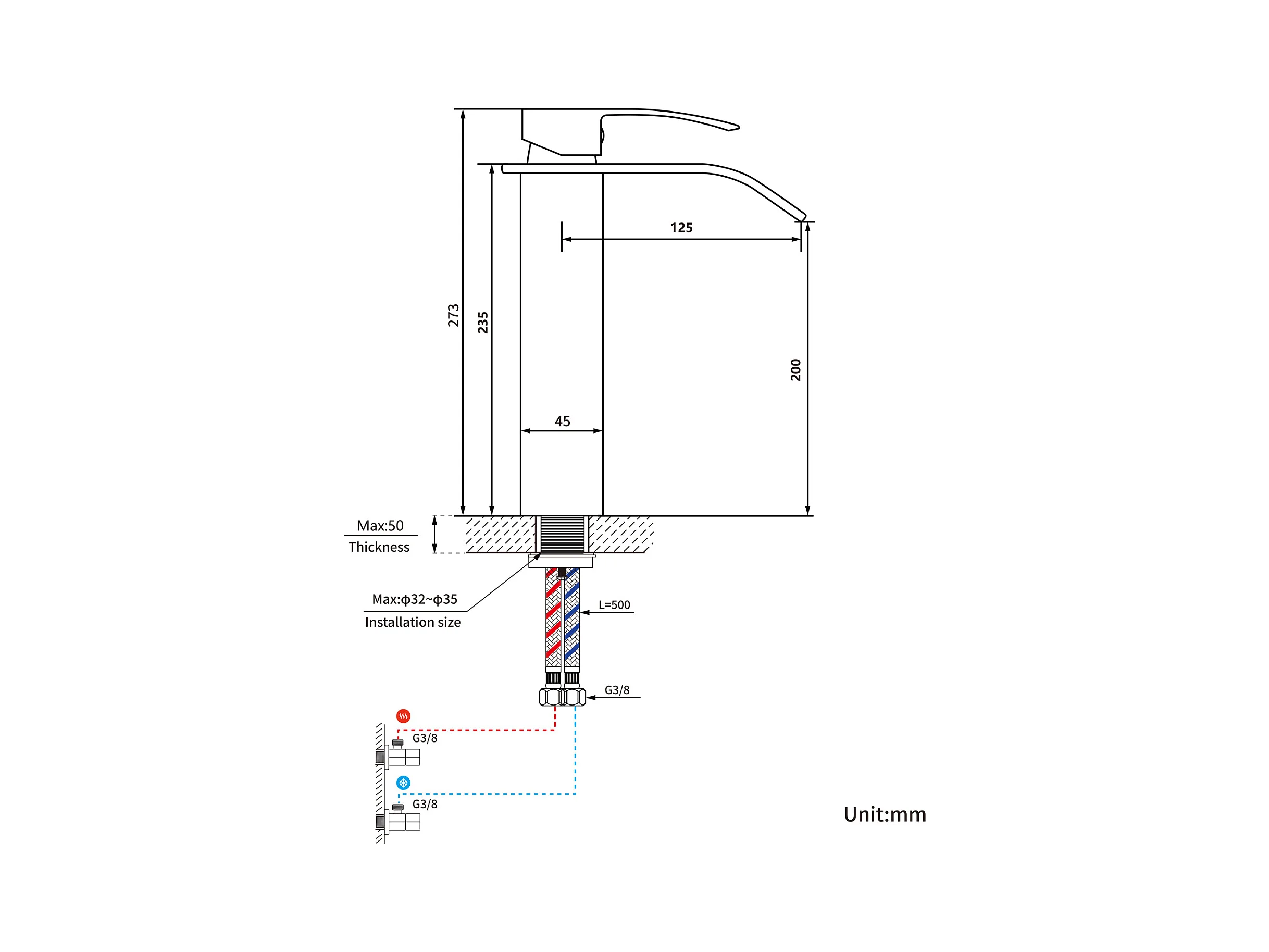 Auralum Max Wasserfall-Waschtischarmatur, hohe Waschtisch-Mischbatterie, Edelstahl, Chrom + 60 cm selbstklebende Badezimmer-Handtuchstange/Bohrung, Edelstahl