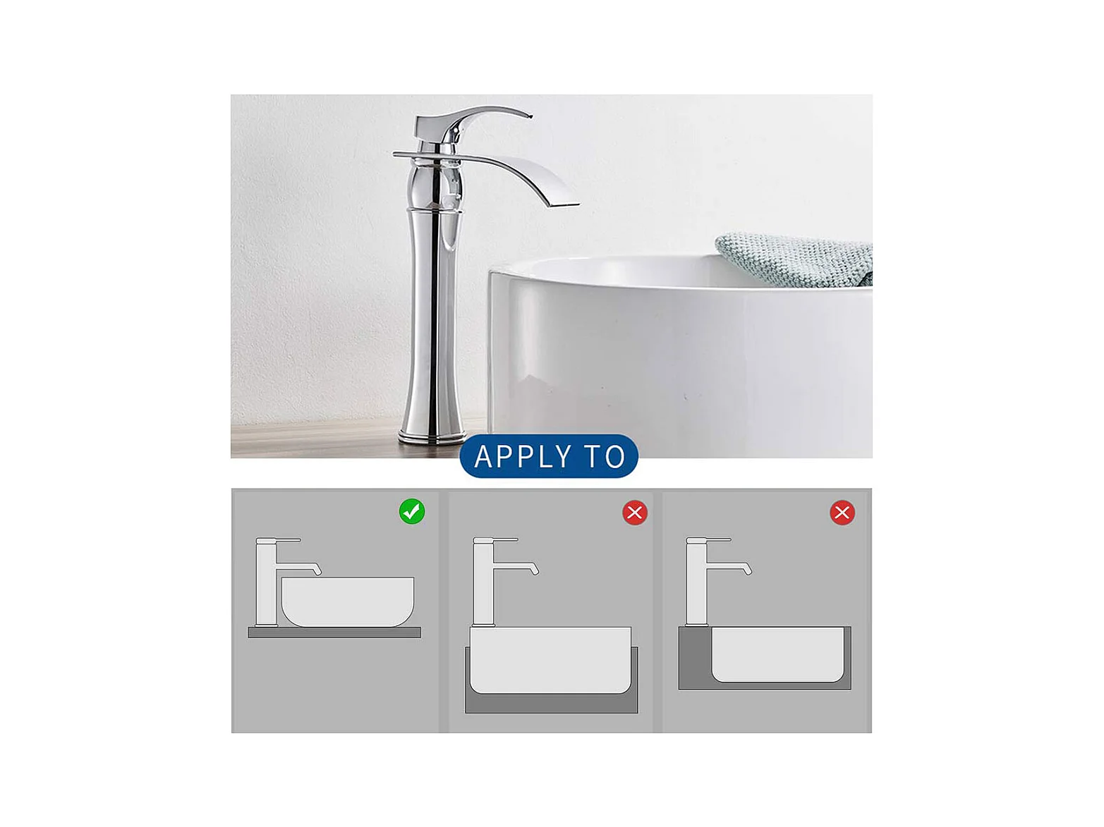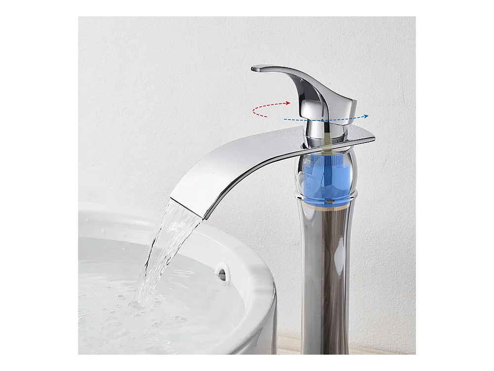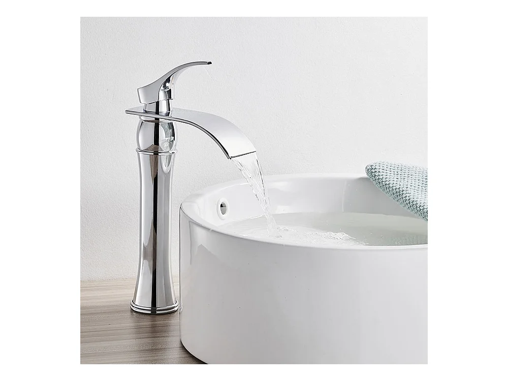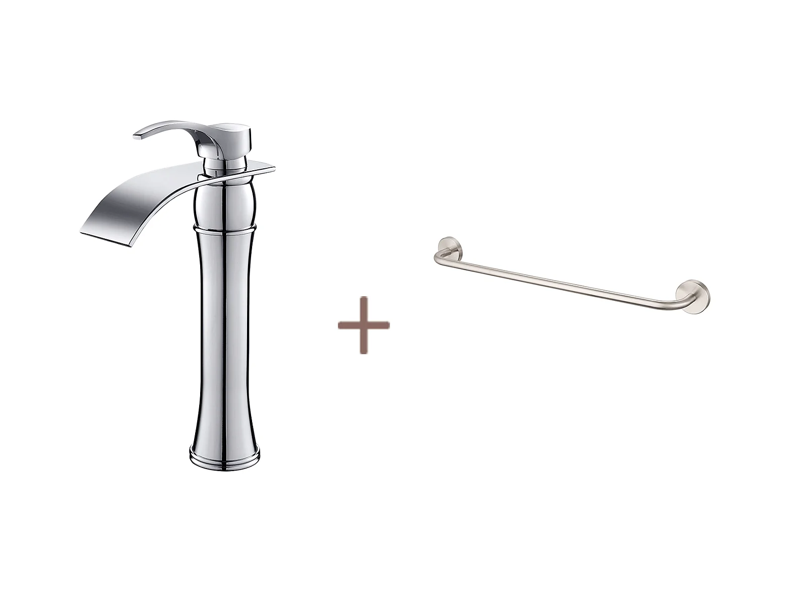 Auralum max Wasserfall-Waschtischarmatur mit hohem Auslauf, Moocommand, Chrom + 60 cm Handtuchhalter fürs Bad, selbstklebend oder bohren, Edelstahl