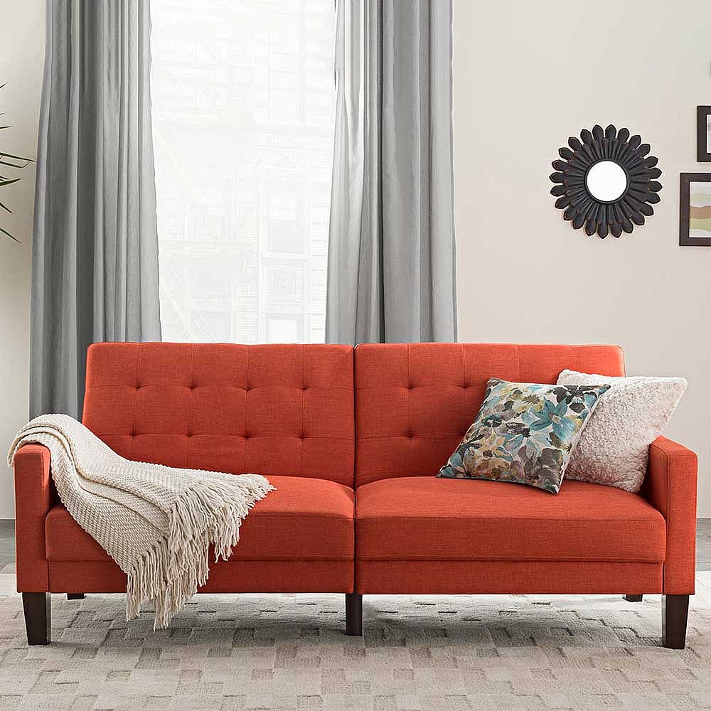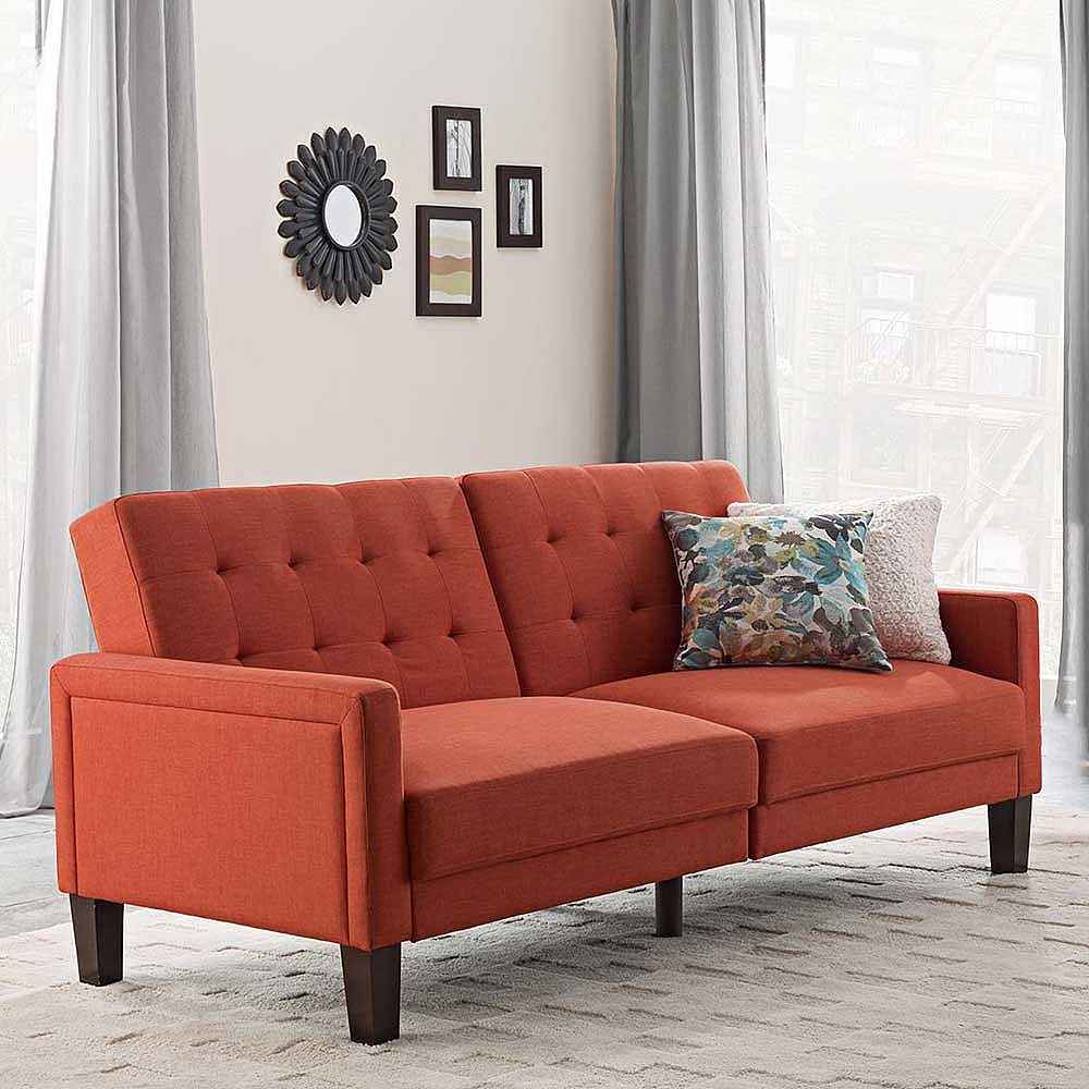 Ausklappbares Sofa Retro in Ziegel Rot 200 cm breit - 88 cm tief