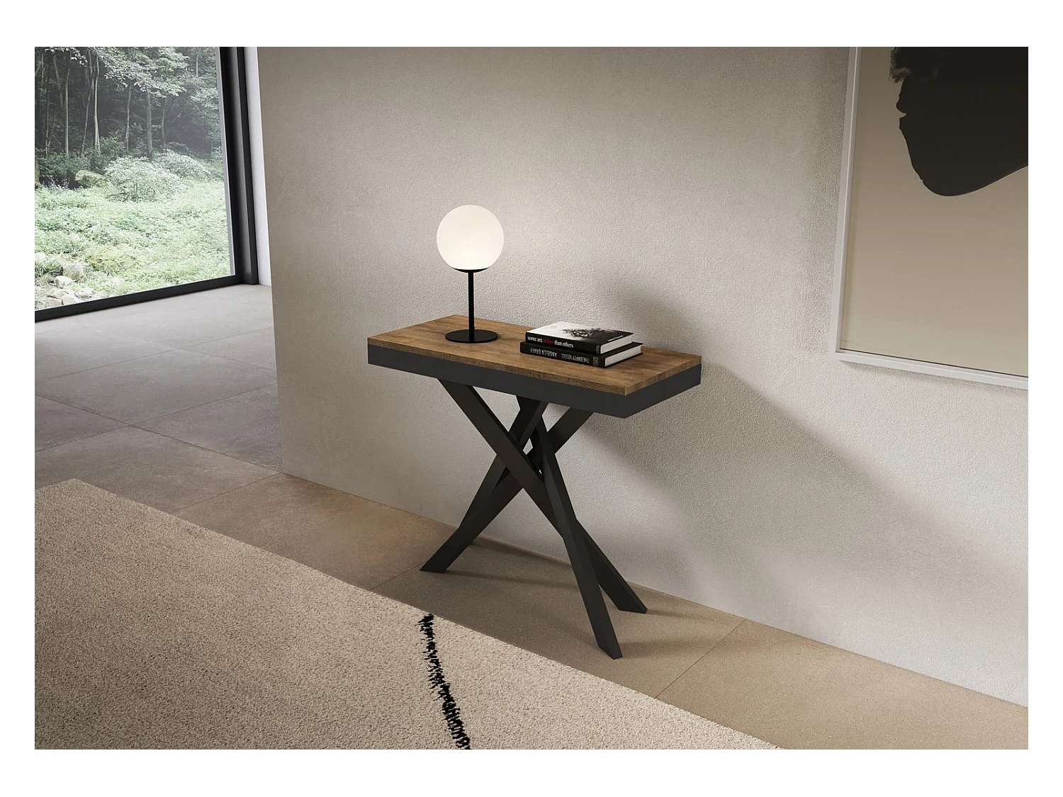 Ausziehbare Konsole 90x40/300 cm Saki Evolution Walnuss-Anthrazit-Gestell