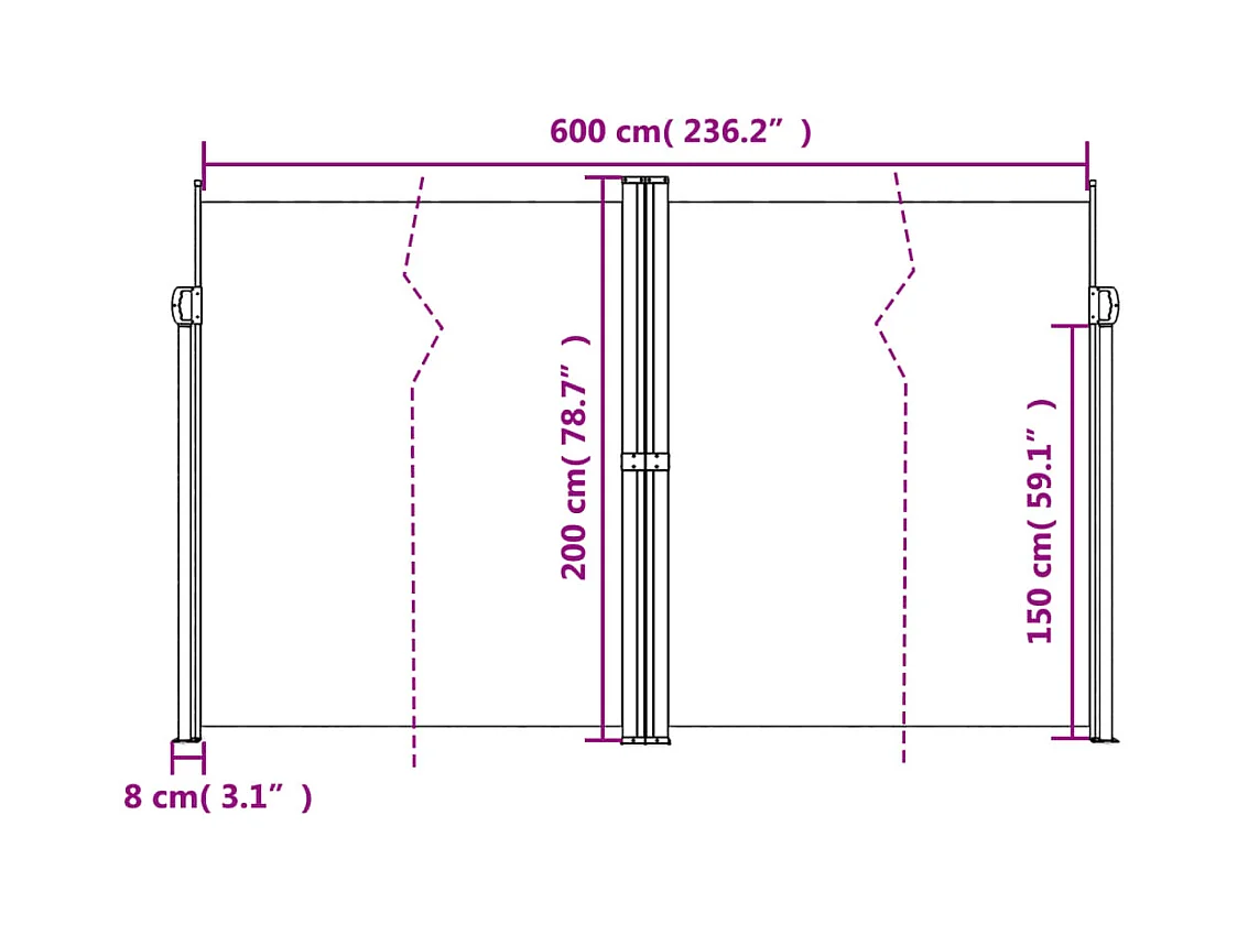 Ausziehbare Seitenmarkise Taupe 200x600 cm