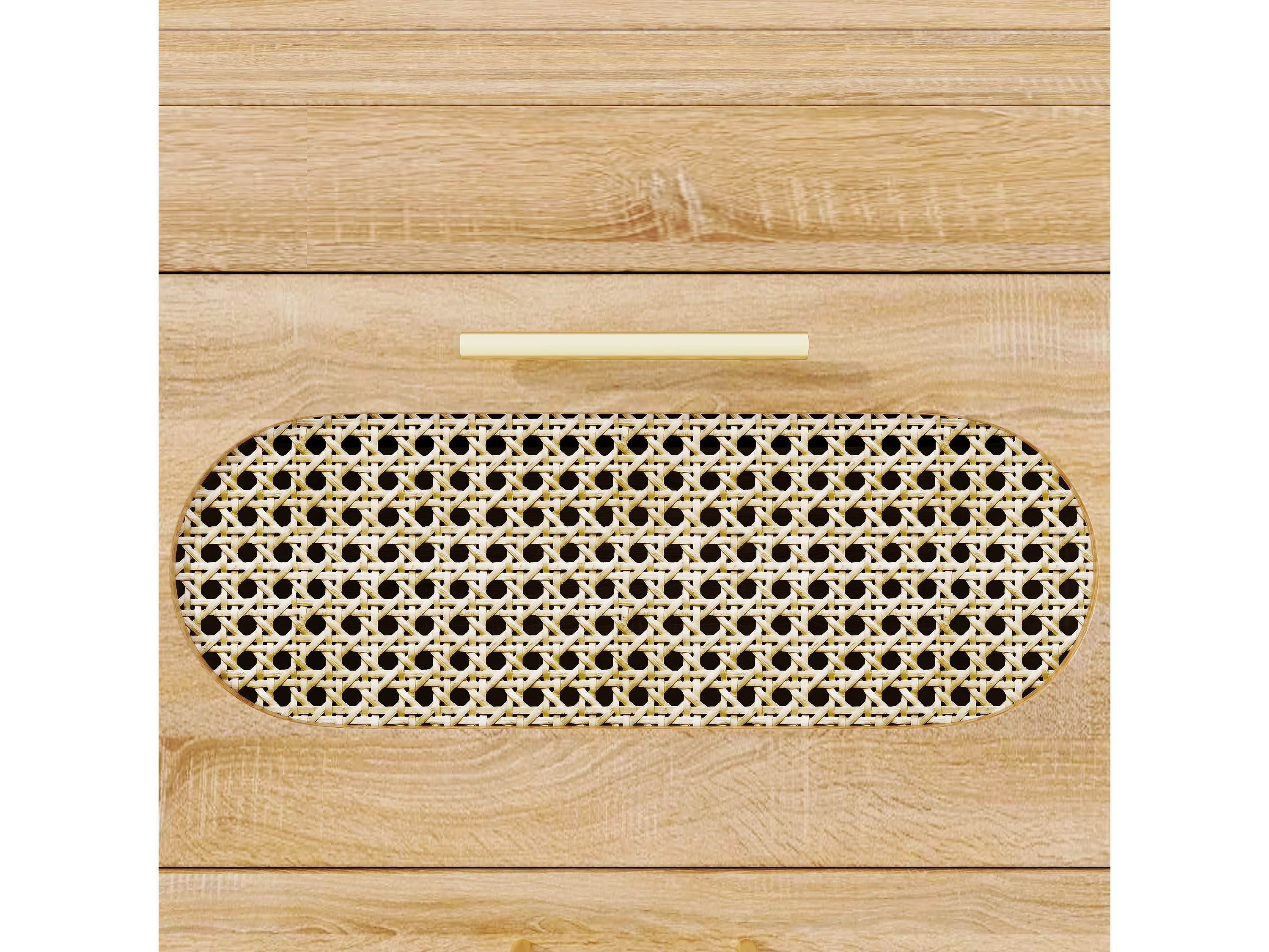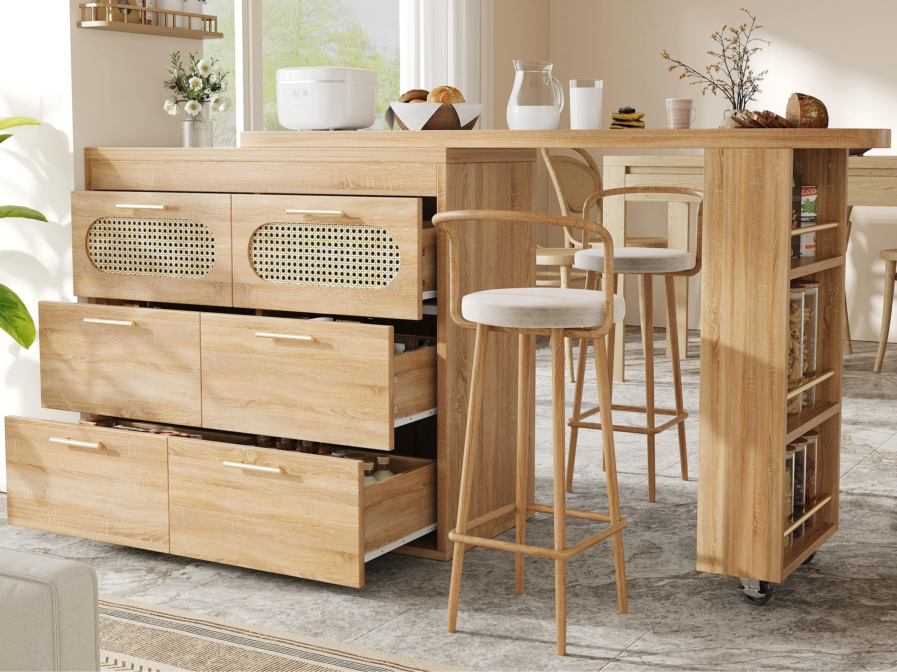 Ausziehbarer Bar-Schrank - drehbar - 128-203x39x90cm - mit 6 Schubladen - großer Stauraum und Metallgriffe - Natur