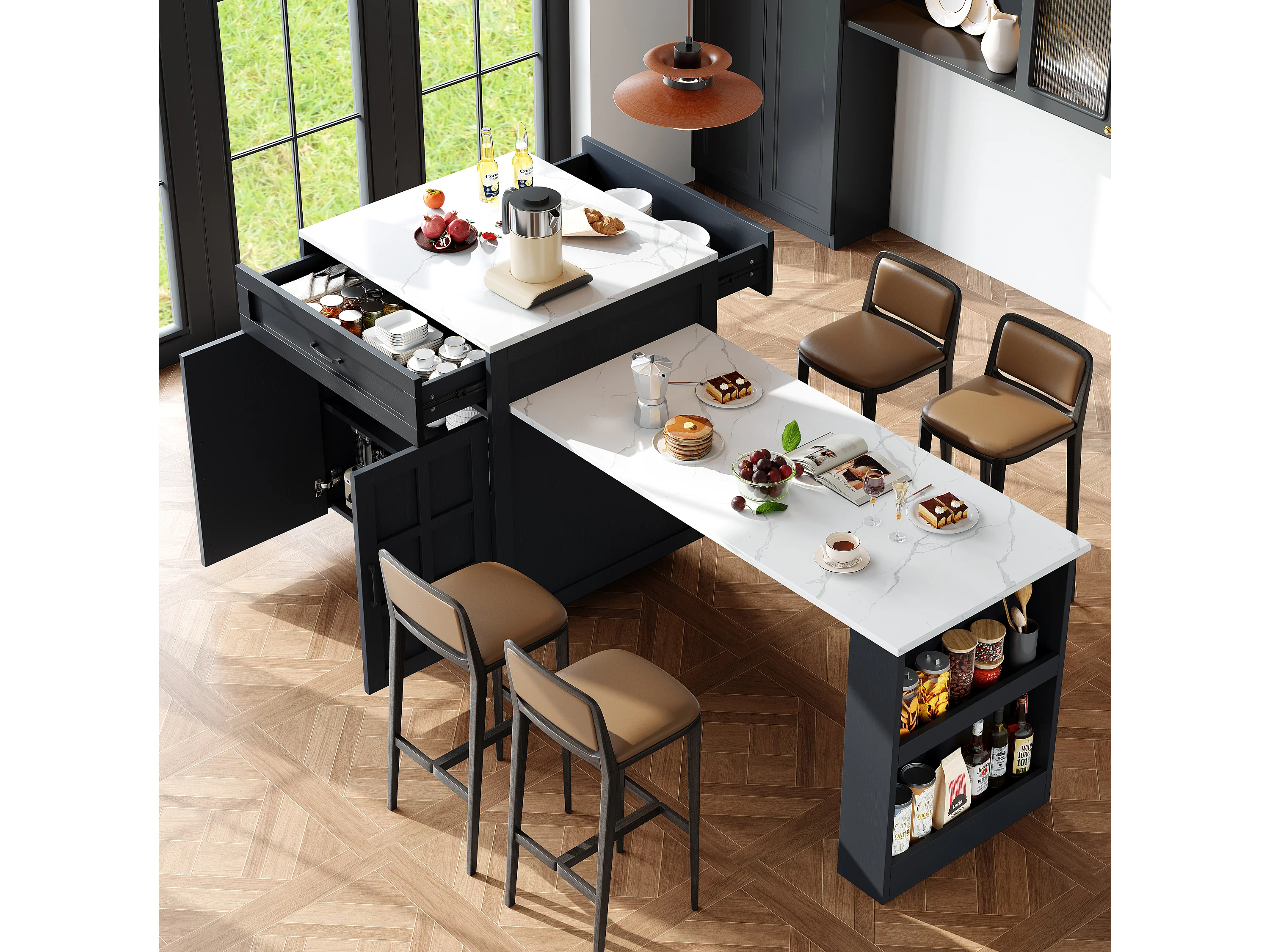 Ausziehbarer Bartisch mit Stauraum – 133–202 x 70 x 93,5 cm – mit 2 Schubladen und 4 Fächern – MDF – schwarz