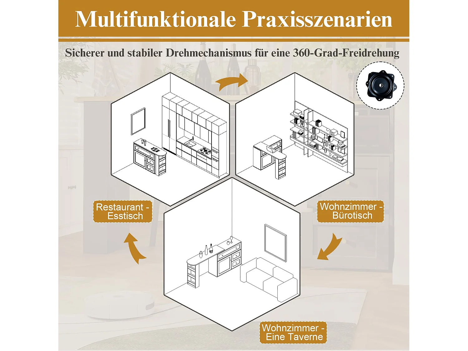 Ausziehbarer Bartisch mit Stauraum(Schwarz)Küchenschrank,Sideboard mit Snackregal,Teleskopischer Bartisch,Stehtisch Bistrotisch Hochtisch Kücheninsel