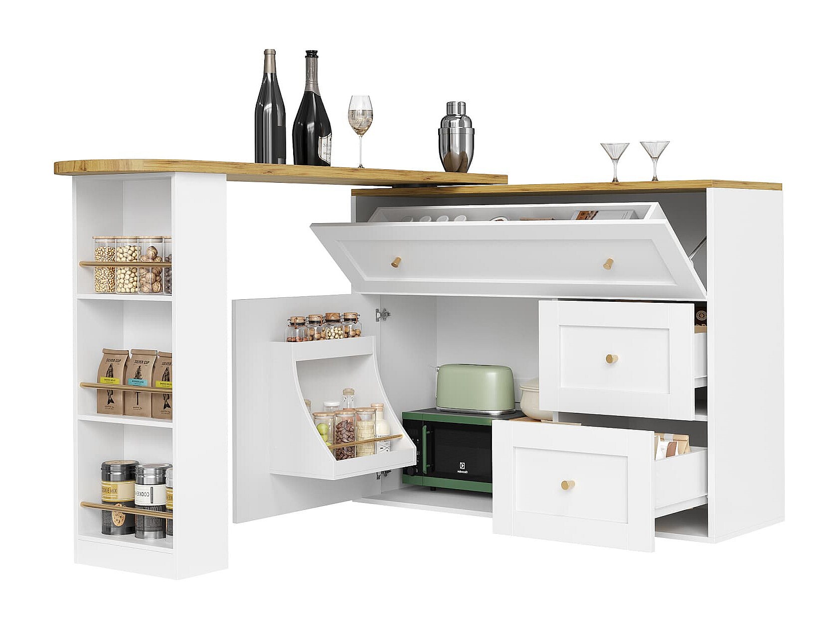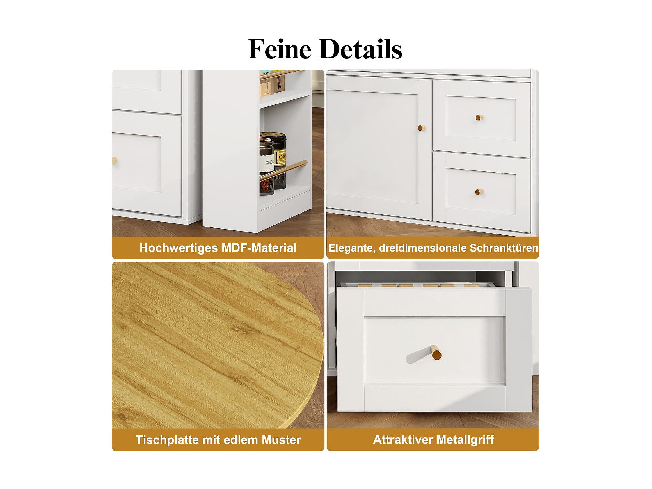 Ausziehbarer Bartisch mit Stauraum(weiß)Küchenschrank,Sideboard mit Snackregal,Teleskopischer Bartisch,Stehtisch Bistrotisch Hochtisch Kücheninsel