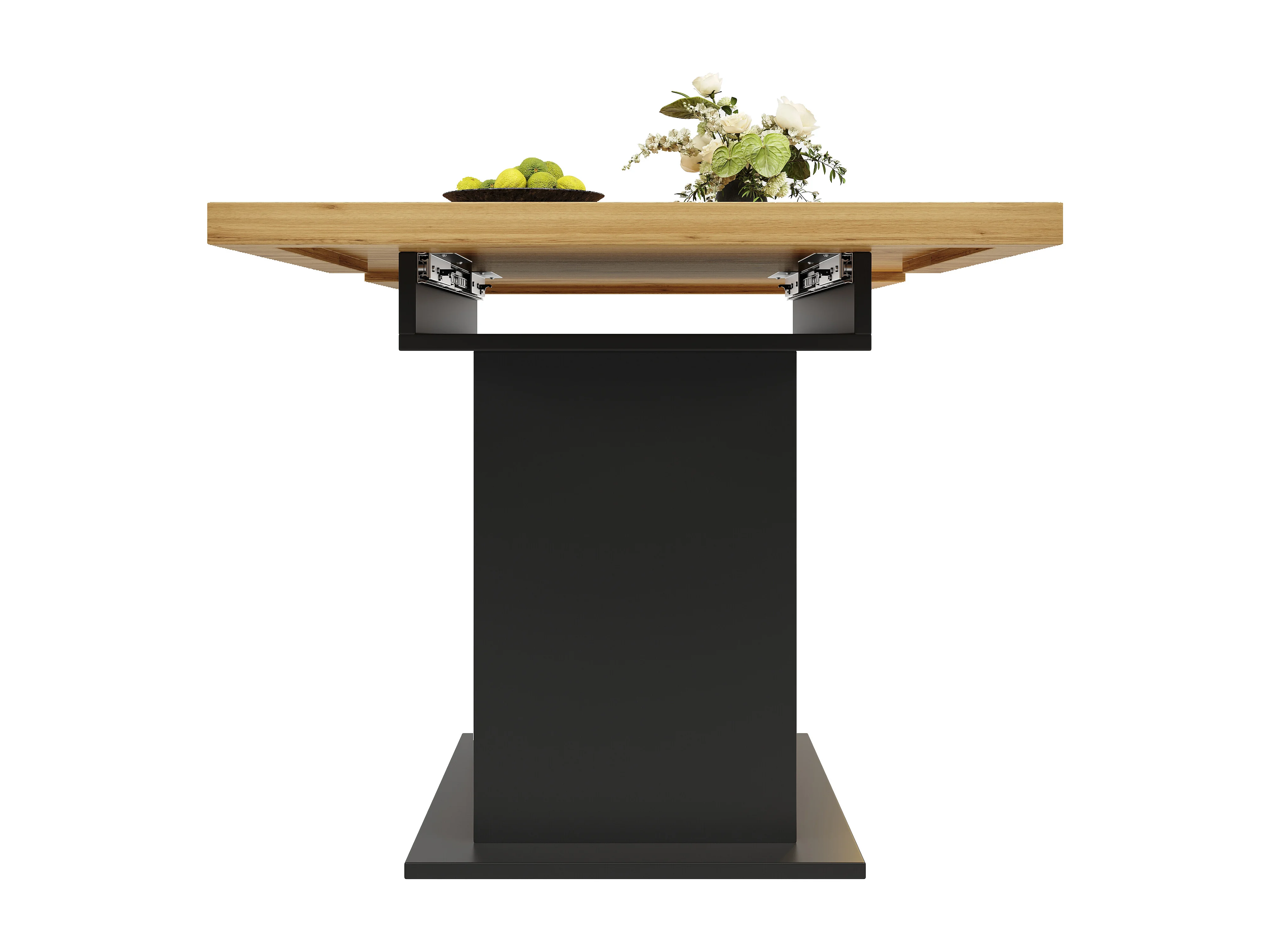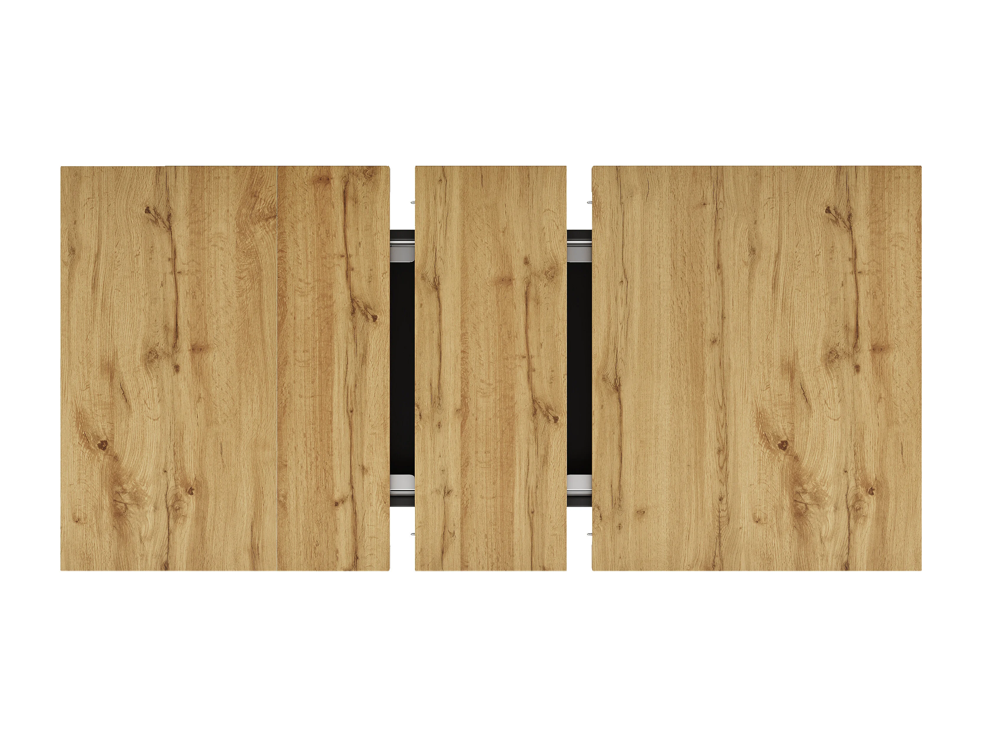 Ausziehbarer Esstisch für 6 Personen - 110/140 x 80 x 76 cm - mit LEDs + 2 Türen - Glas + MDF - Schwarz + Natur
