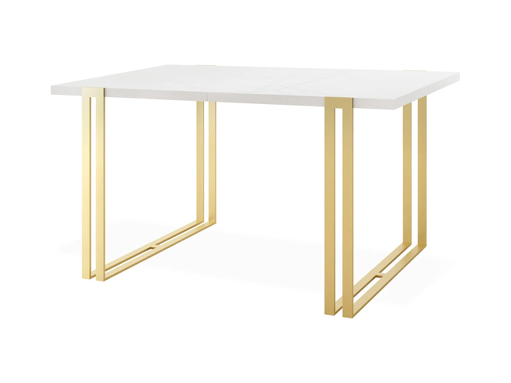 Ausziehbarer Esstisch - Großer Tisch im Loft-Stil mit Golden Metallbeinen 120 bis 220 cm - Industrietisch für das Wohnzimmer - Weiß - 120 x 80 cm