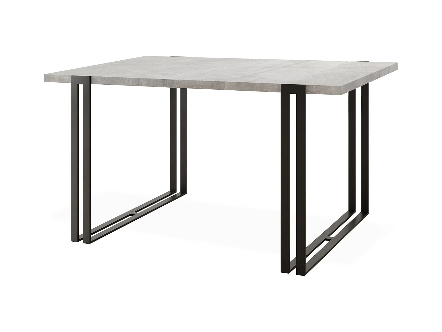 Ausziehbarer Esstisch - Großer Tisch im Loft-Stil mit Schwarze Metallbeinen 160 bis 260 cm - Industrietisch für das Wohnzimmer - Beton Grau - 160 x 90 cm
