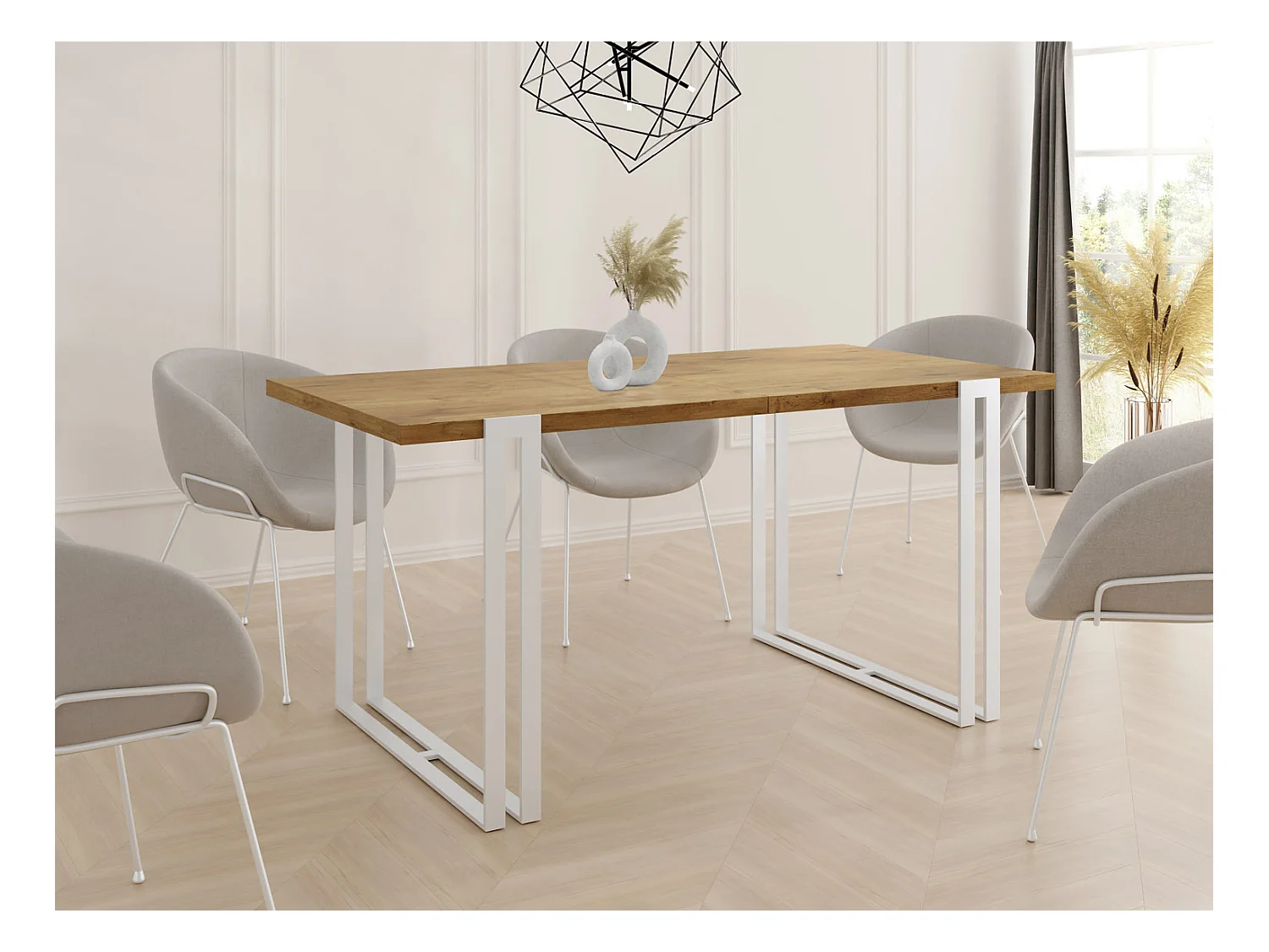 Ausziehbarer Esstisch - Großer Tisch im Loft-Stil mit Weiße Metallbeinen 120 bis 220 cm - Industrietisch für das Wohnzimmer - Lancelot Eiche - 120 x 80 cm