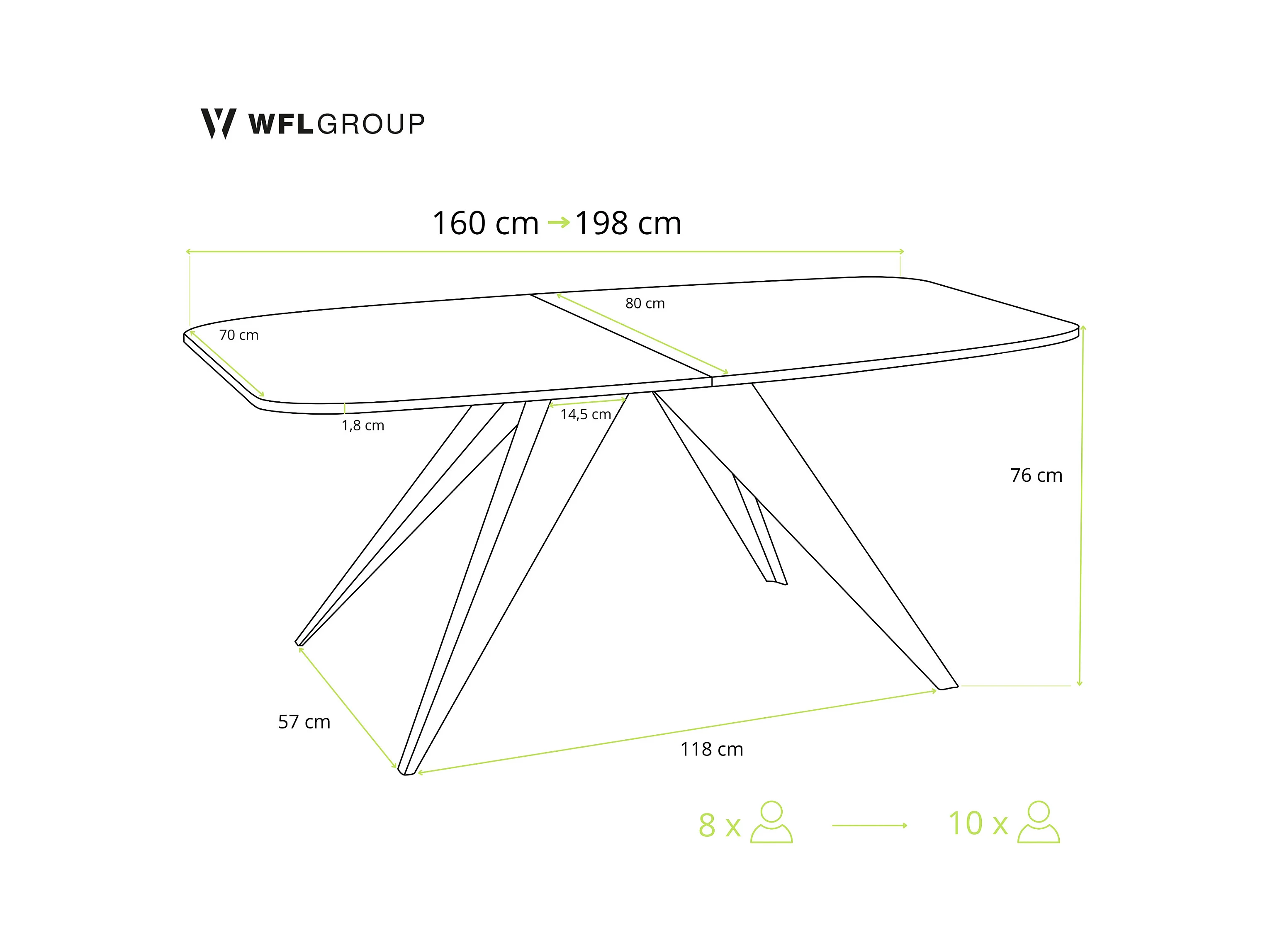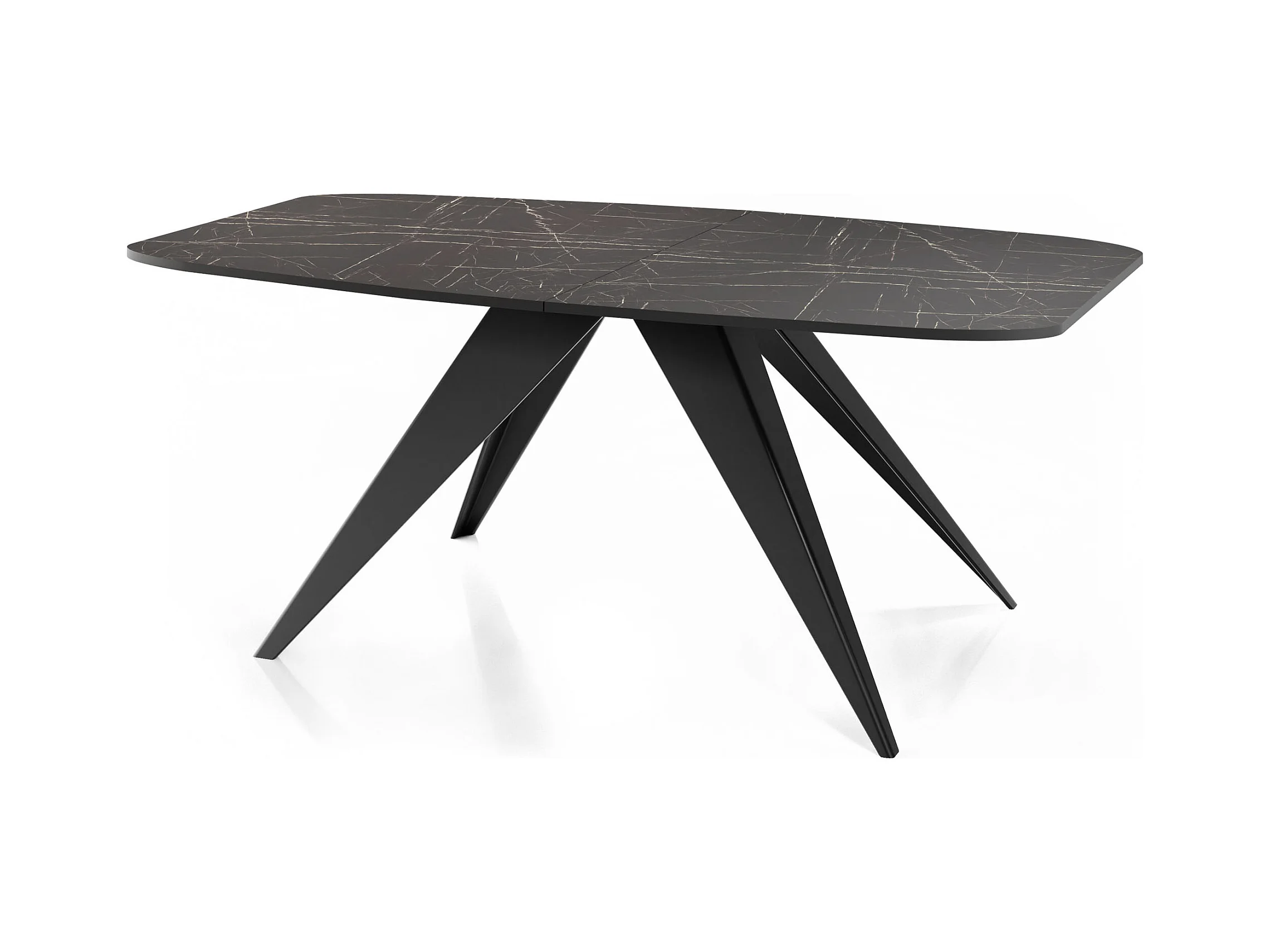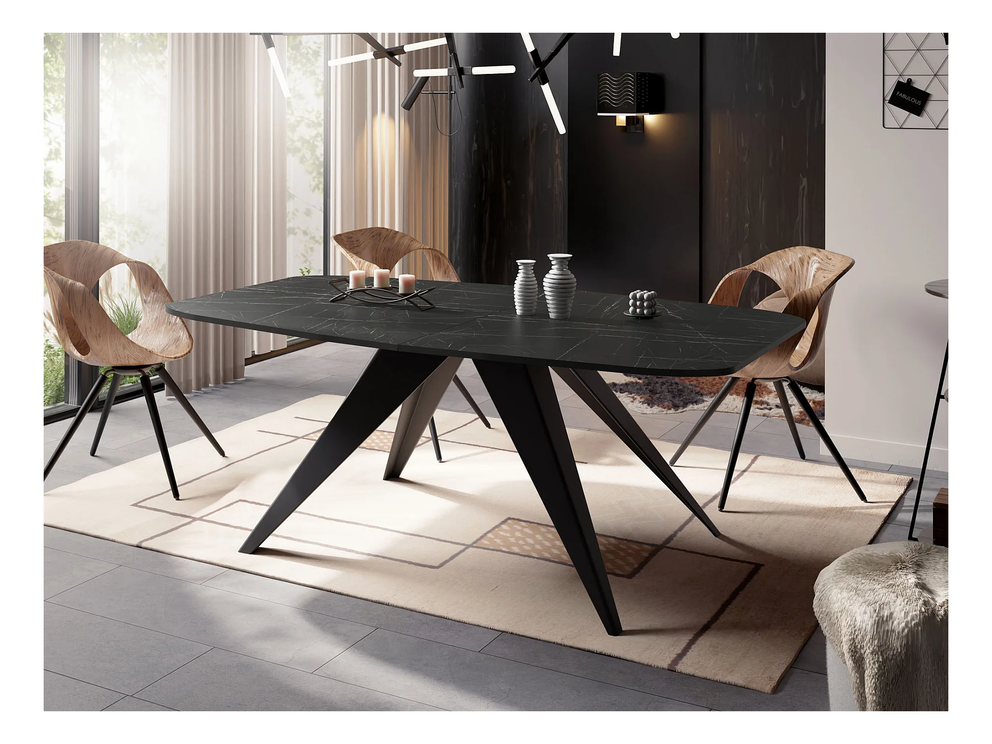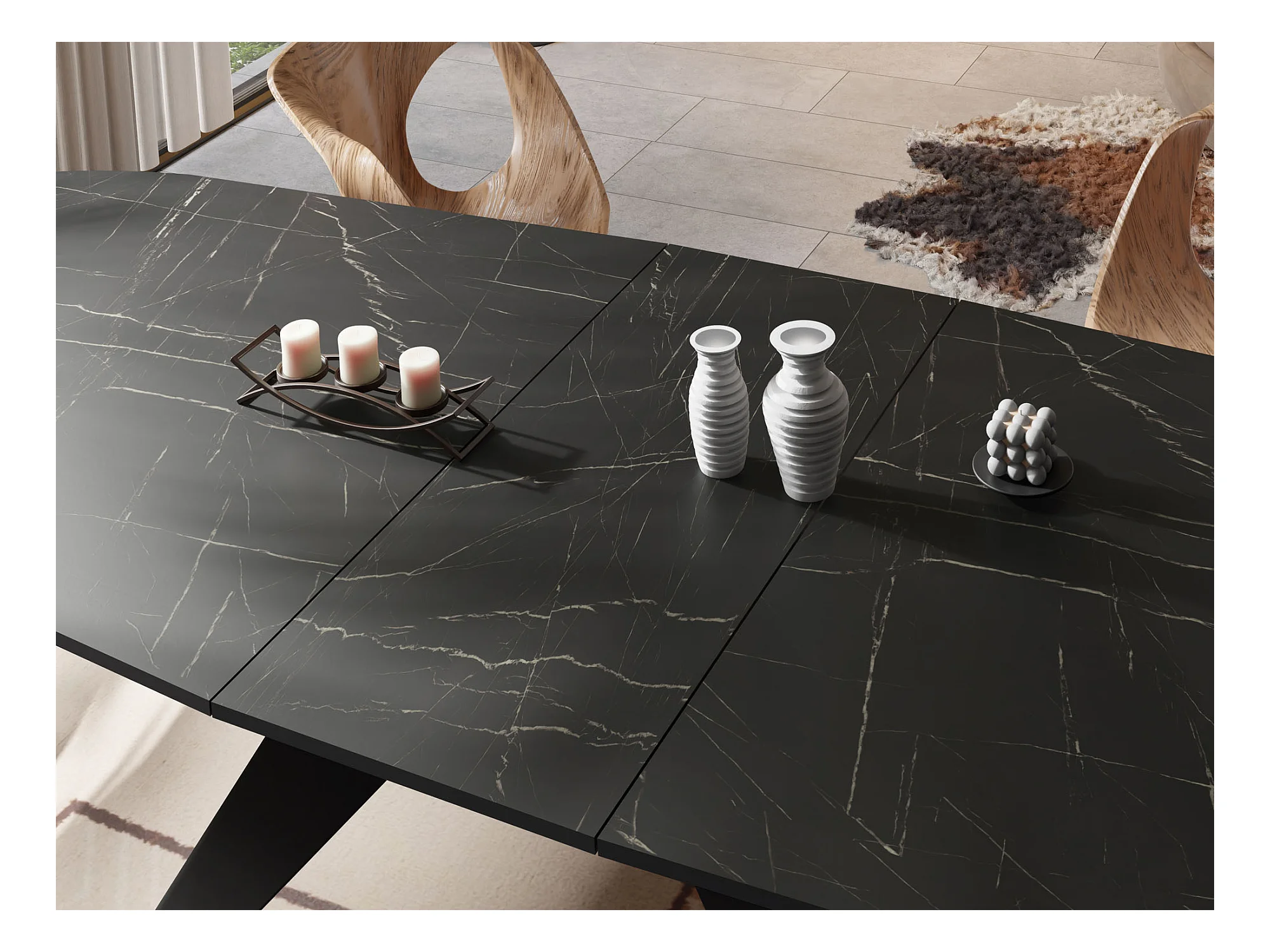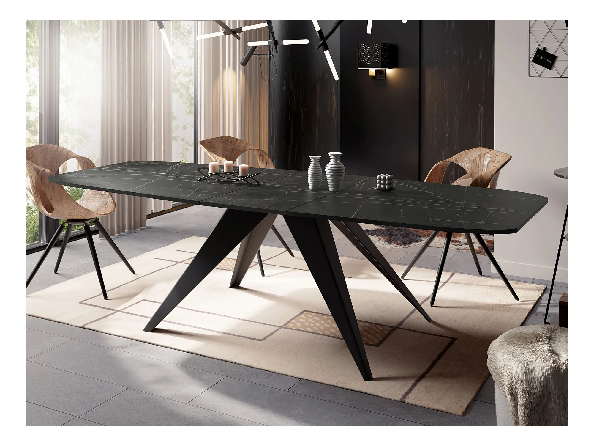 Ausziehbarer Esstisch im Loft-Stil - Industrieller Tisch mit Schwarzen Metallbeinen - Modernes Design für Wohnzimmer 160 cm Ausziehbar auf 200 cm - Marmor Schwarz