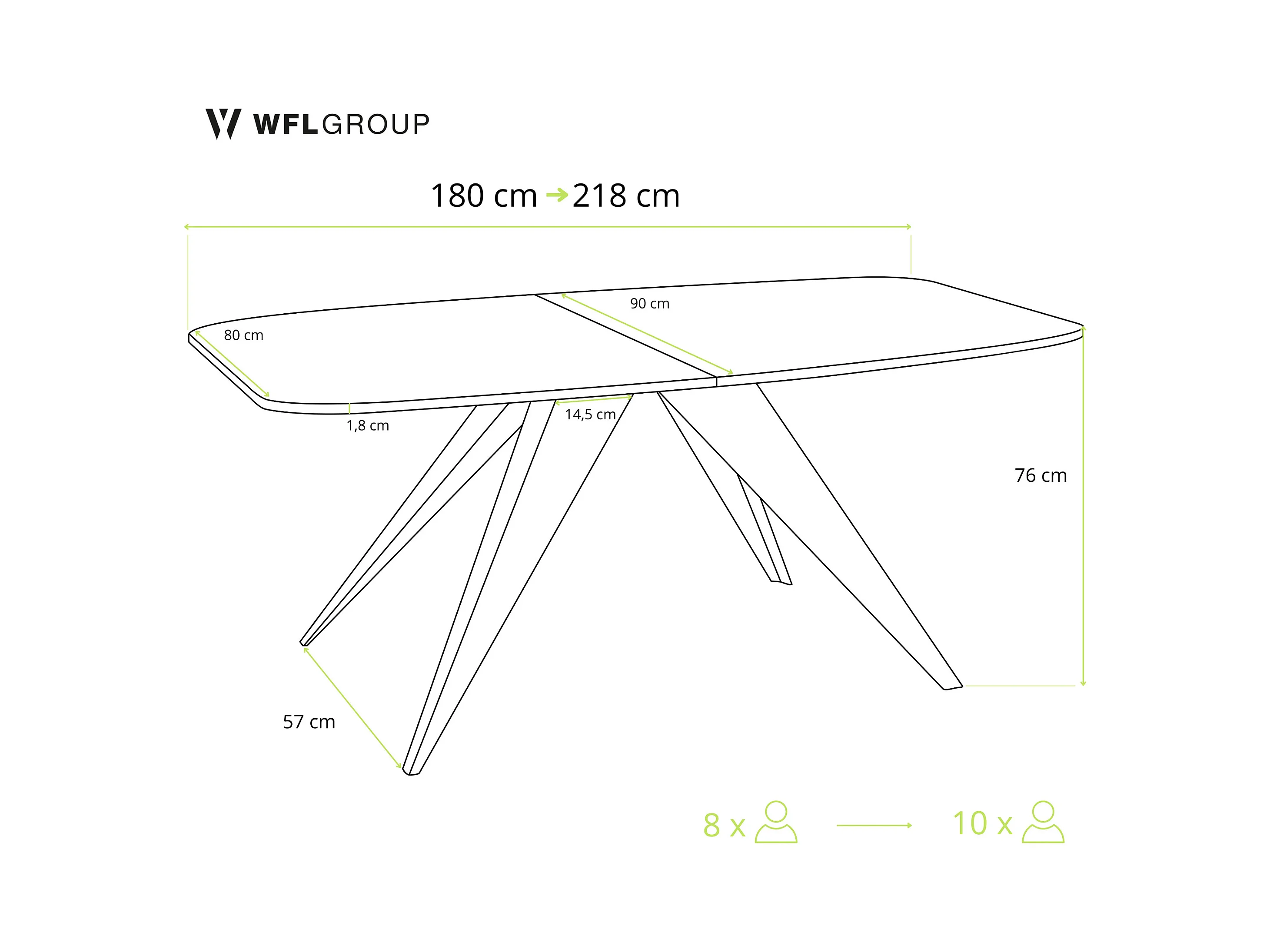 Ausziehbarer Esstisch im Loft-Stil - Industrieller Tisch mit Schwarzen Metallbeinen - Modernes Design für Wohnzimmer - 180 cm Ausziehbar auf 220 cm - Lancelot Eiche