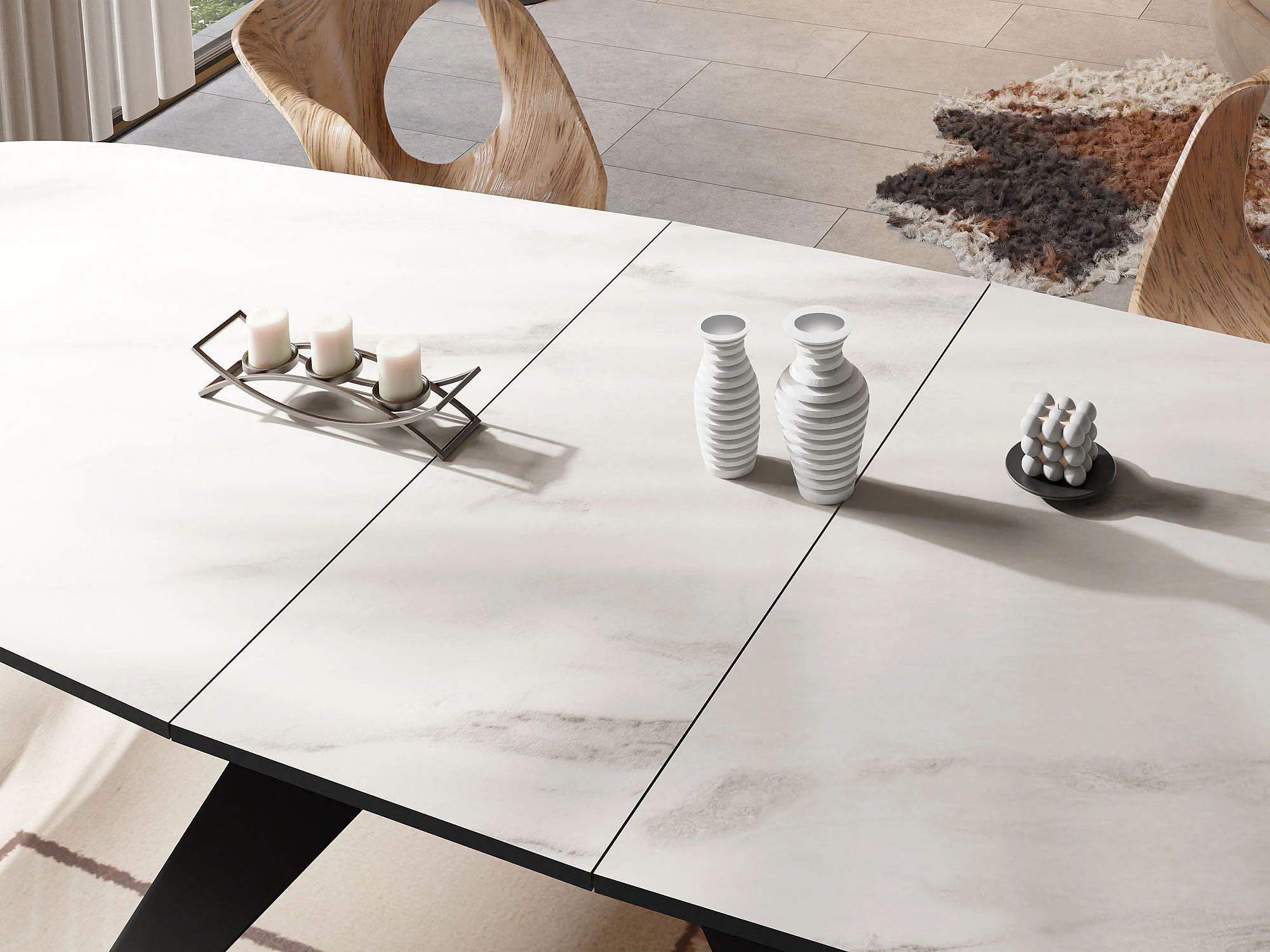 Ausziehbarer Esstisch im Loft-Stil - Industrieller Tisch mit Schwarzen Metallbeinen - Modernes Design für Wohnzimmer - 180 cm Ausziehbar auf 220 cm - Marmor Weiß