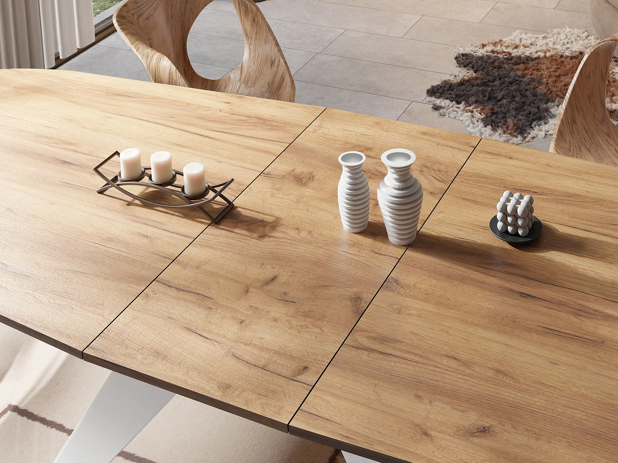 Ausziehbarer Esstisch im Loft-Stil - Industrieller Tisch mit Weißen Metallbeinen - Modernes Design für Wohnzimmer - 160 cm Ausziehbar auf 200 cm - Craft Eiche
